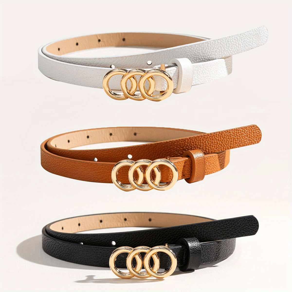 Набор из 3 ремней с пряжками с узором личи и множественными отверстиями для мужчин, повседневные из искусственной кожи для свадеб и вечеринок