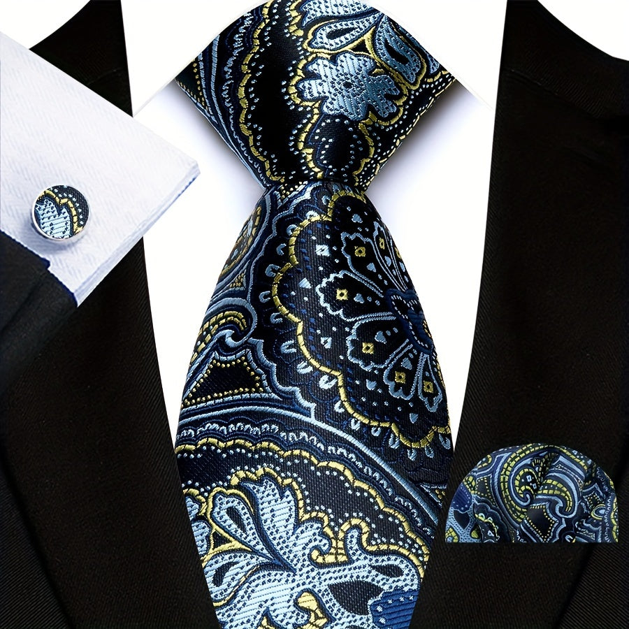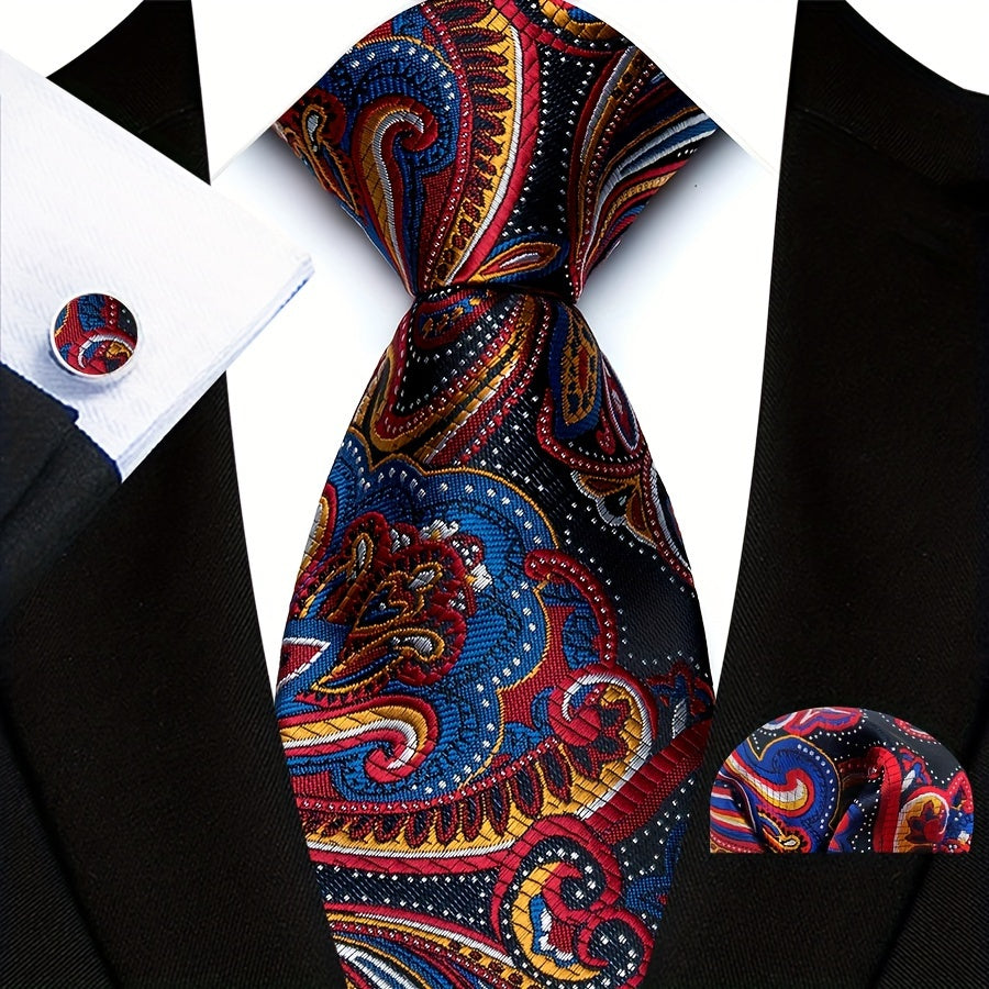 Мужской подарочный набор с галстуком с пейсли, карманным платком и пуговицами на рукавах