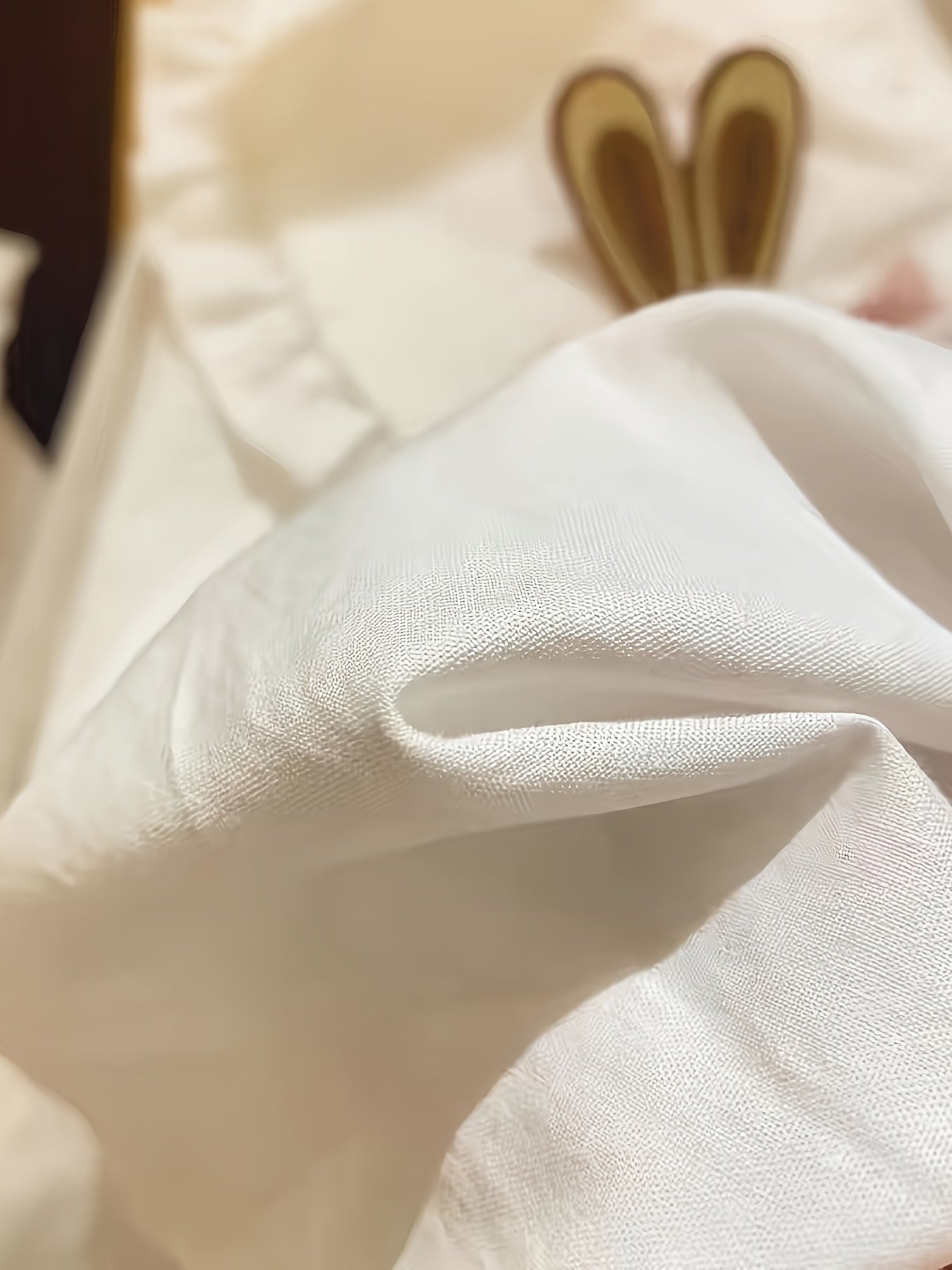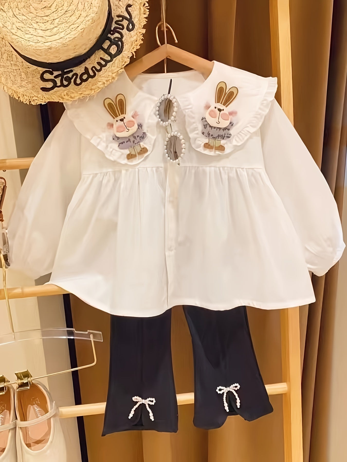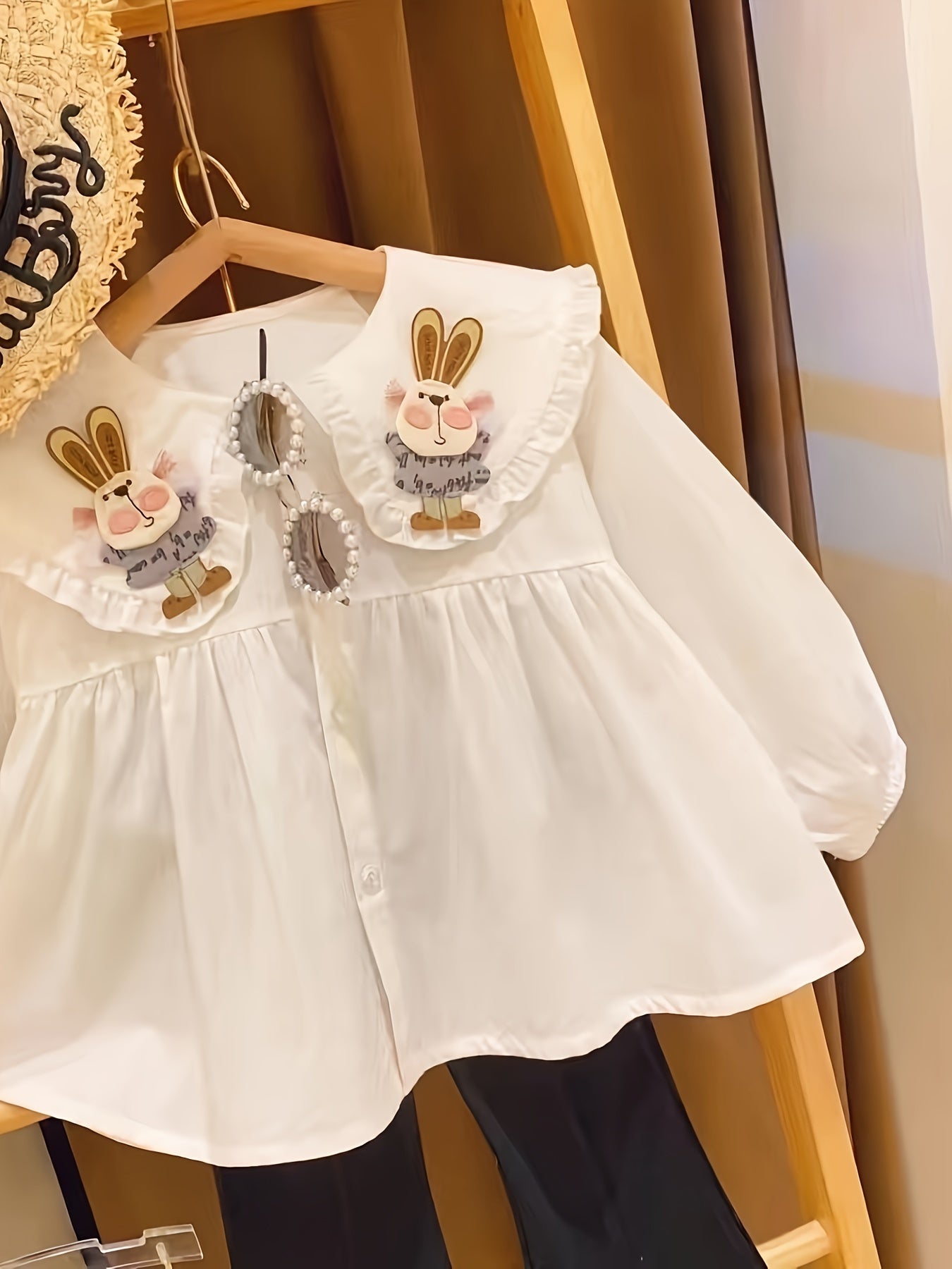 Детская хлопковая блузка с кроличьим узором и воротником-куклой