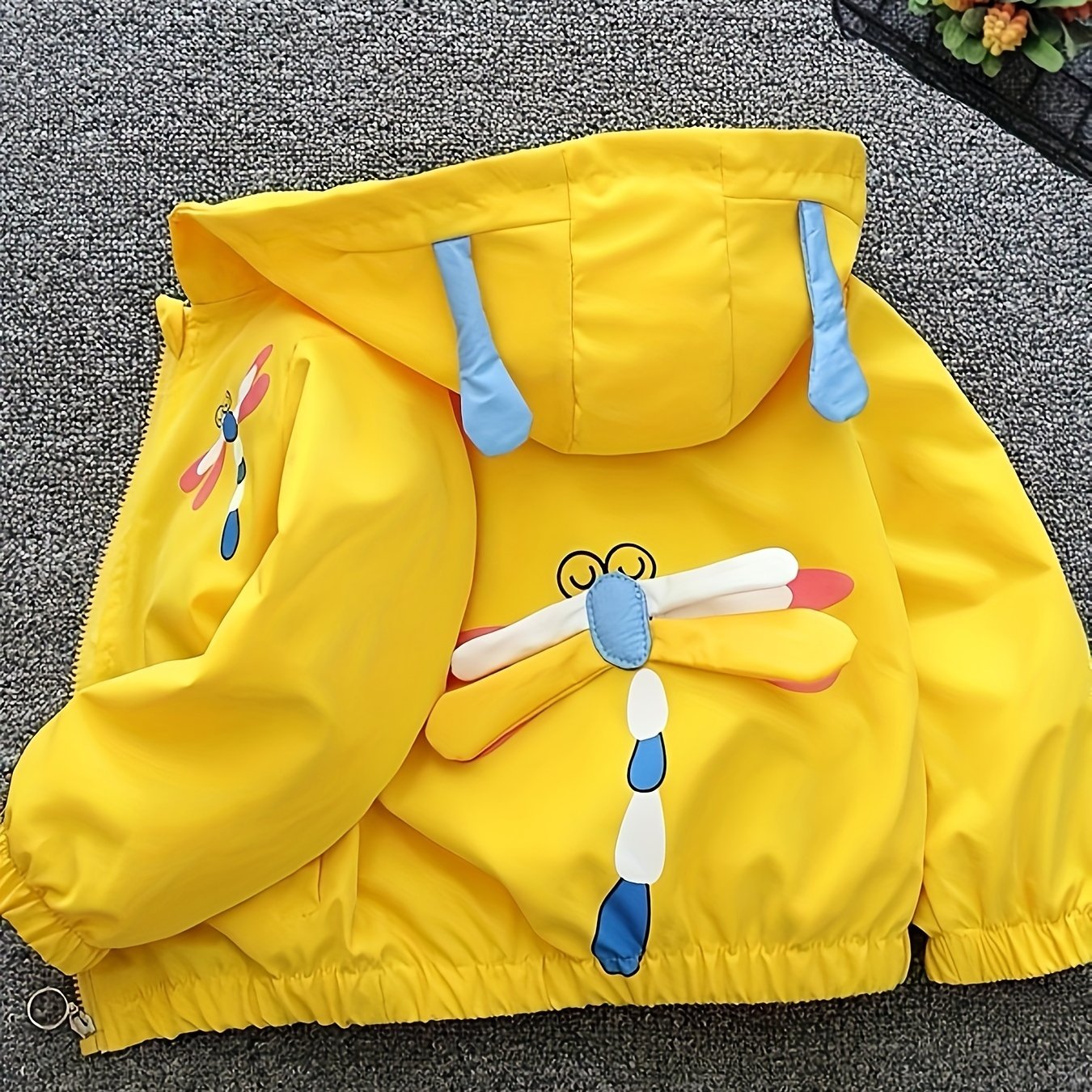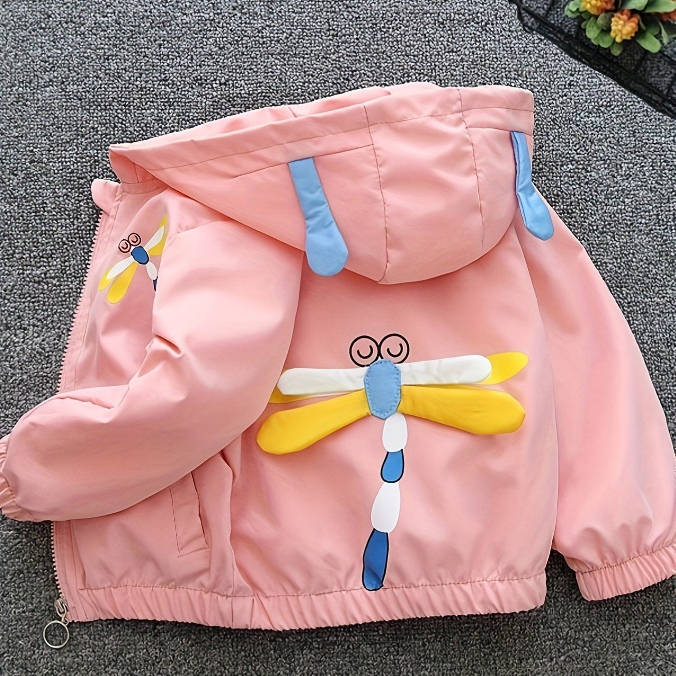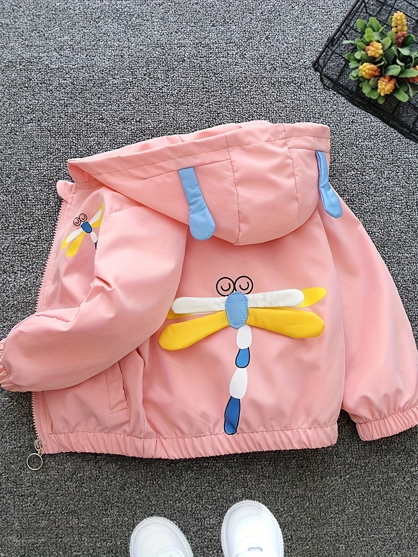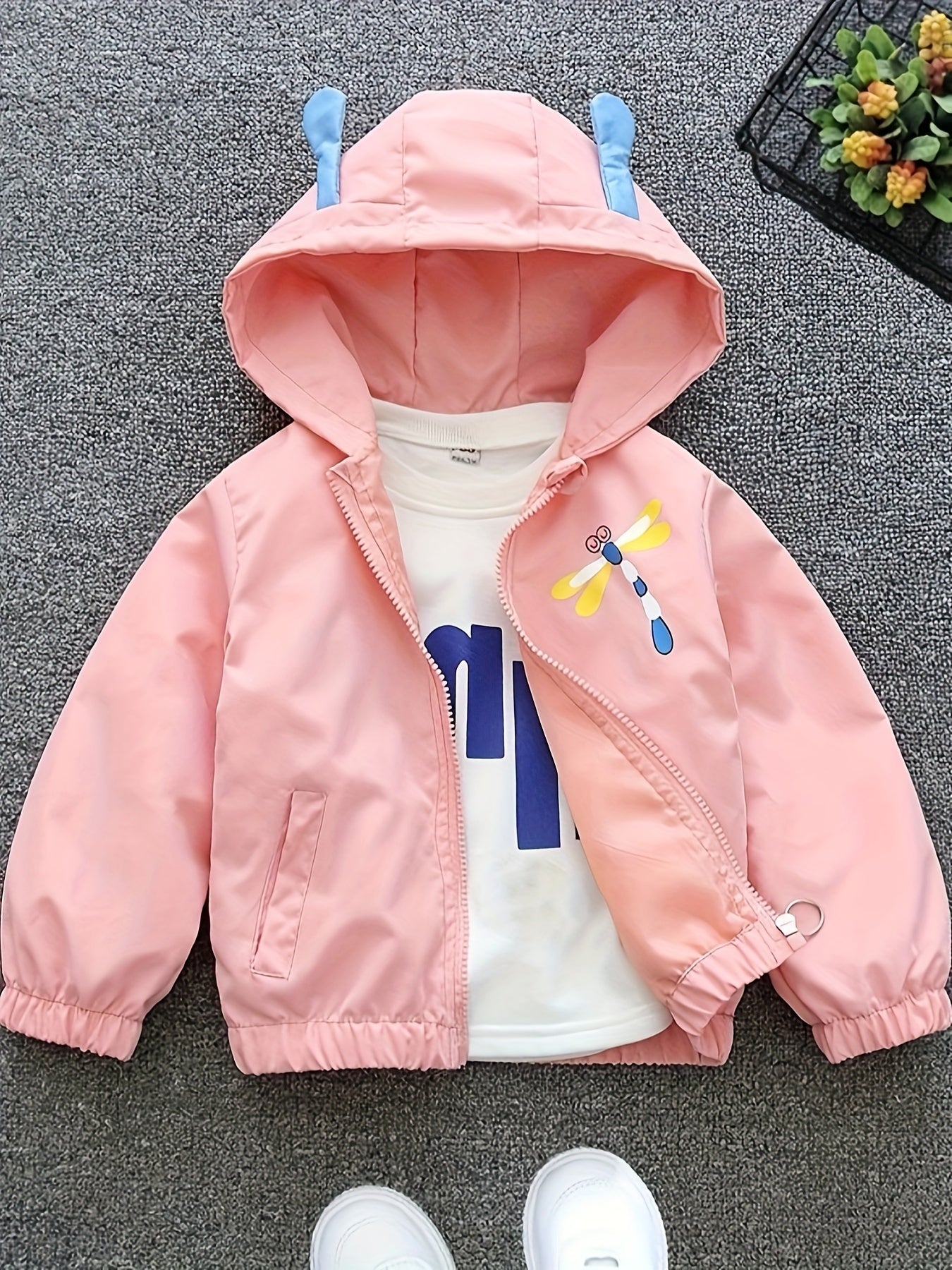Детский легкий розовый ветровка с капюшоном, с мультяшным лицом и бантом