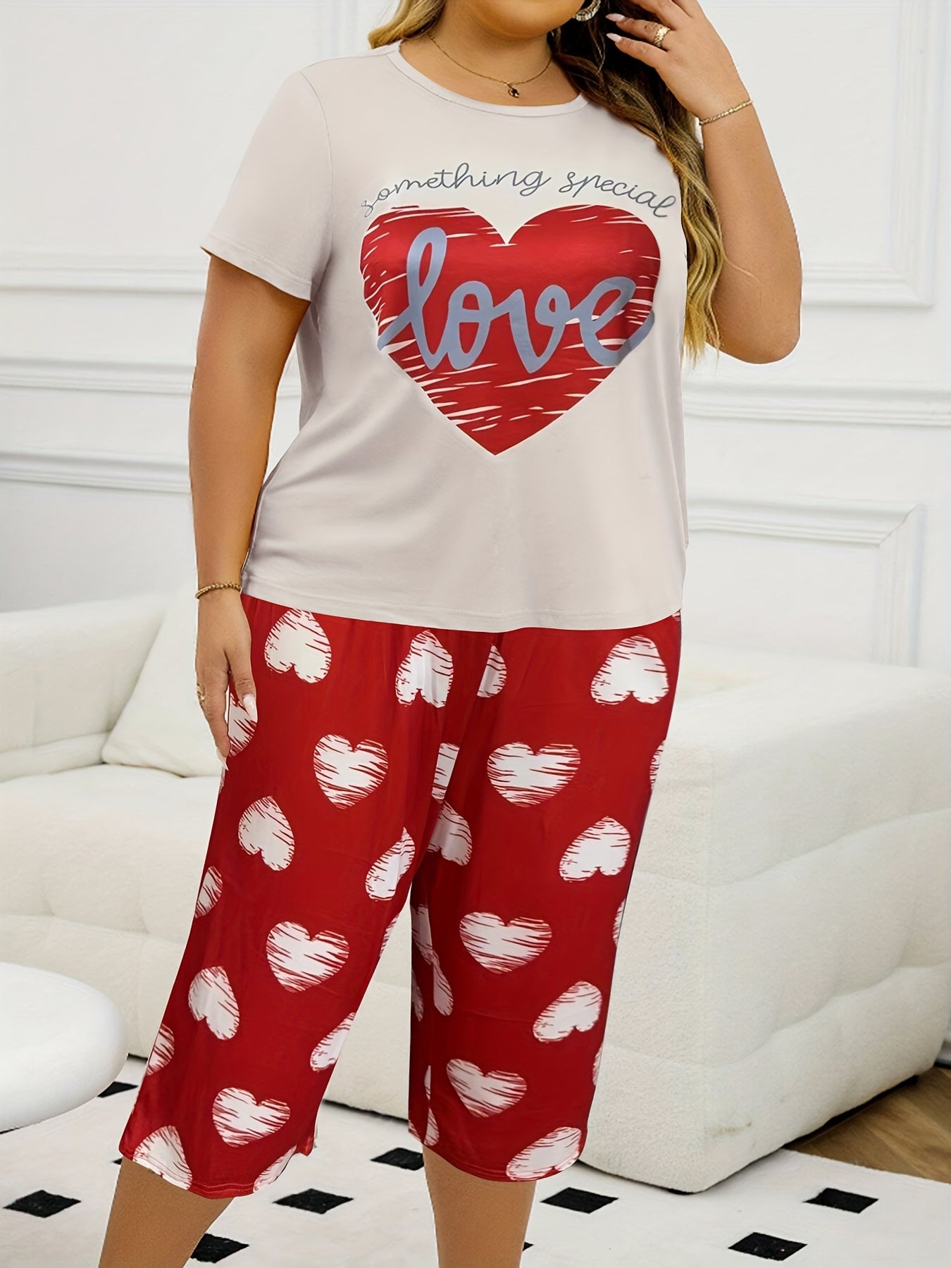 Girls Red Love Print Short Sleeve and Shorts Set