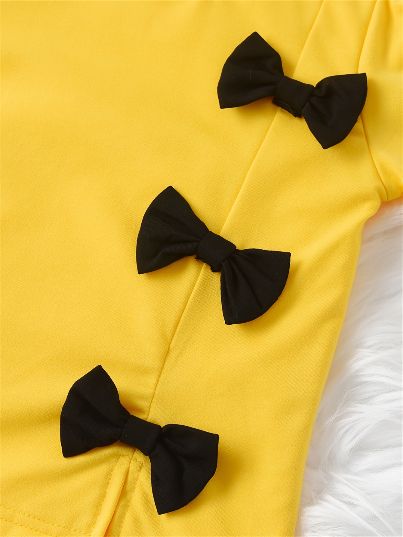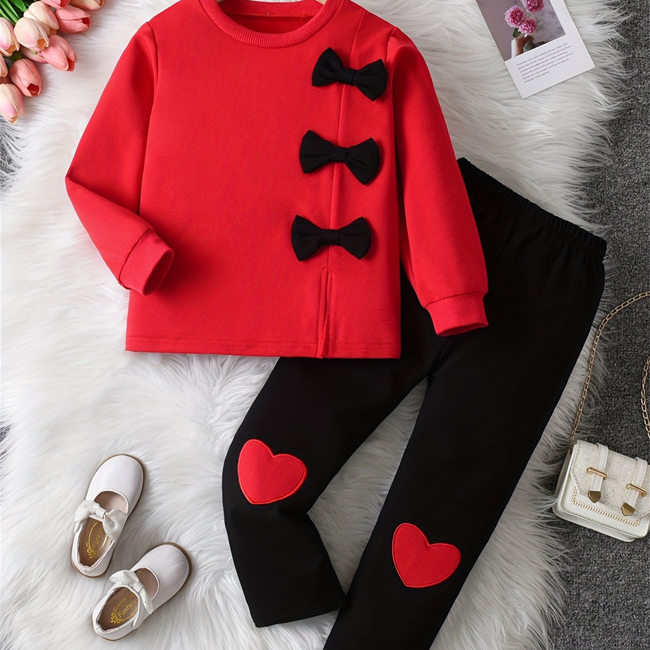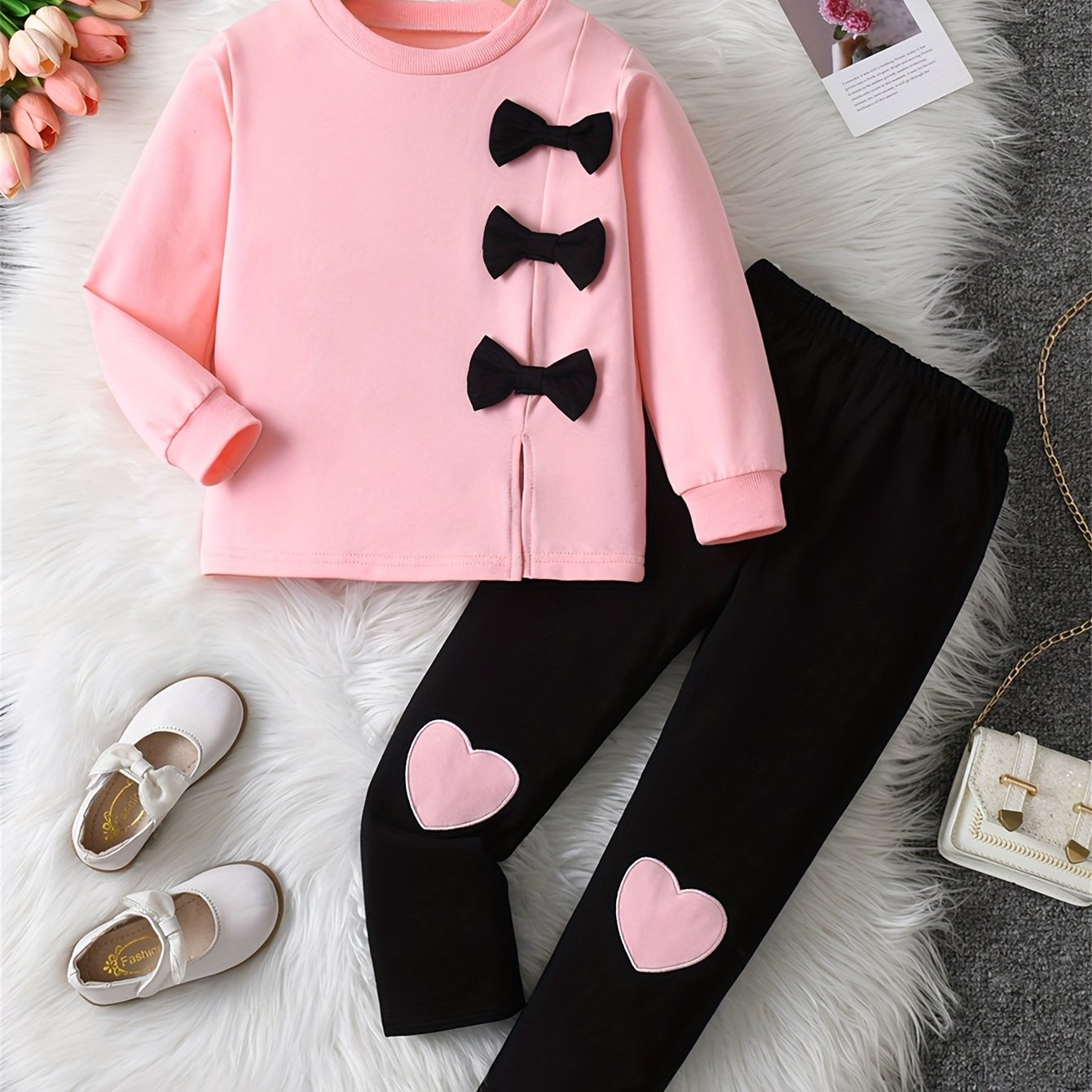 Детский хлопковый костюм с длинным рукавом и брюками, украшенный бантом и вышивкой с надписью "Любовь"