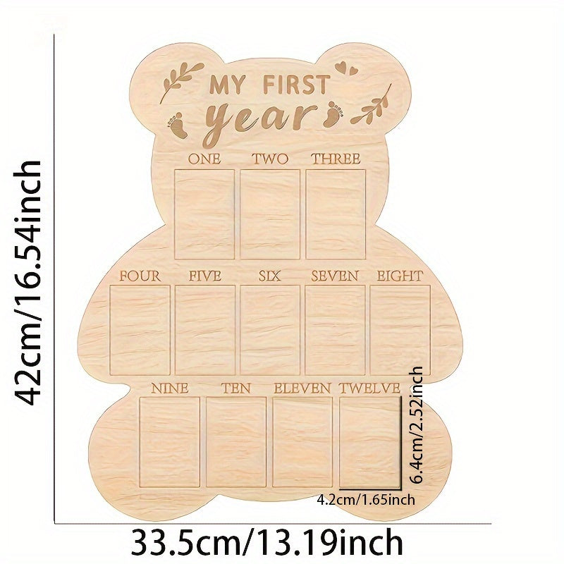 Красивая деревянная рамка для фотографий с медвежонком на первый год жизни - стильная отделка, вертикальный стиль, отлично подходит для декора комнаты и ежемесячного календаря, идеальный подарок на первый день рождения