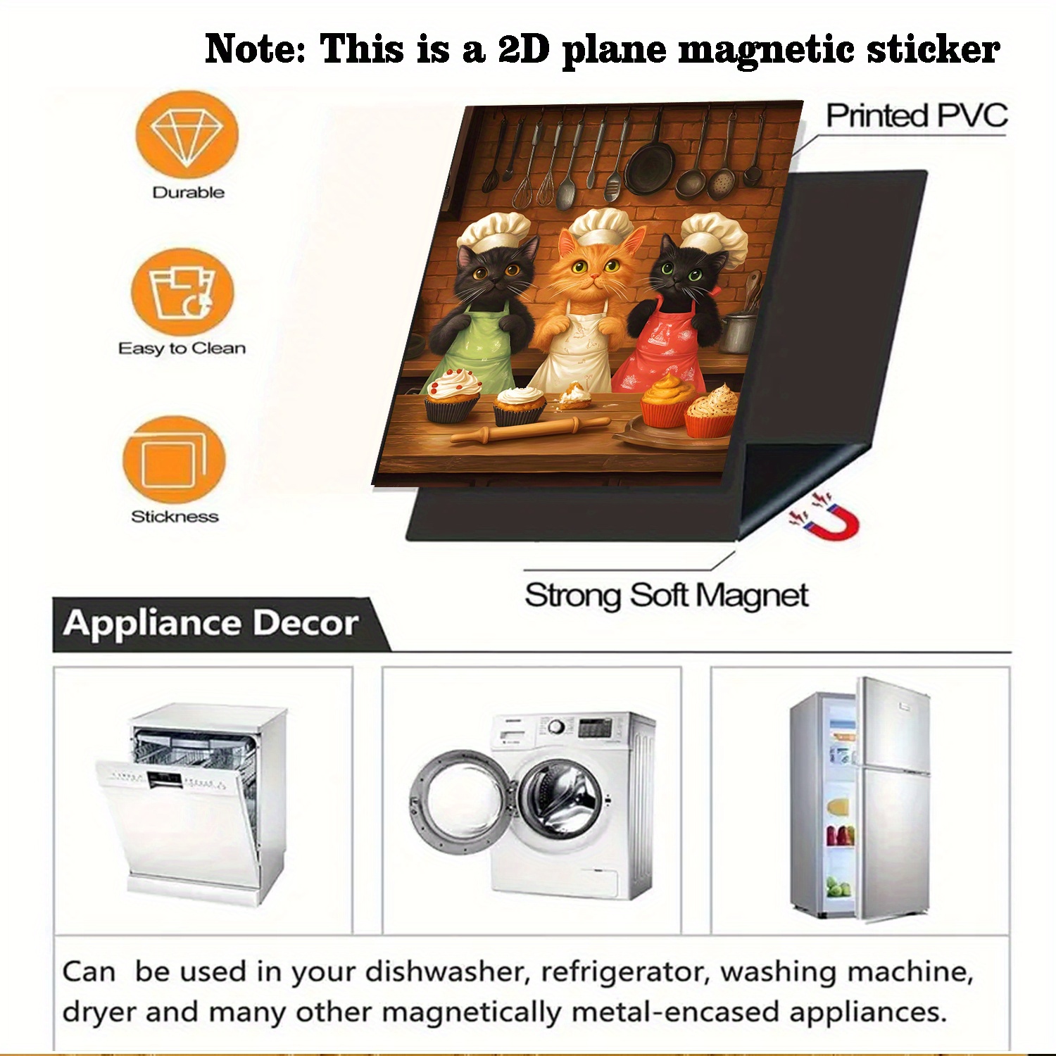 Набор украшений для двери посудомоечной машины с 2D изображением плоской кошки, водонепроницаемый, мягкий, легкий в установке
