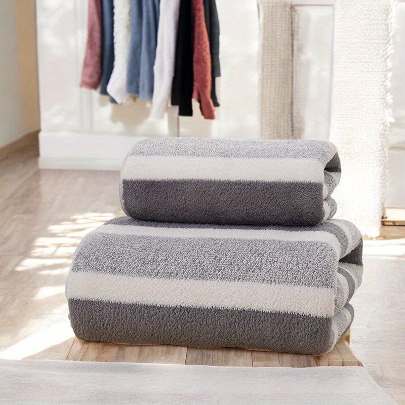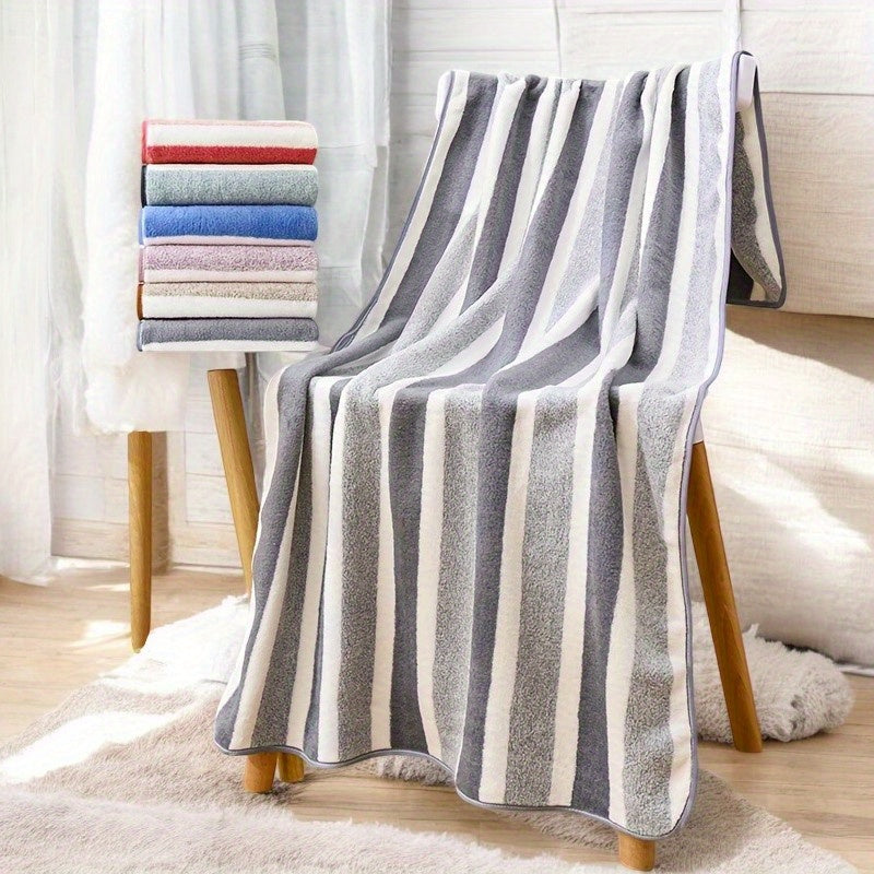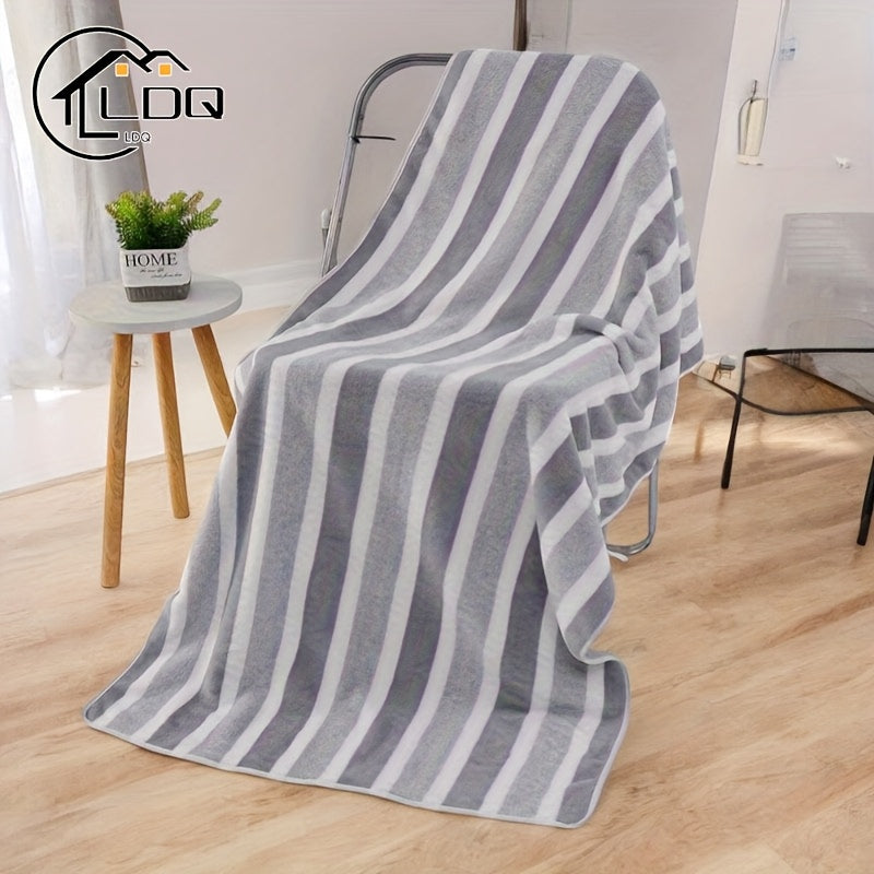 Серое ультра-мягкое и быстро-сохнущее полосатое банное полотенце LDQ - гипоаллергенное и нежное к коже - идеально подходит для дома, бассейна и ухода.