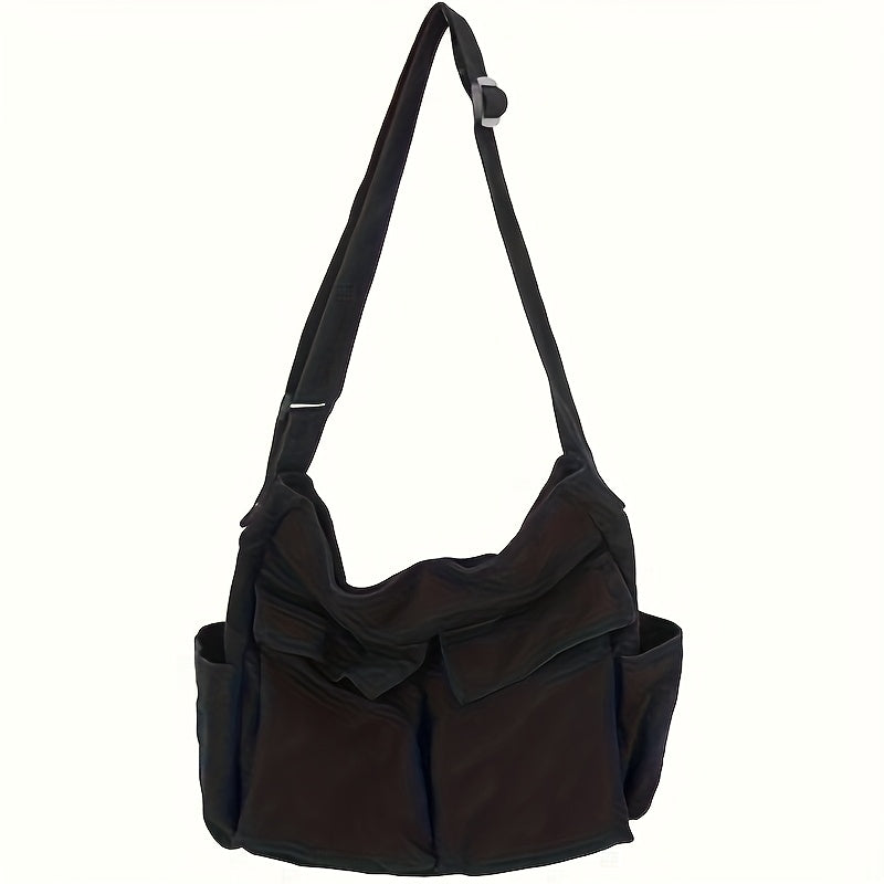 Черная полиэстеровая сумка через плечо с несколькими карманами и застежкой-молнией для повседневных путешествий
