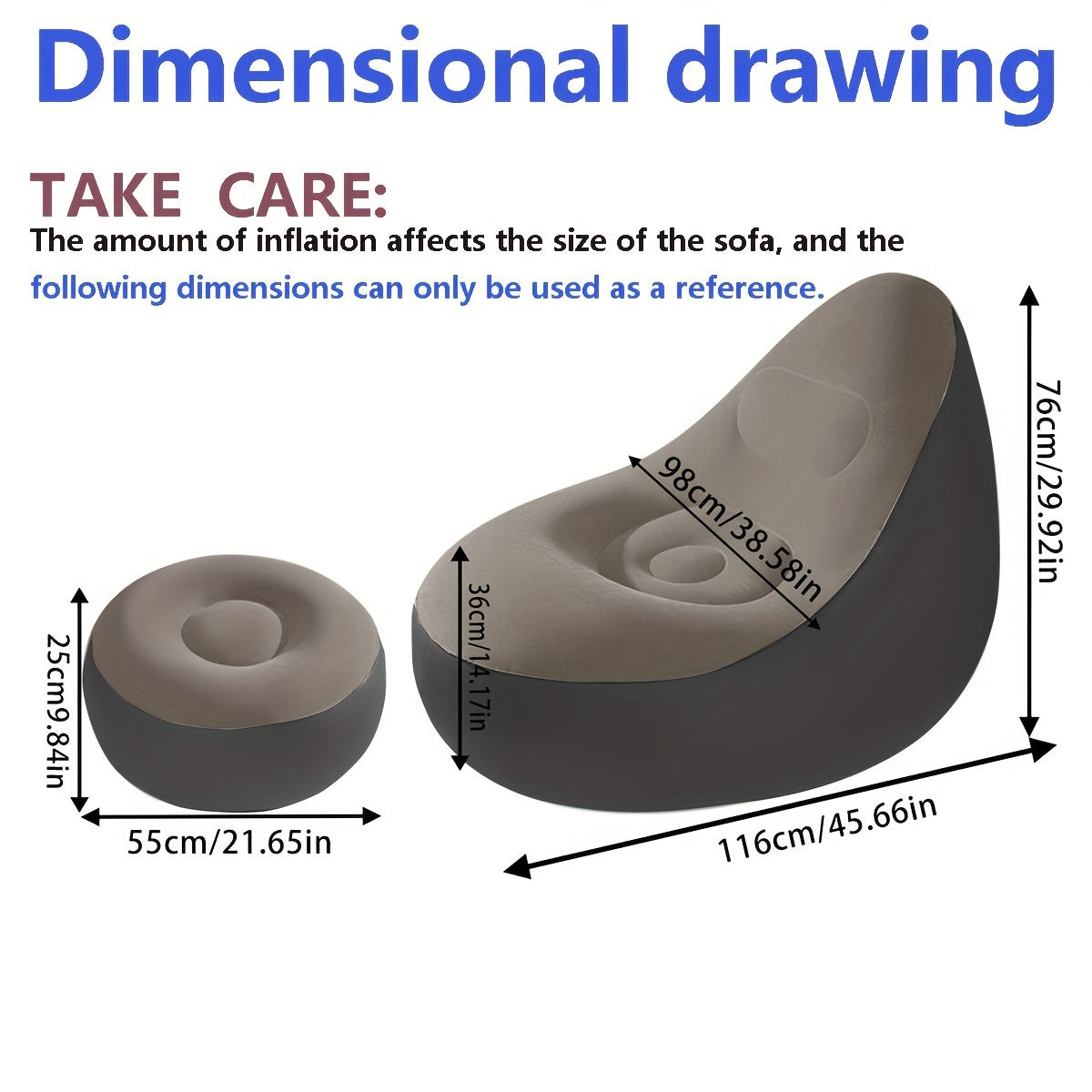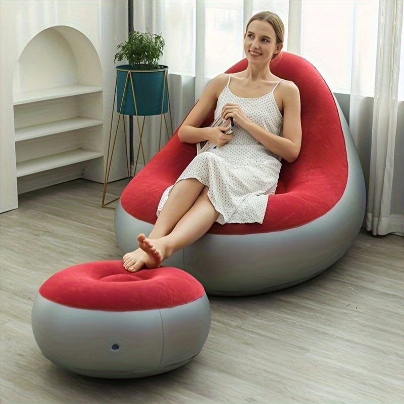 Портативный и складной надувной диван из серого бархата с подставкой для ног для одного человека - идеально подходит для принятия солнечных ванн в помещении и на открытом воздухе, подходит для помещений разного стиля - надувная мебель.