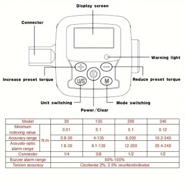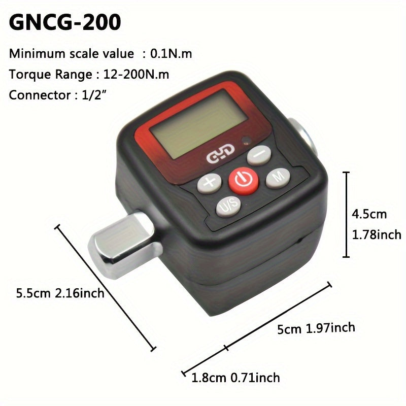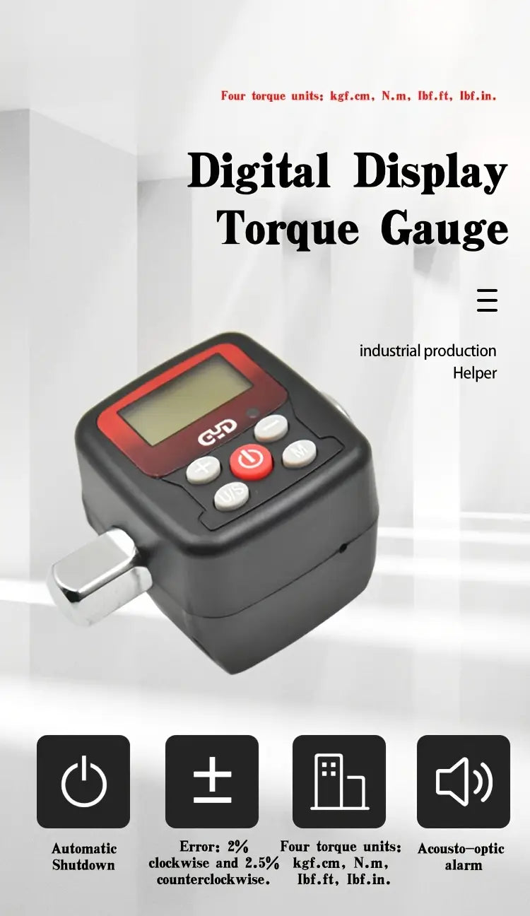 Цифровой адаптер для динамометрического ключа с регулируемой подсветкой, звуковым сигналом, светодиодным предупреждением, высокой точностью, металлический