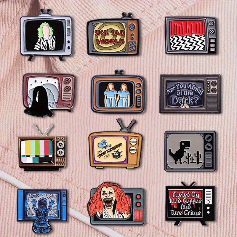 Набор брошей «Хэллоуинский ужас» на ТВ: набор из 12 значков в стиле панк из сплава для свитеров, рюкзаков и не только - с уникальными аксессуарами и подарками на мультфильм.