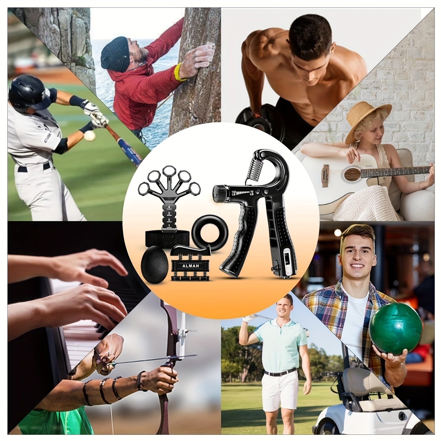 Комплект для укрепления силы захвата руки из 5 предметов для упражнений пальцев, рук и предплечий