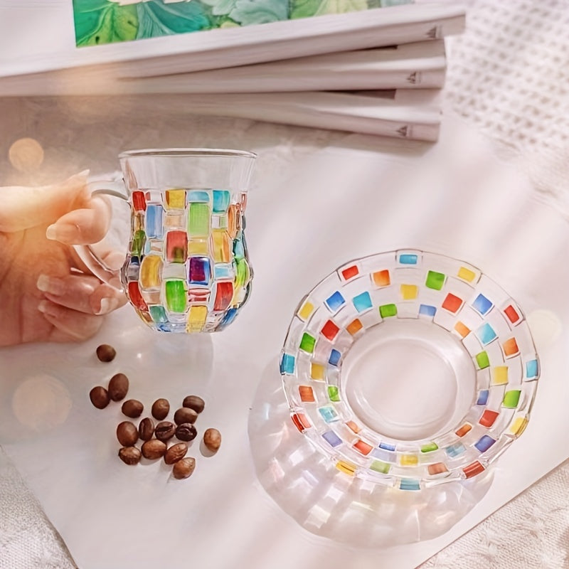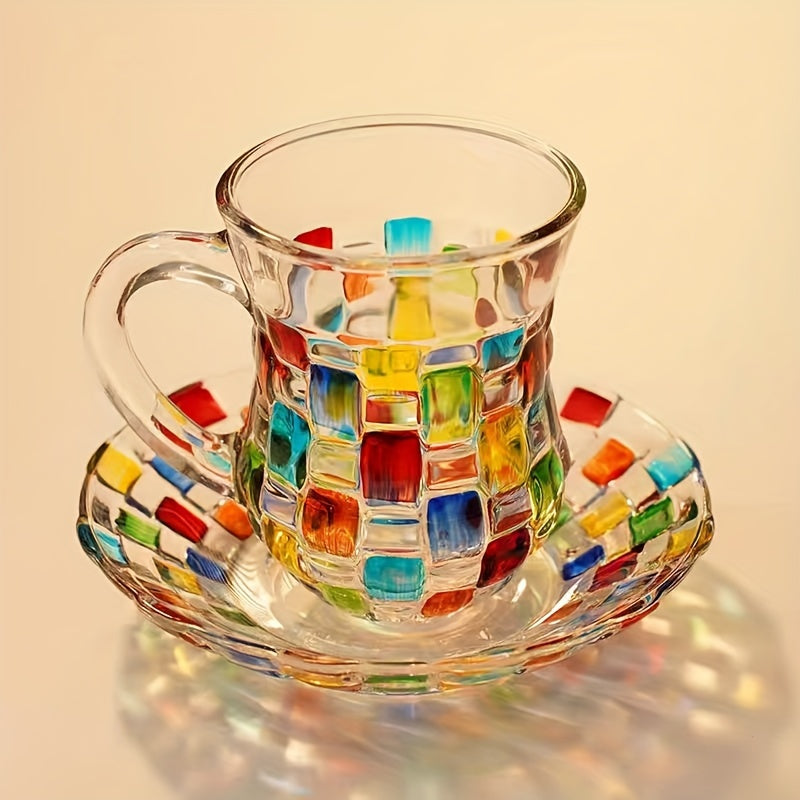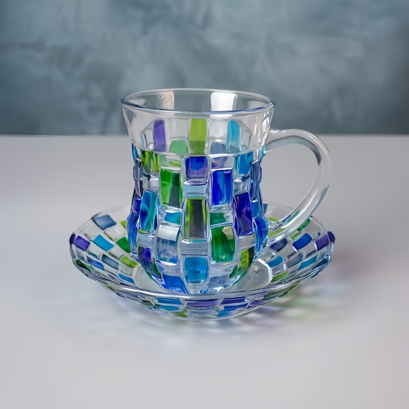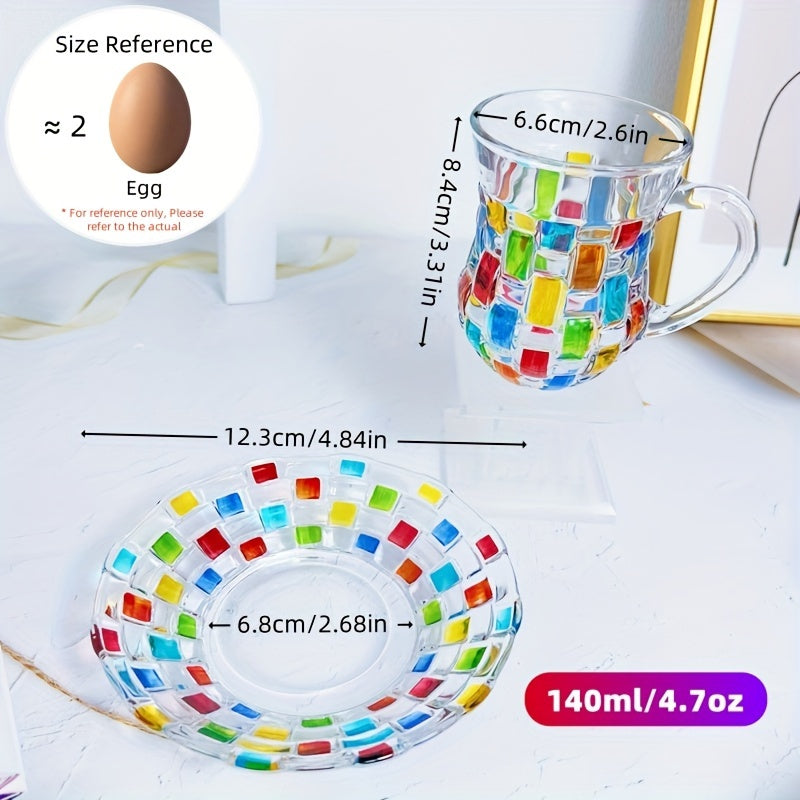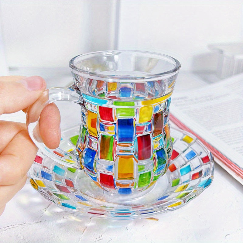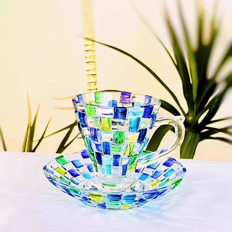 Ручная роспись цветной сетки на чашке и блюдце в европейском стиле, идеально подходит для домашнего использования.