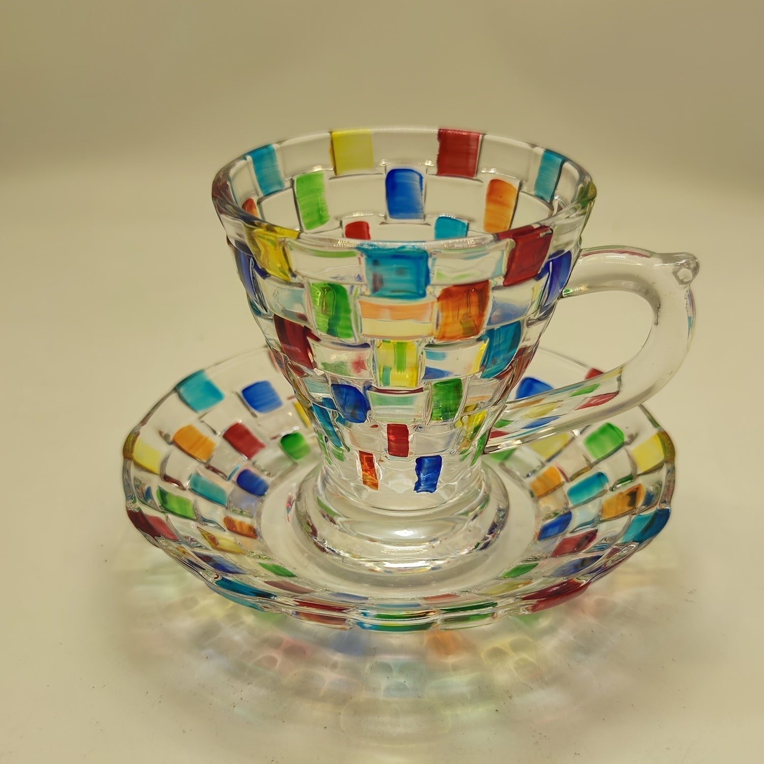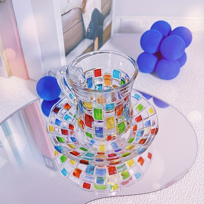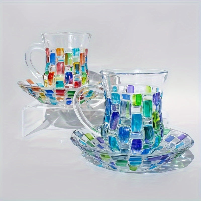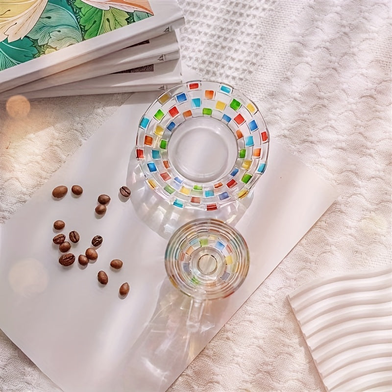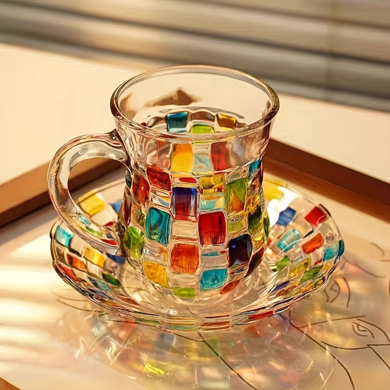 Ручная роспись цветной сетки на чашке и блюдце в европейском стиле, идеально подходит для домашнего использования.