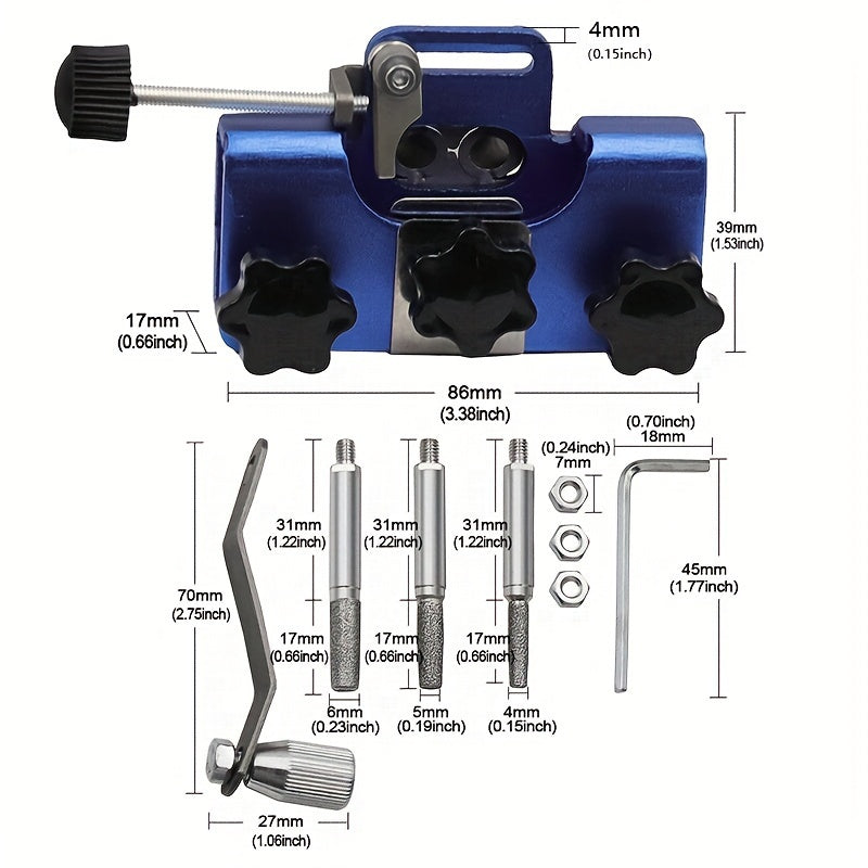 Комплект для заточки цепных пил ручного типа с 3 шлифовальными головками и сумкой для переноски