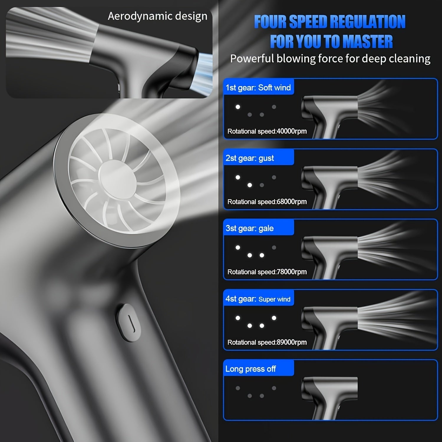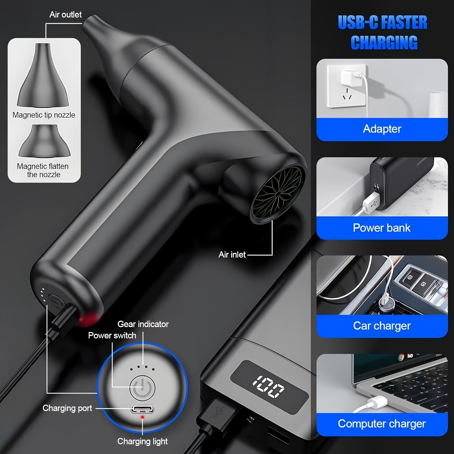 Ручной турбированный воздуходувка USB с перезаряжаемой батареей, вентилятор для высокоскоростного воздуха для очистки от пыли