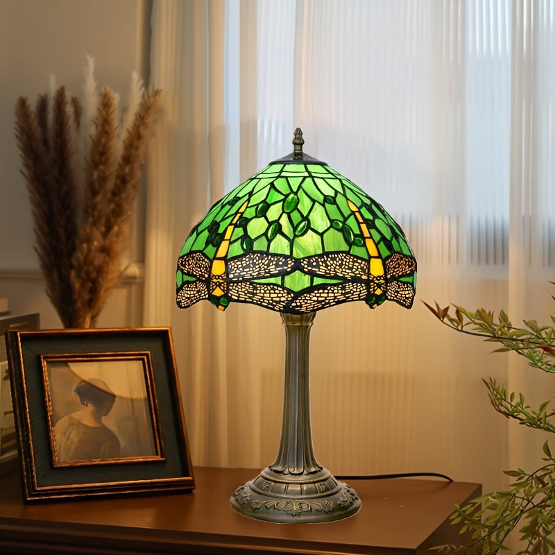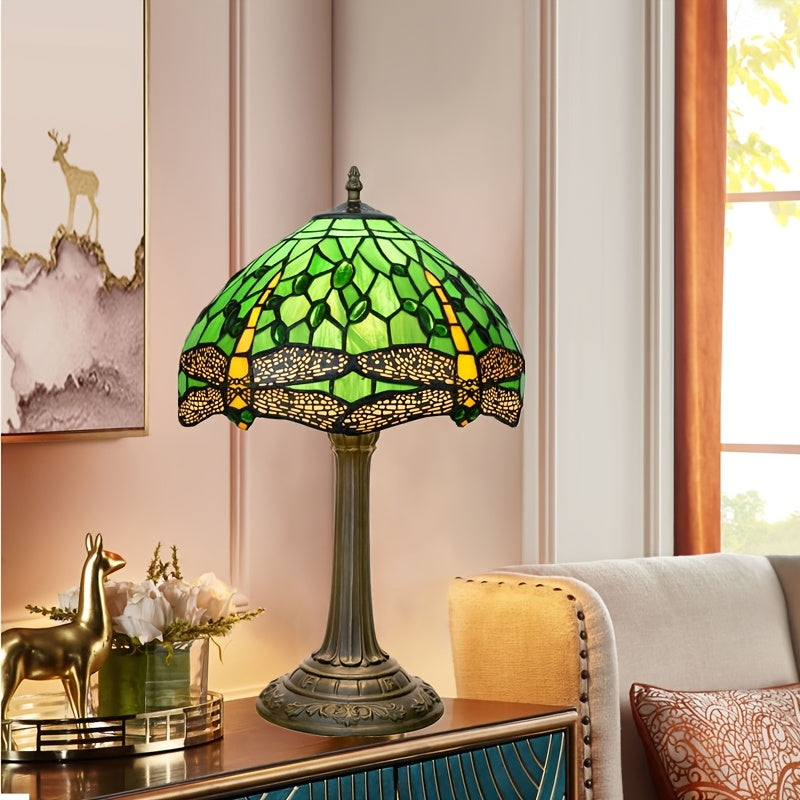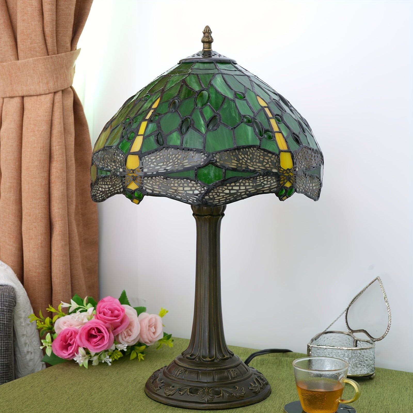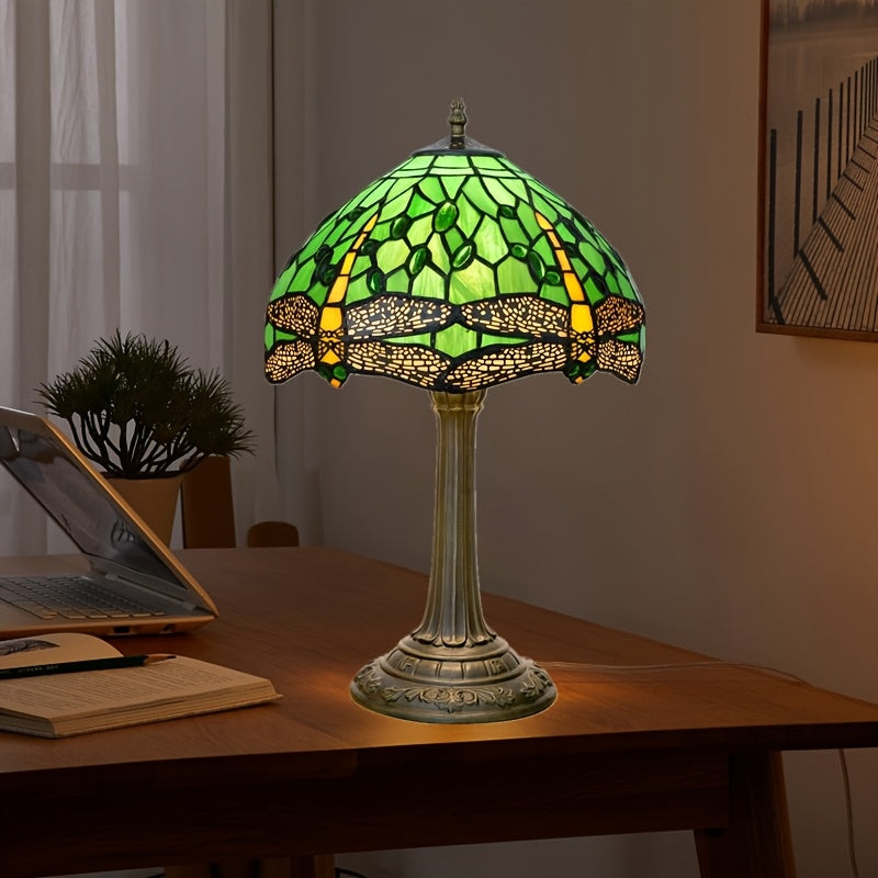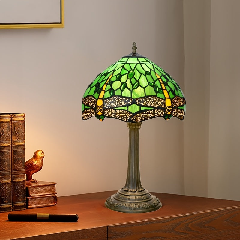 Настольная лампа из стекла 12 дюймов с зеленой светлячковой пагодой и антикварным металлическим покрытием