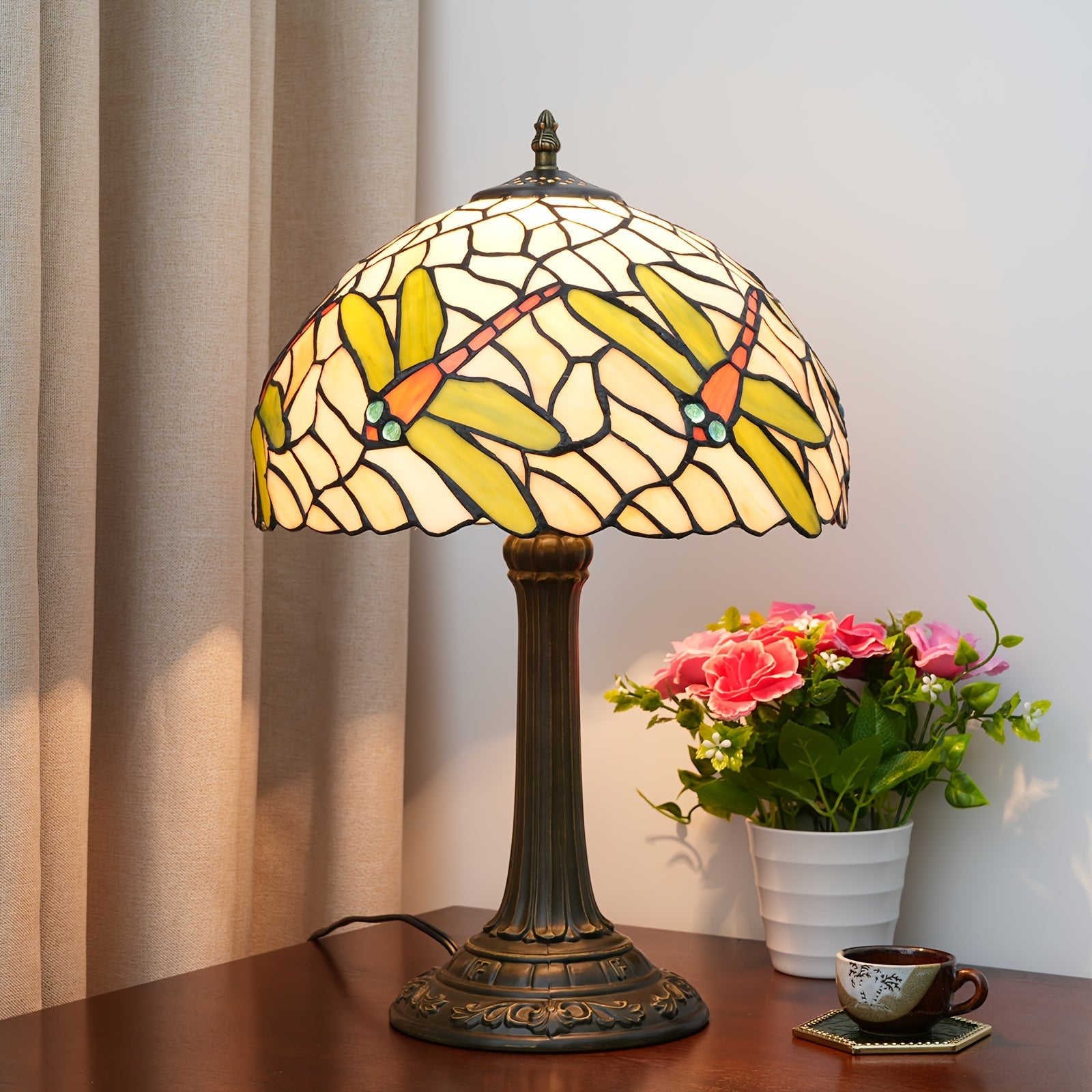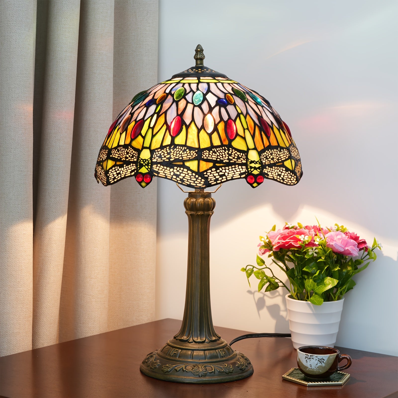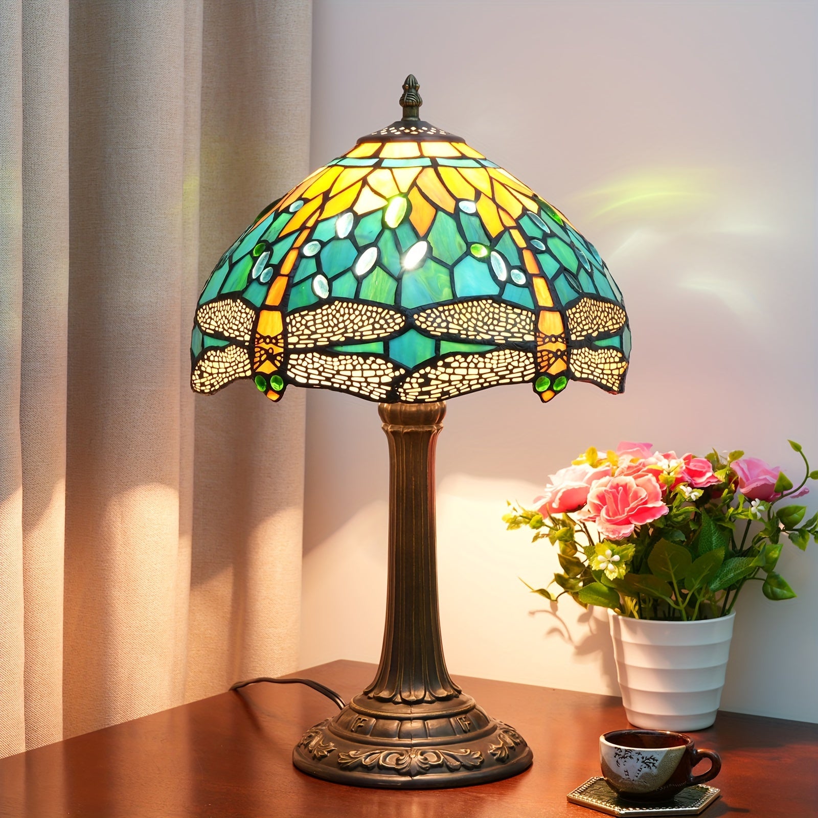 Настольная лампа из стекла 12 дюймов с зеленой светлячковой пагодой и антикварным металлическим покрытием