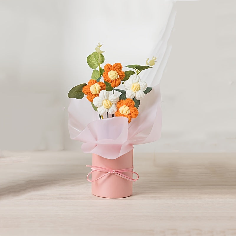 Набор искусственных букетов цветов с плетеными и тканевыми цветами для подарков и домашнего декора