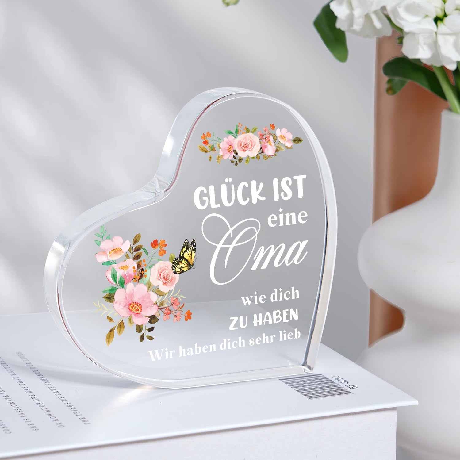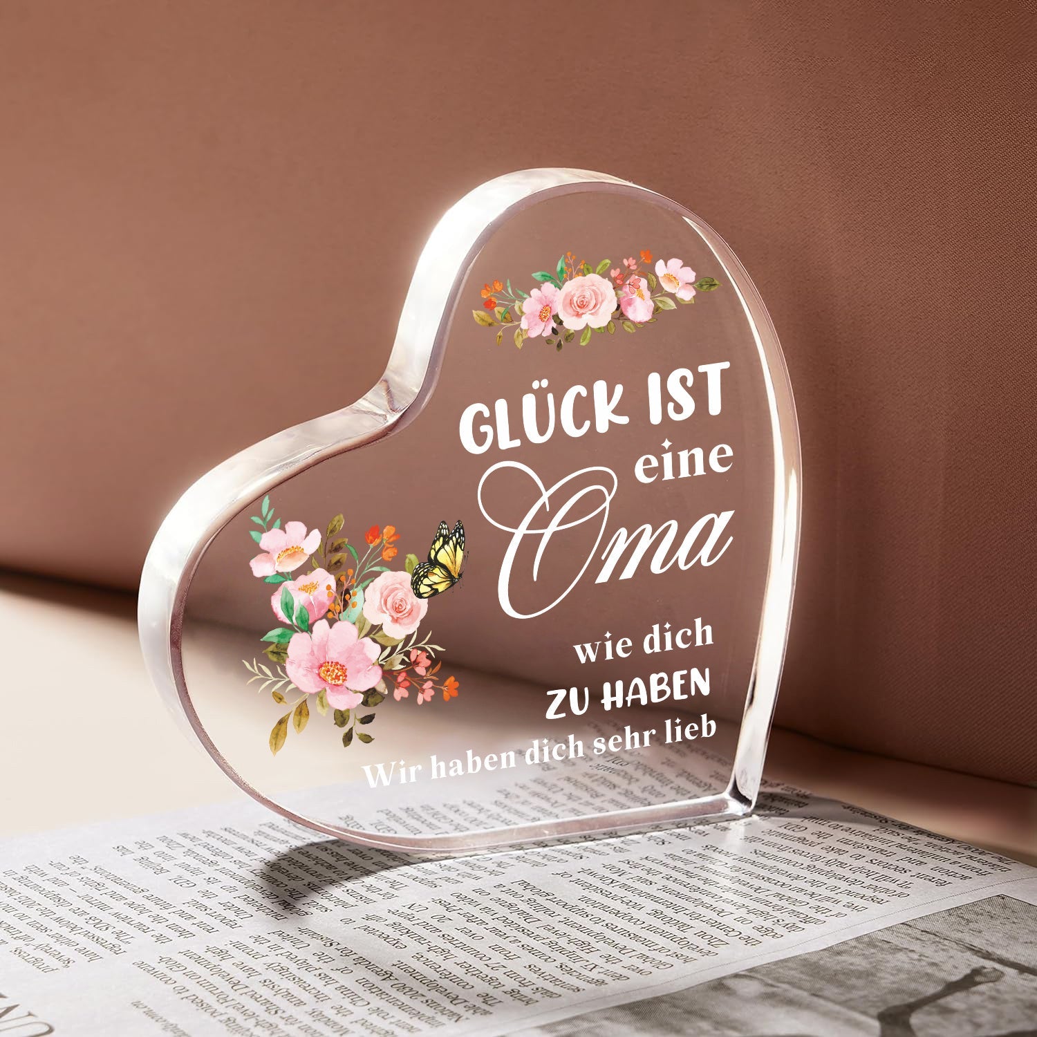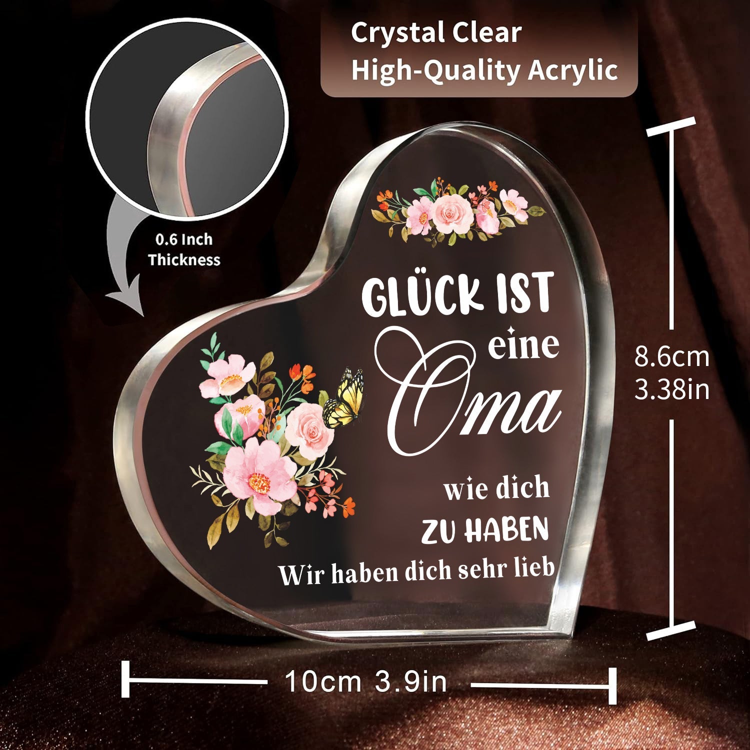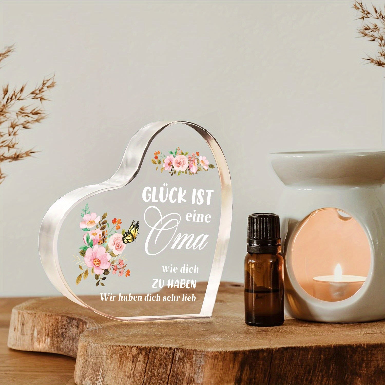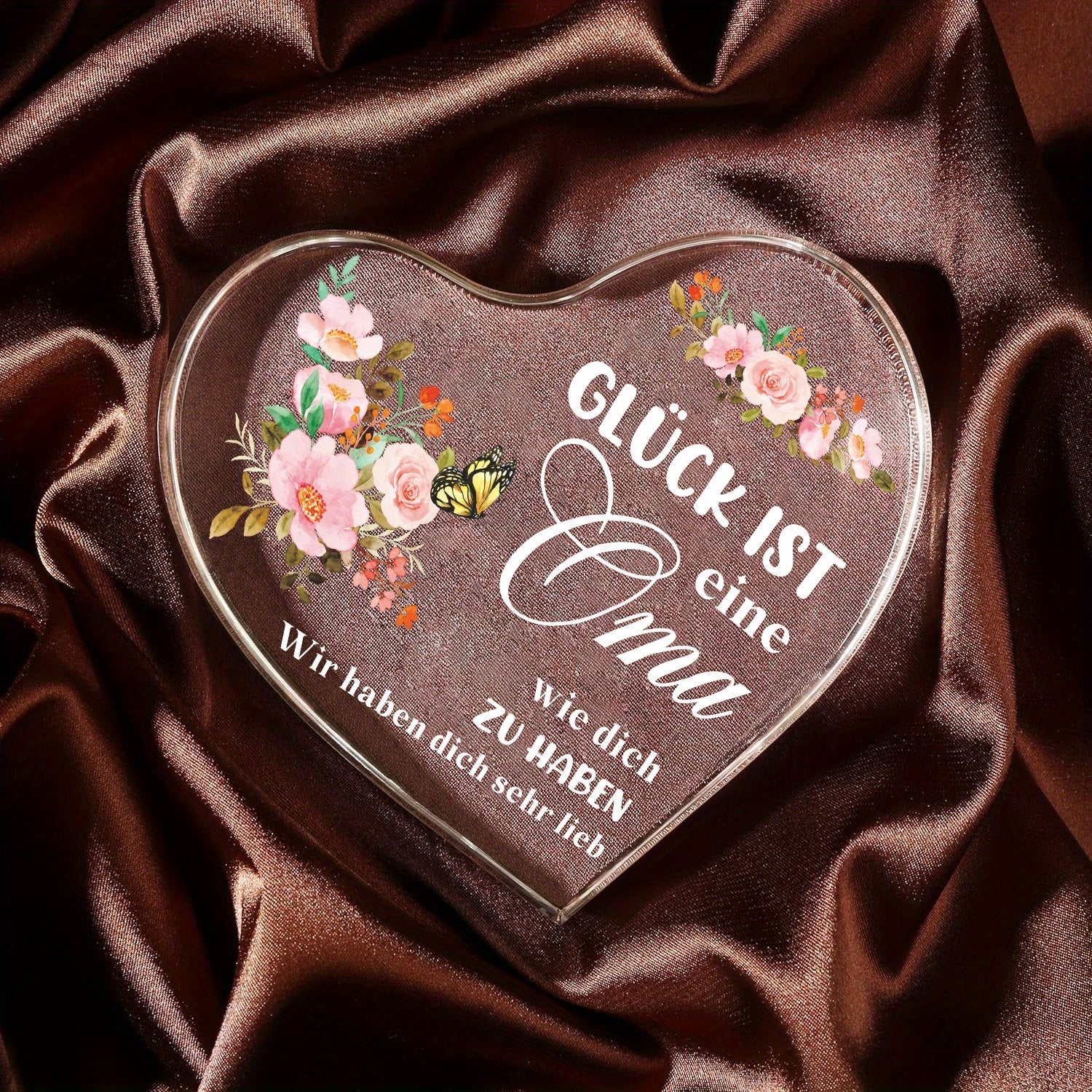 Сердцевидная акриловая табличка с гравированным дизайном для бабушки - идеальный подарок на дни рождения, Рождество и День благодарения. Имеет цветочный дизайн и может использоваться как декоративный пресс для бумаги.