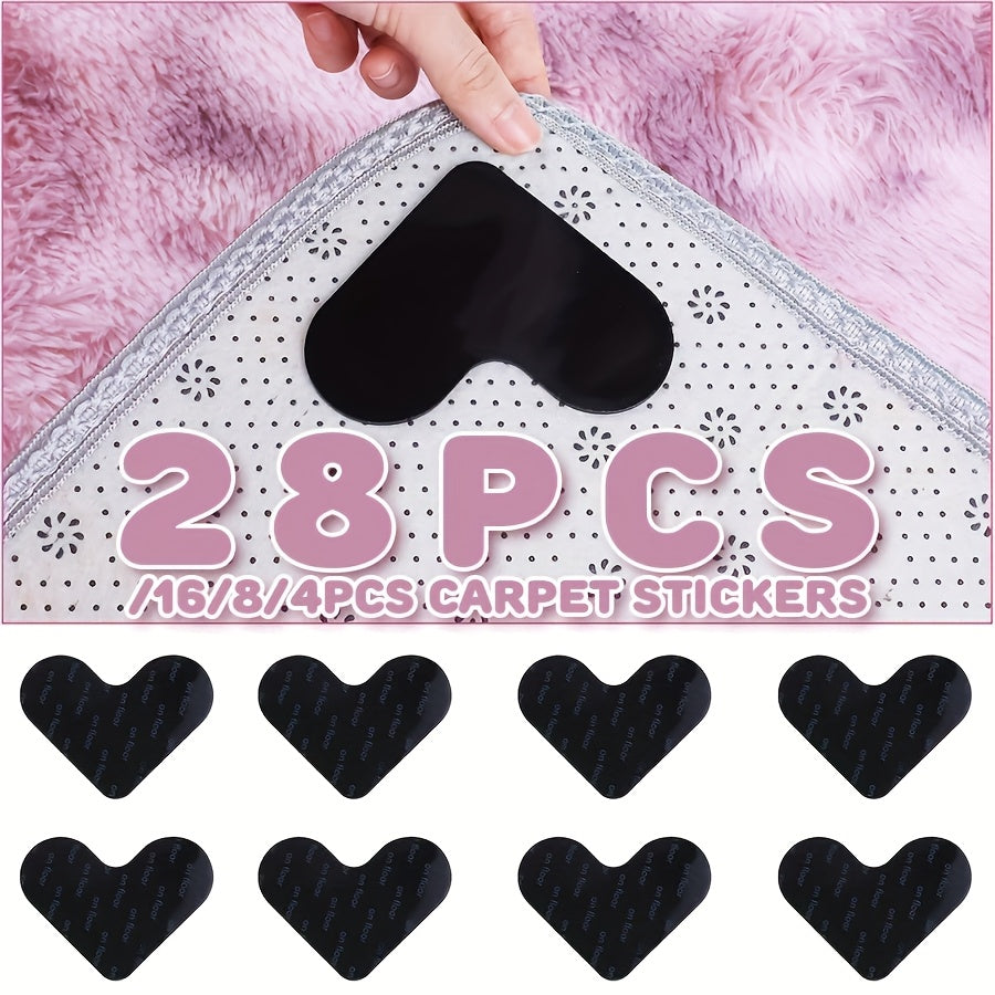 Ковровые наклейки в форме сердца теперь доступны в упаковках по 4, 8, 16 или 28 штук, чтобы предотвратить скольжение и скатывание ковров по краям. Легко режутся, чтобы подогнать под любой размер ковра.