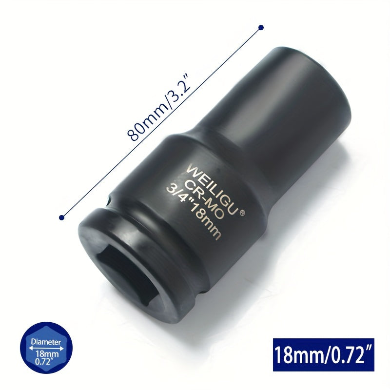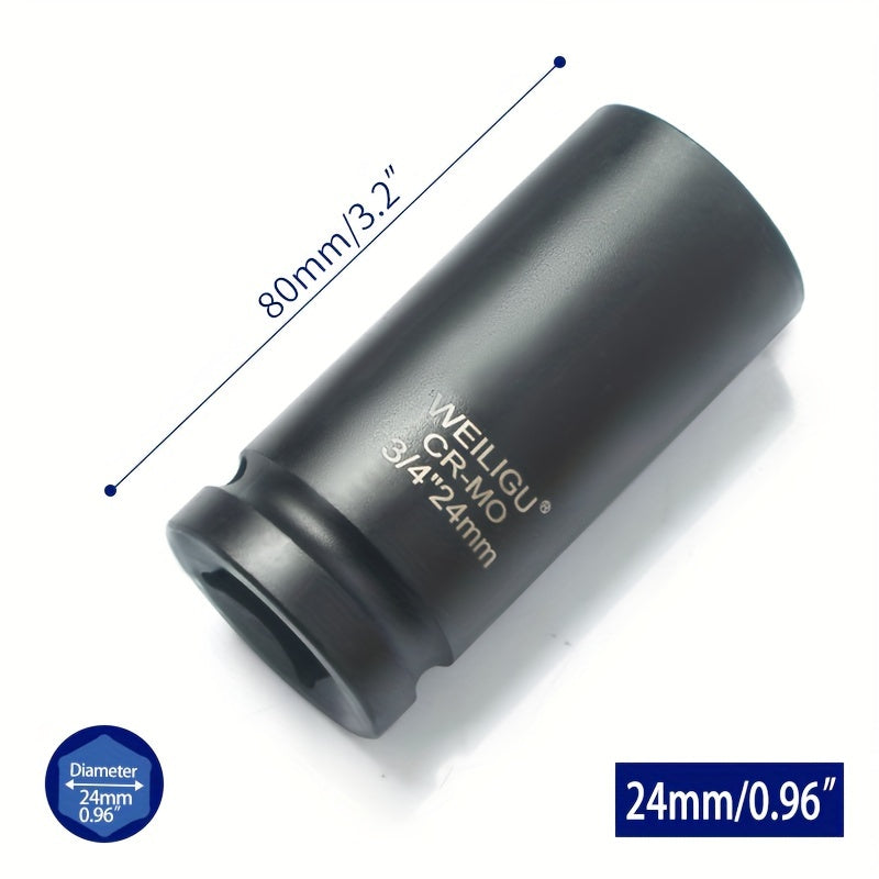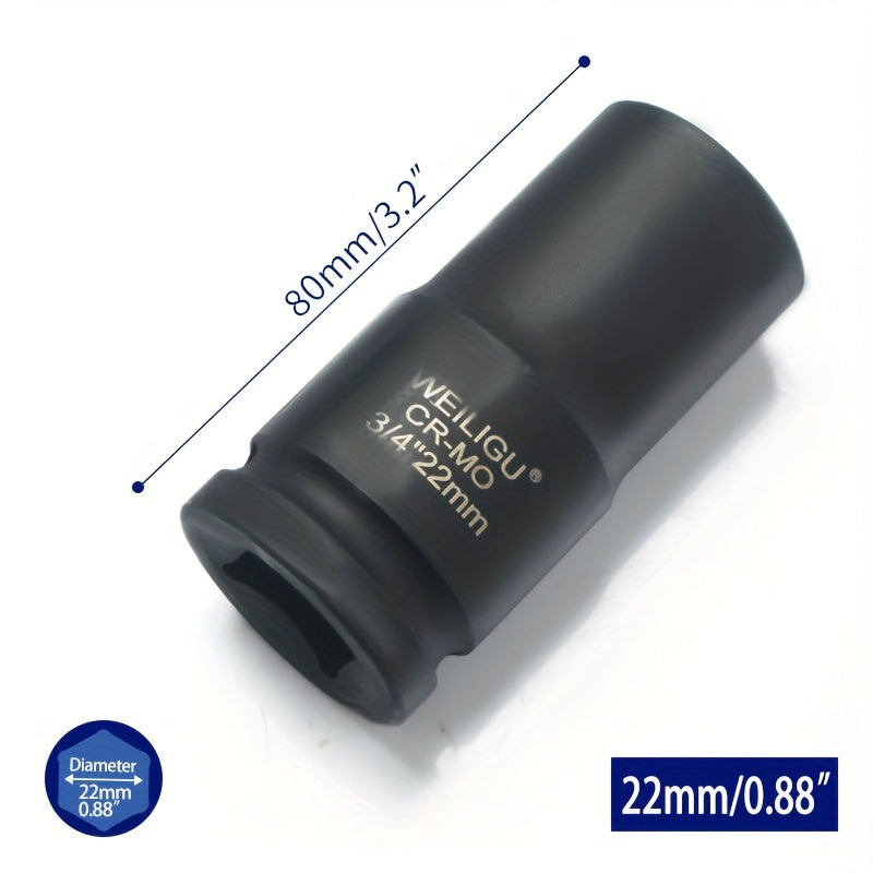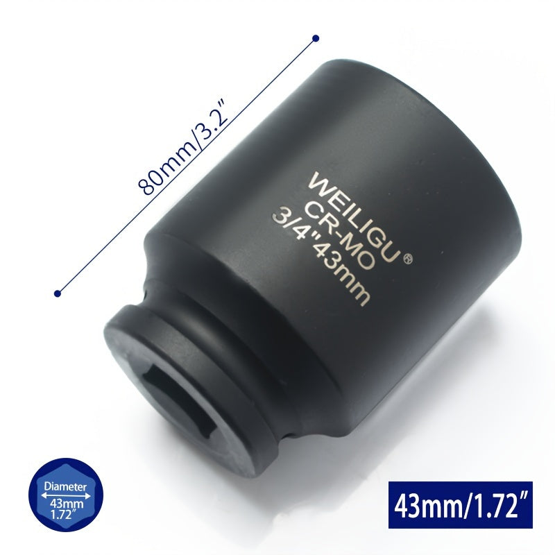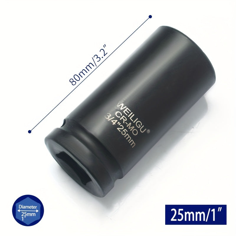 Тяжелая пневматическая головка-ключ 3/4 дюйма, средняя длина, хром-ванадий
