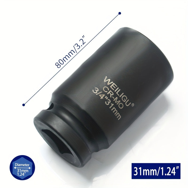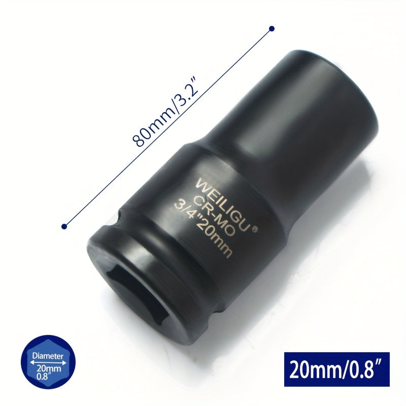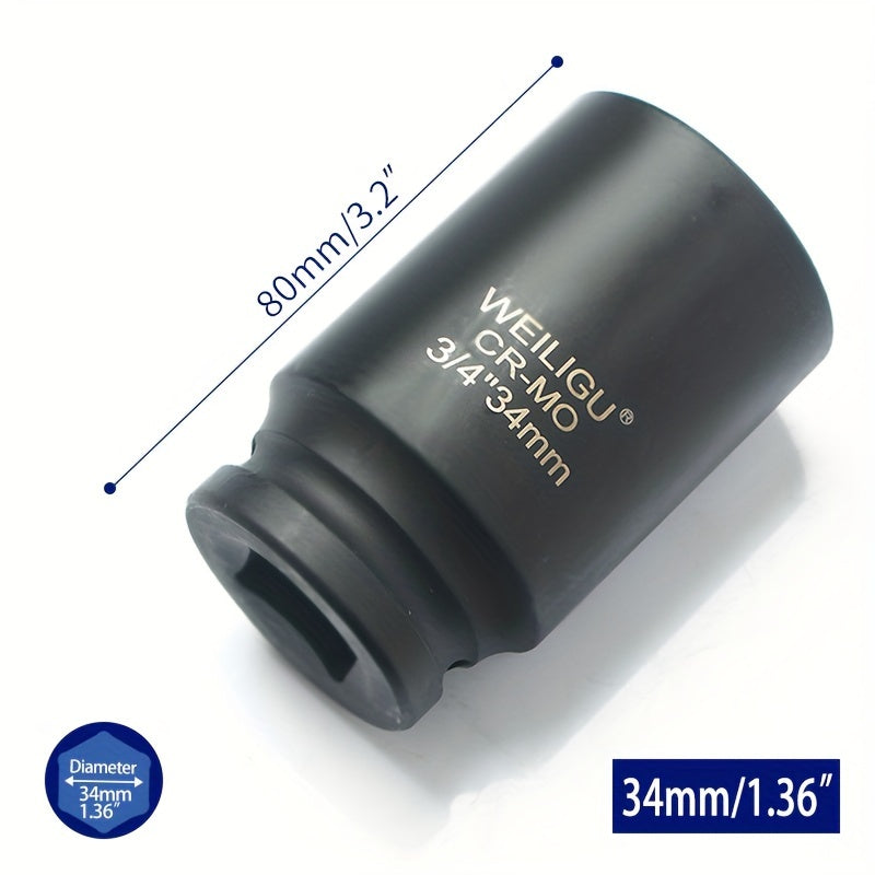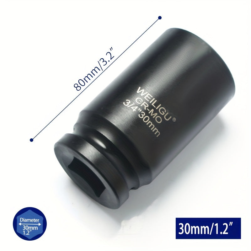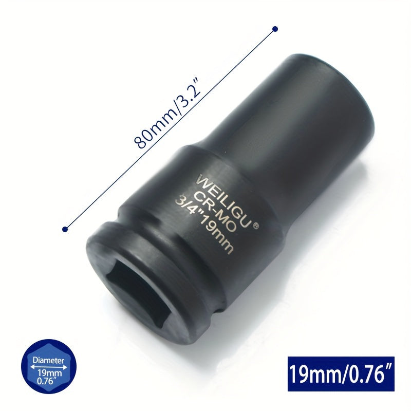 Тяжелая пневматическая головка-ключ 3/4 дюйма, средняя длина, хром-ванадий