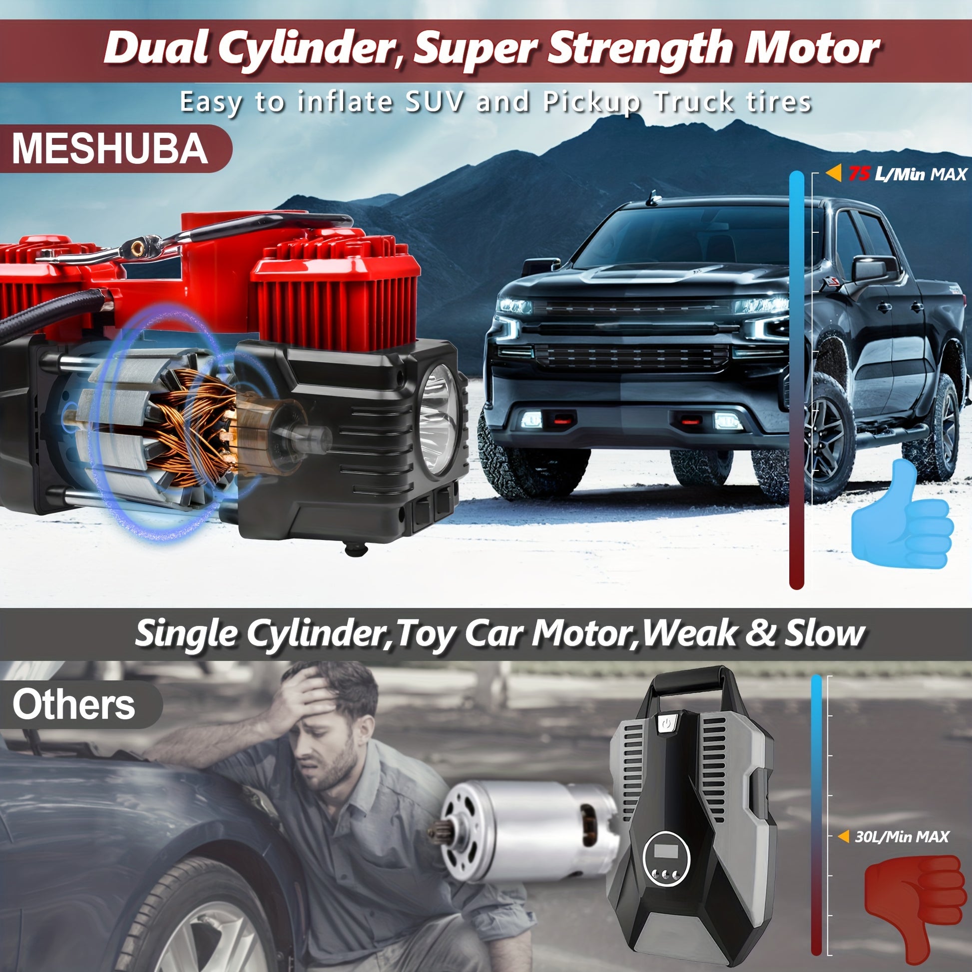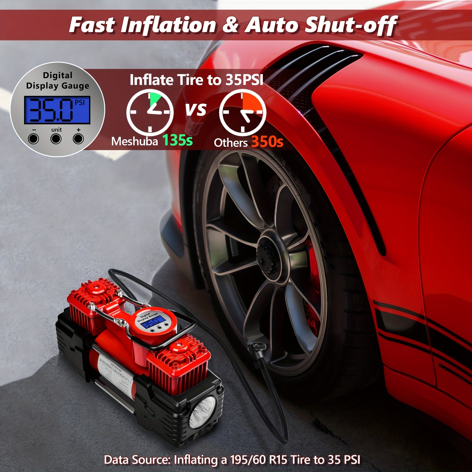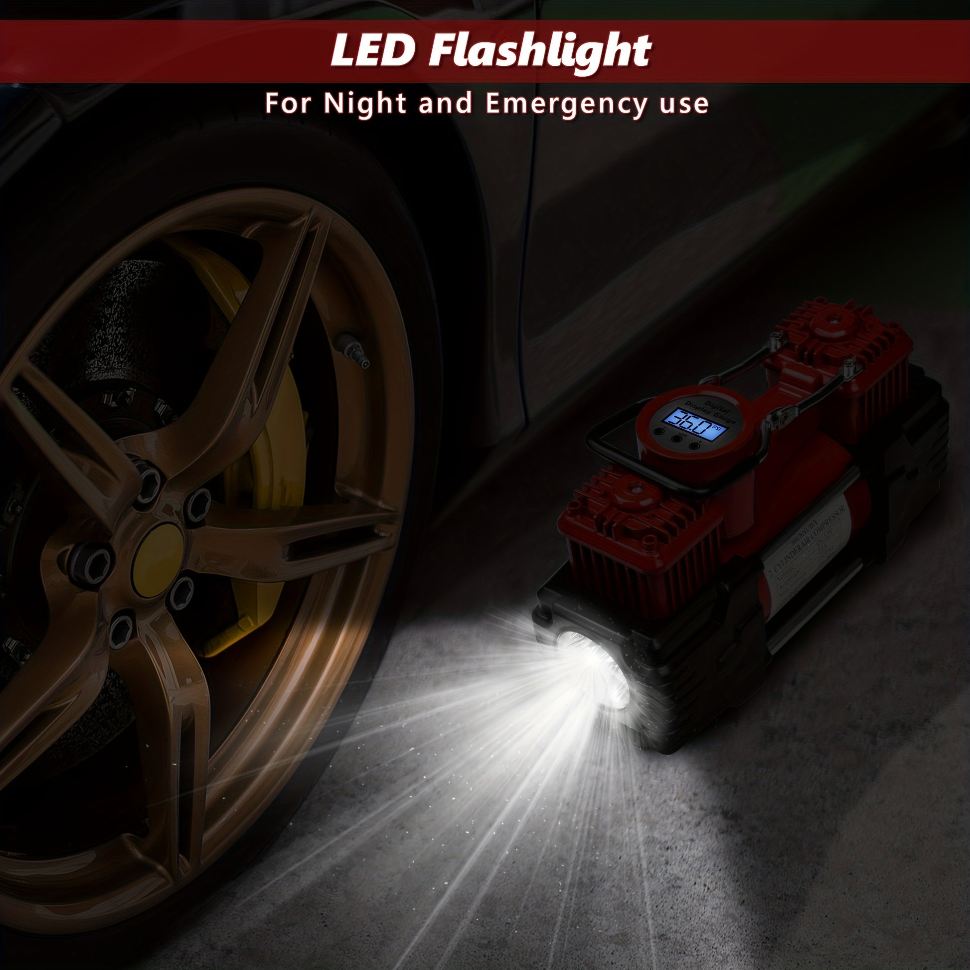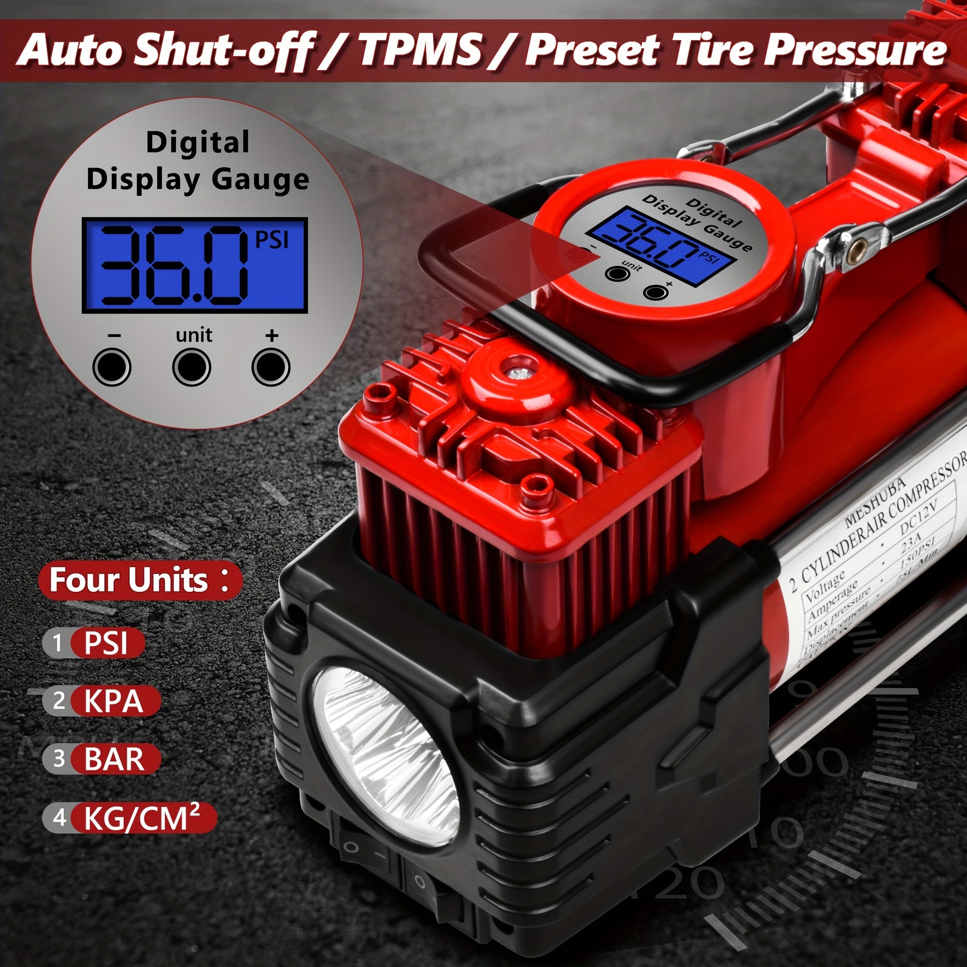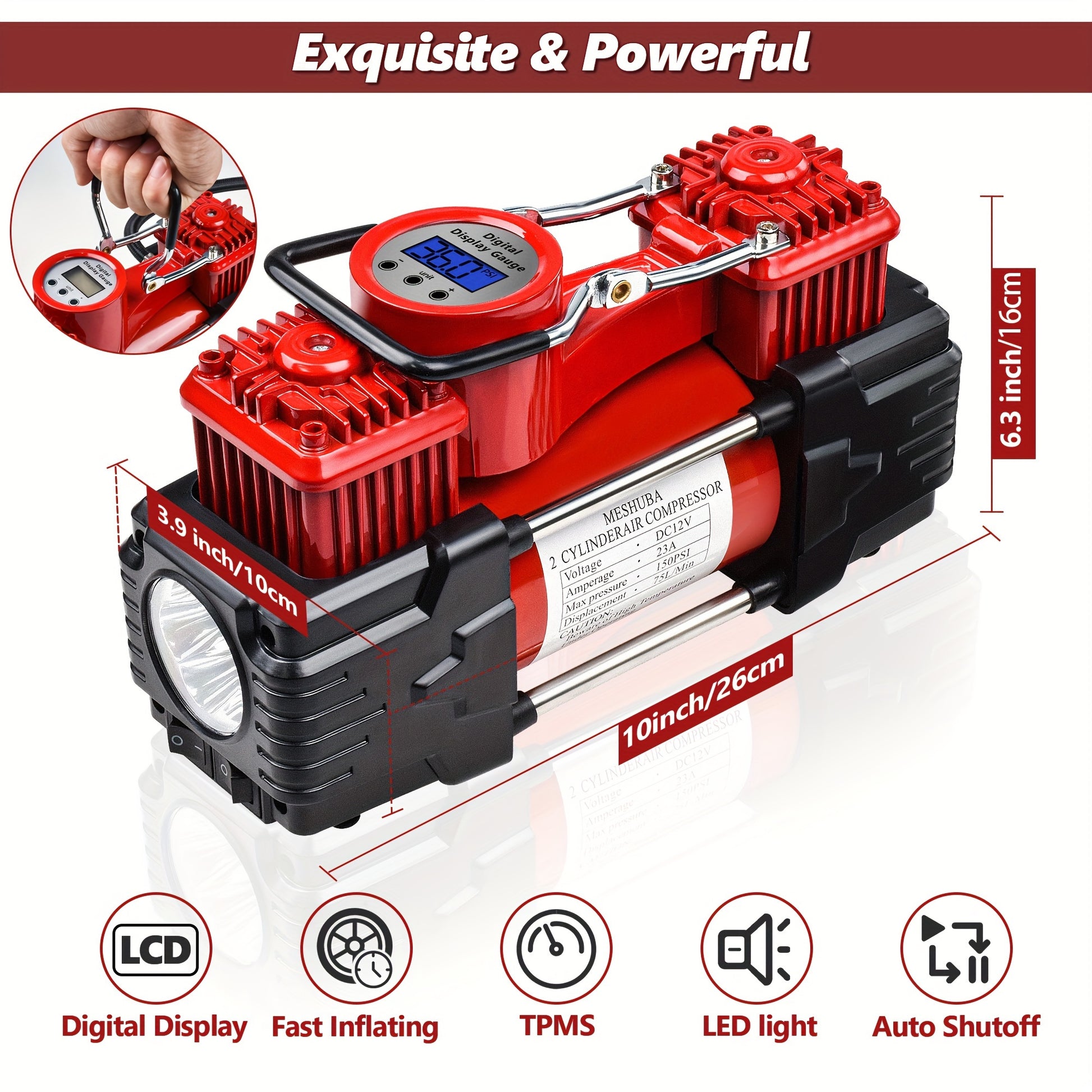 Портативный тяжелый двухцилиндровый воздушный компрессор 12 В с цифровым манометром