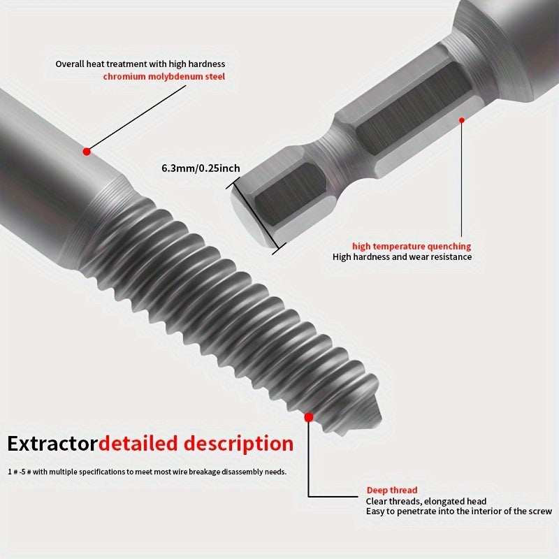 Набор сверл для извлечения шестигранных гнездовых винтов, инструменты для ремонта поврежденных винтов, 5 шт.