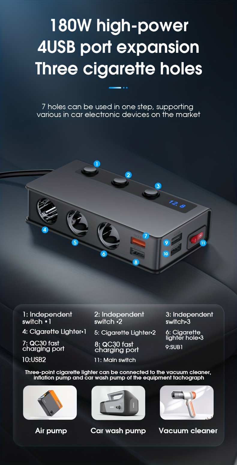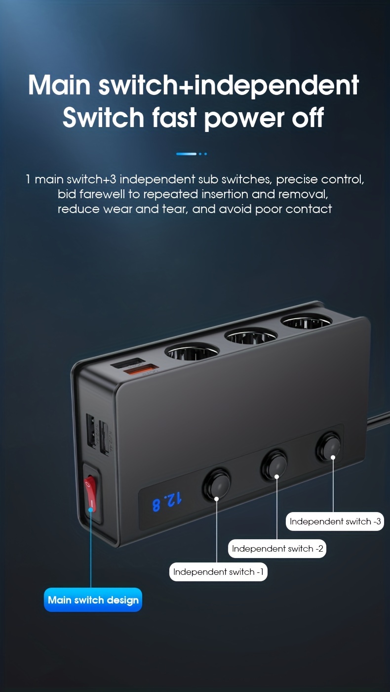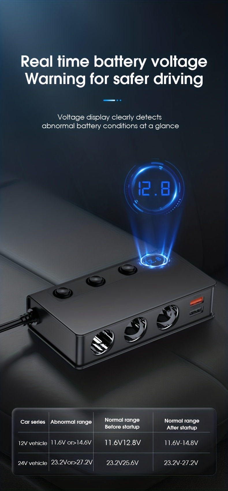 Высокомощное автомобильное зарядное устройство с USB-портами и дисплеем напряжения