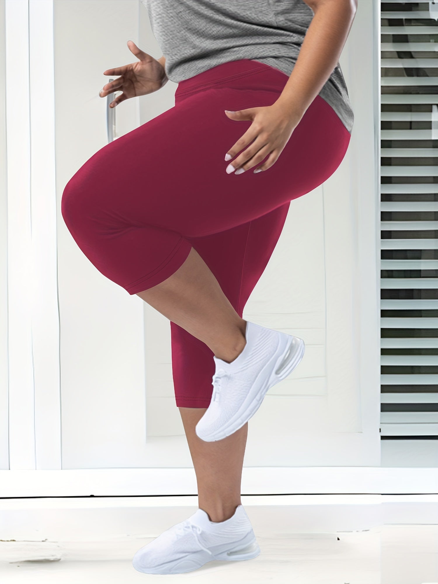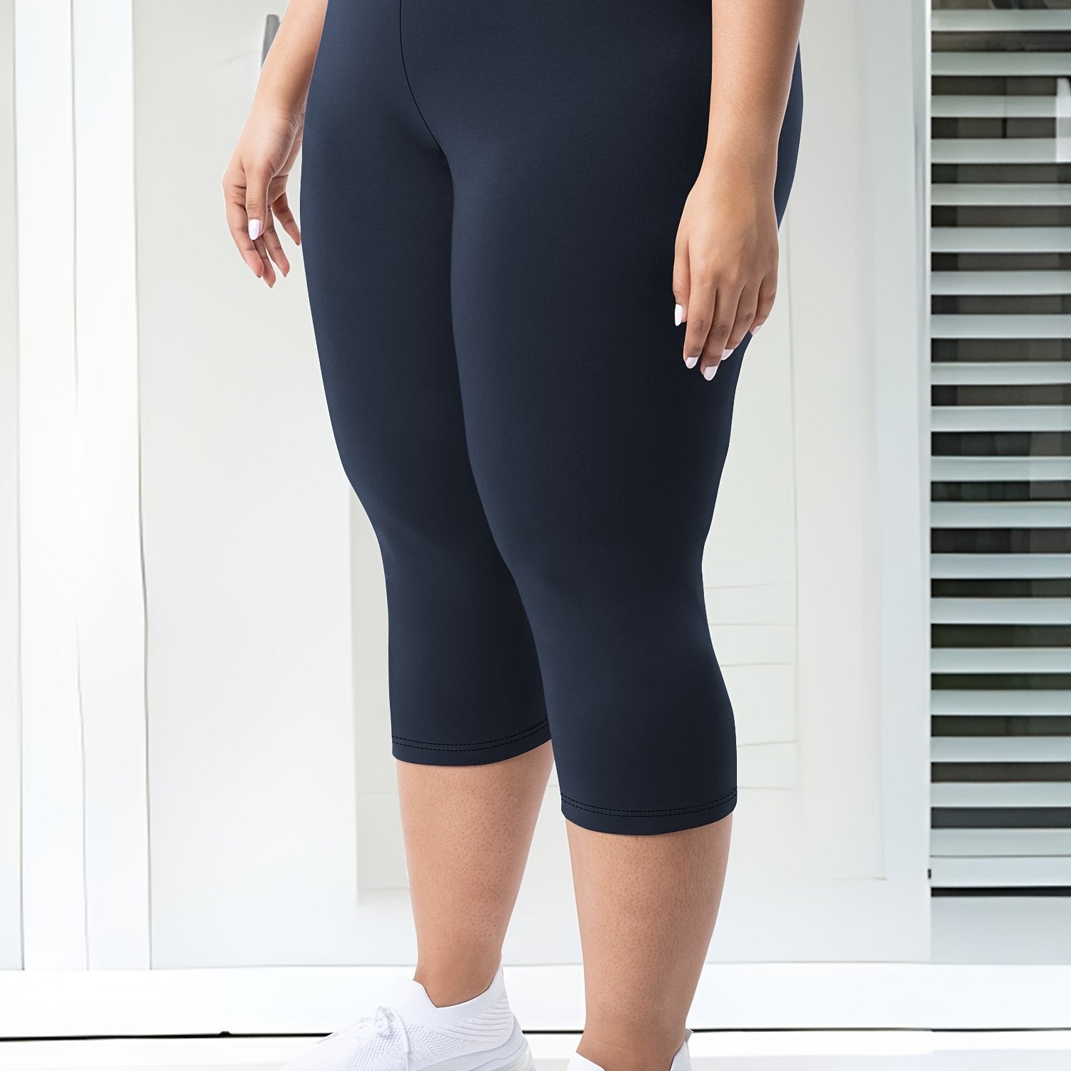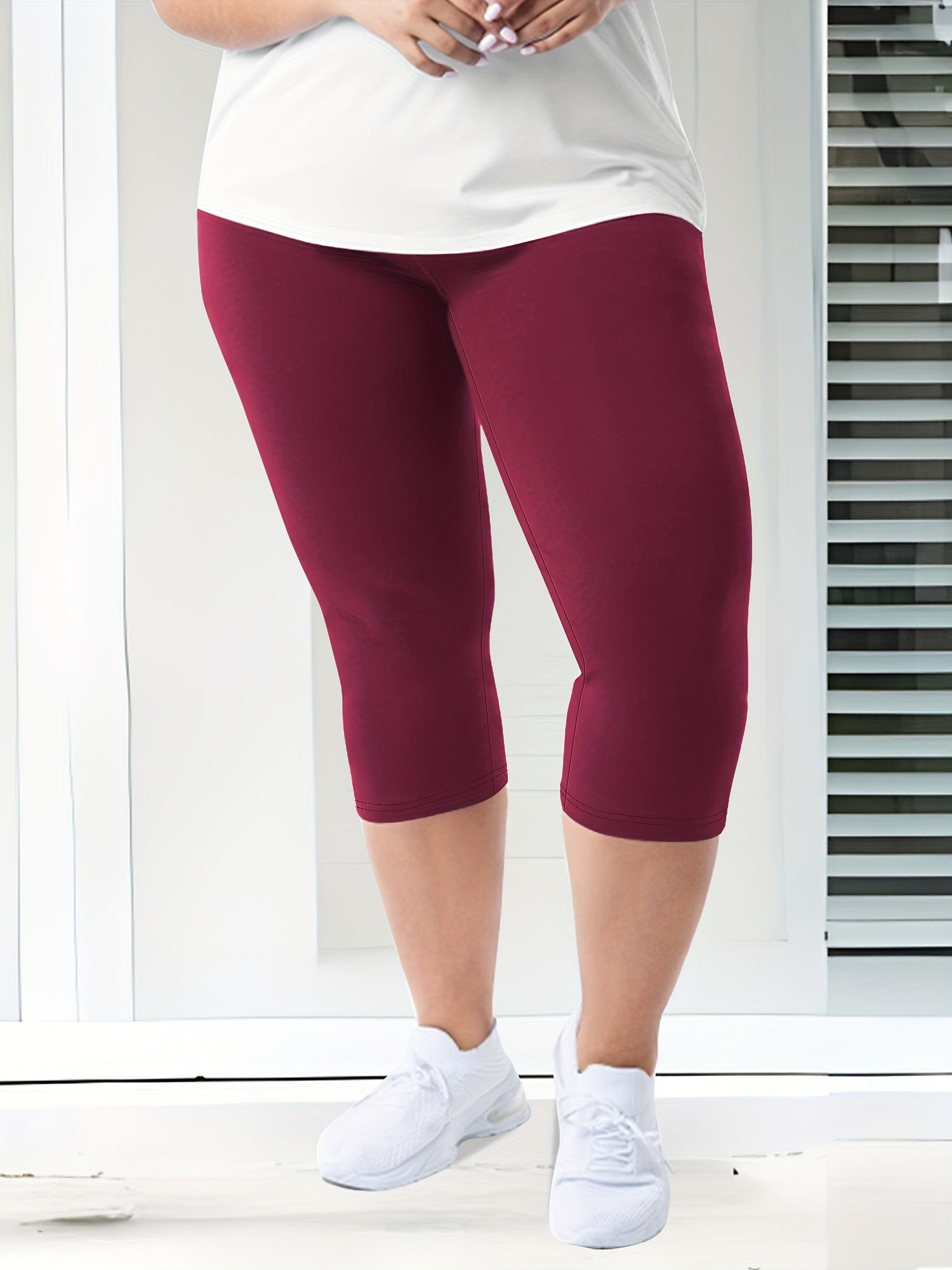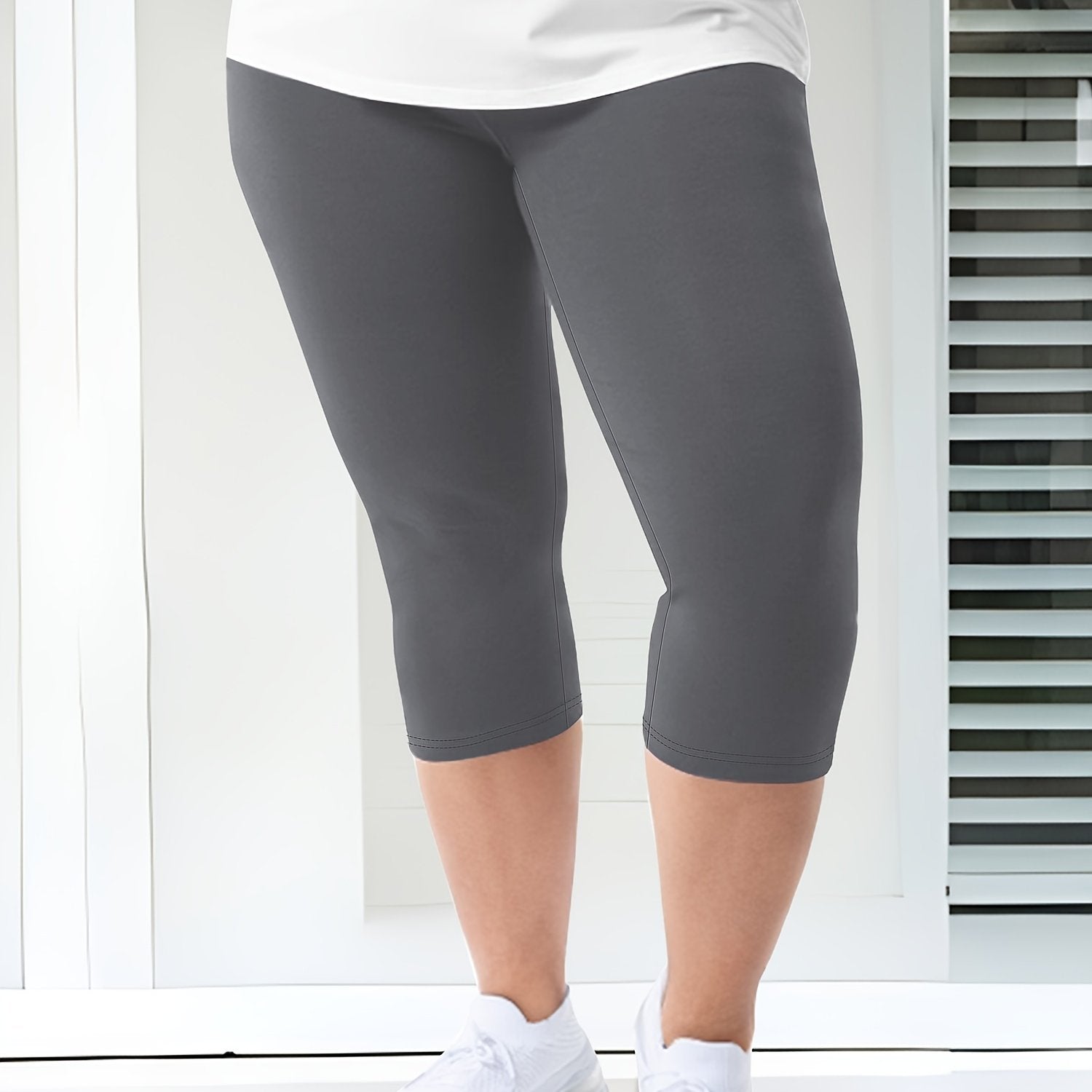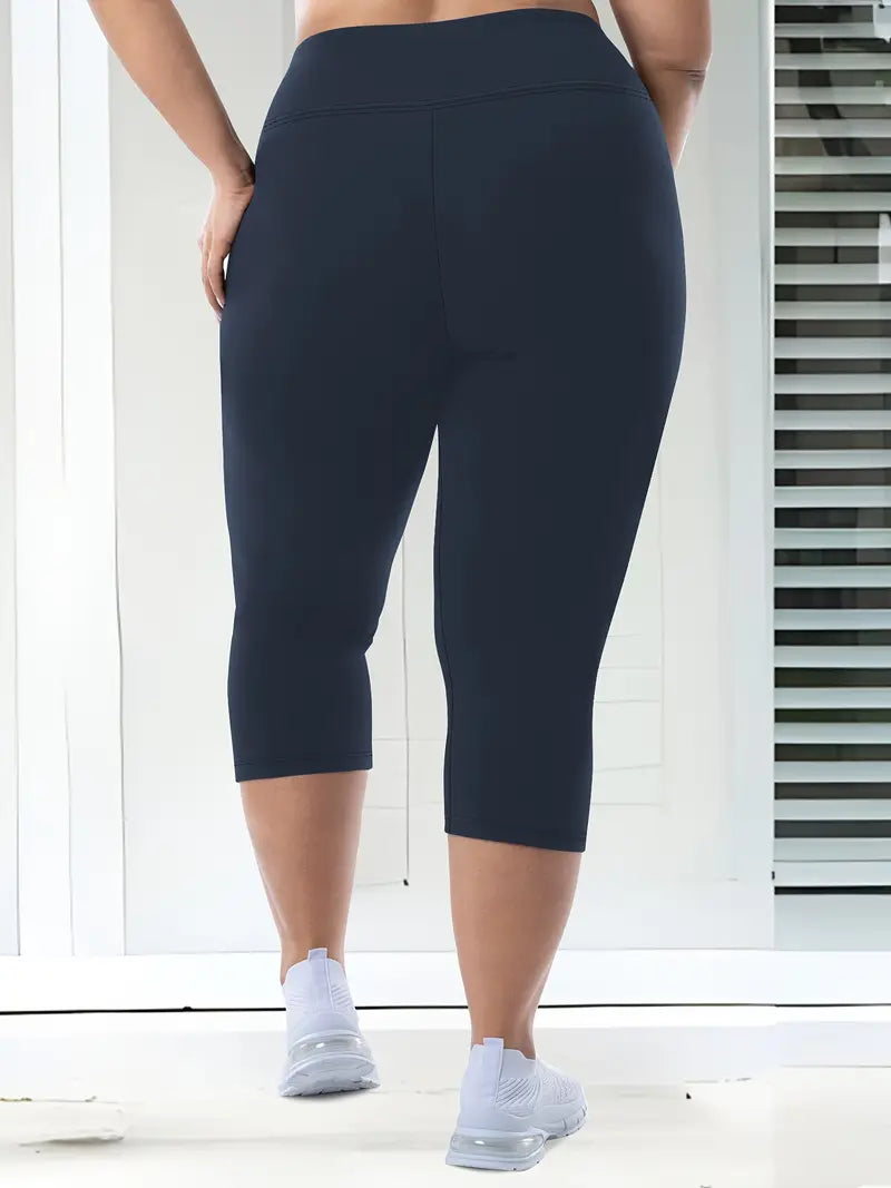 Капри-лосины большого размера с высокой талией для женщин с карманами, непрозрачная эластичная ткань