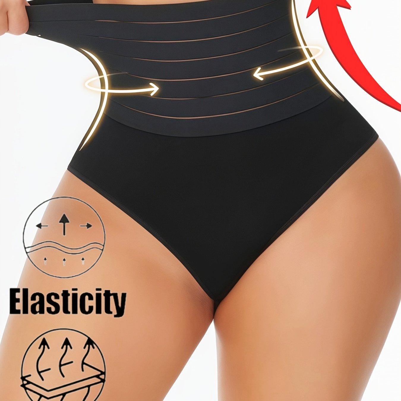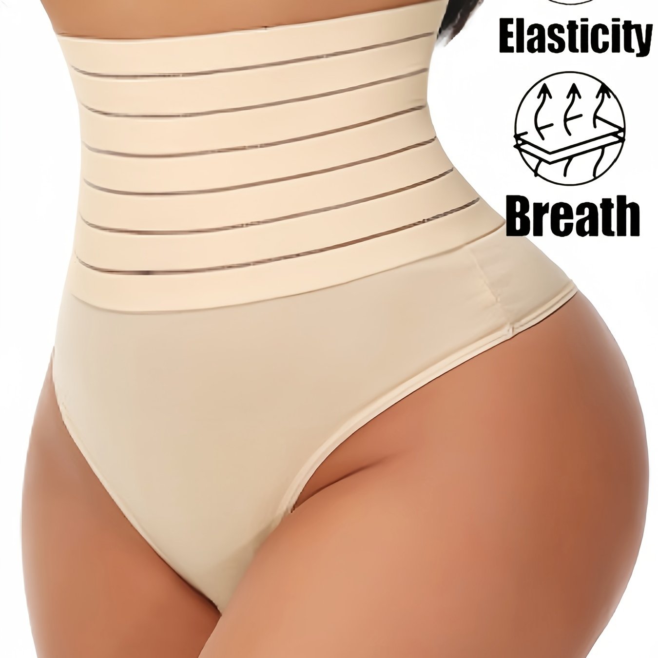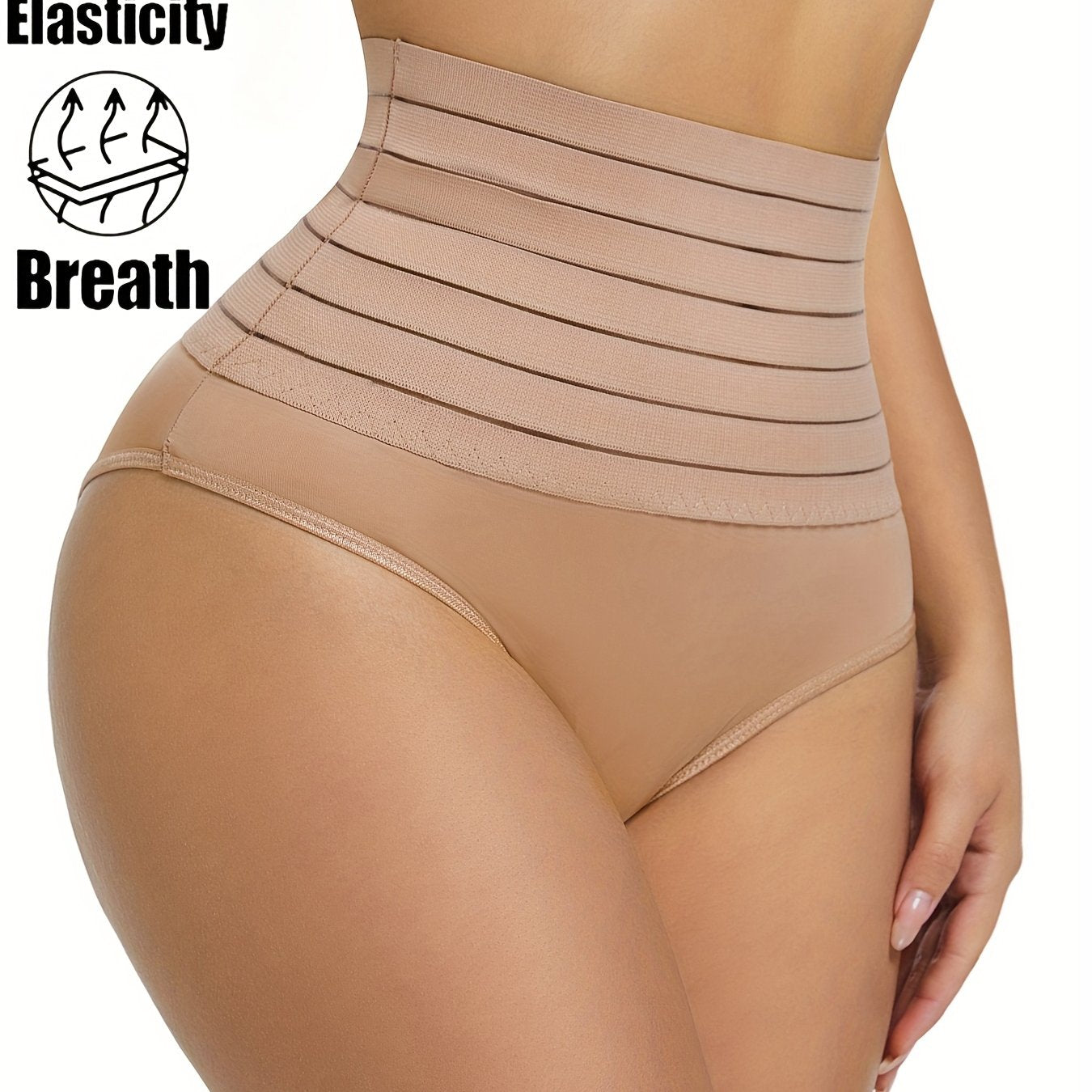 Трусики-утяжки с высокой талией для женщин, контроль живота, бежевый нейлоновый микс
