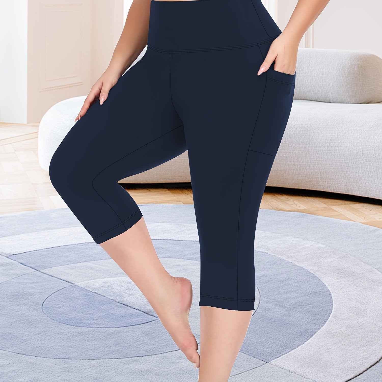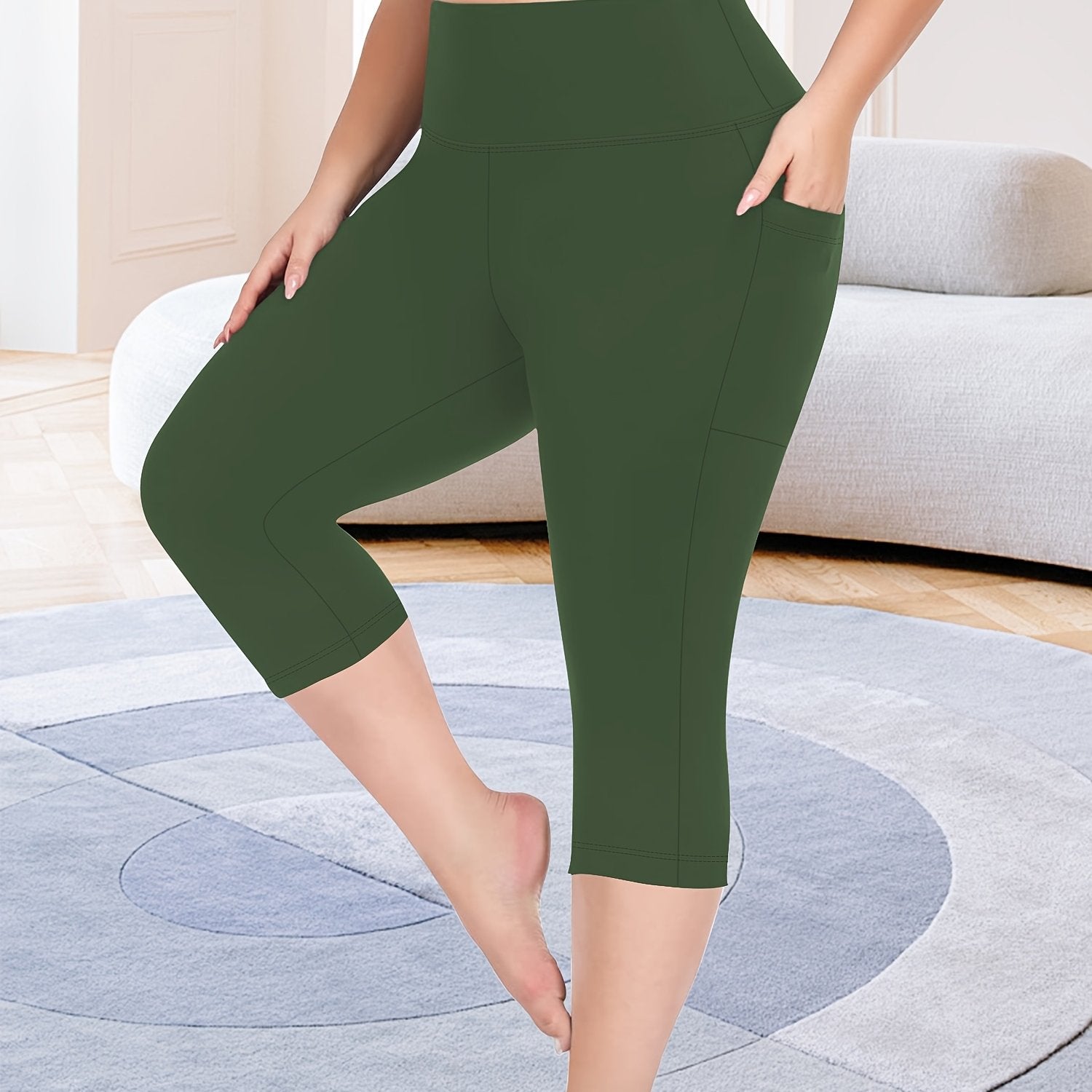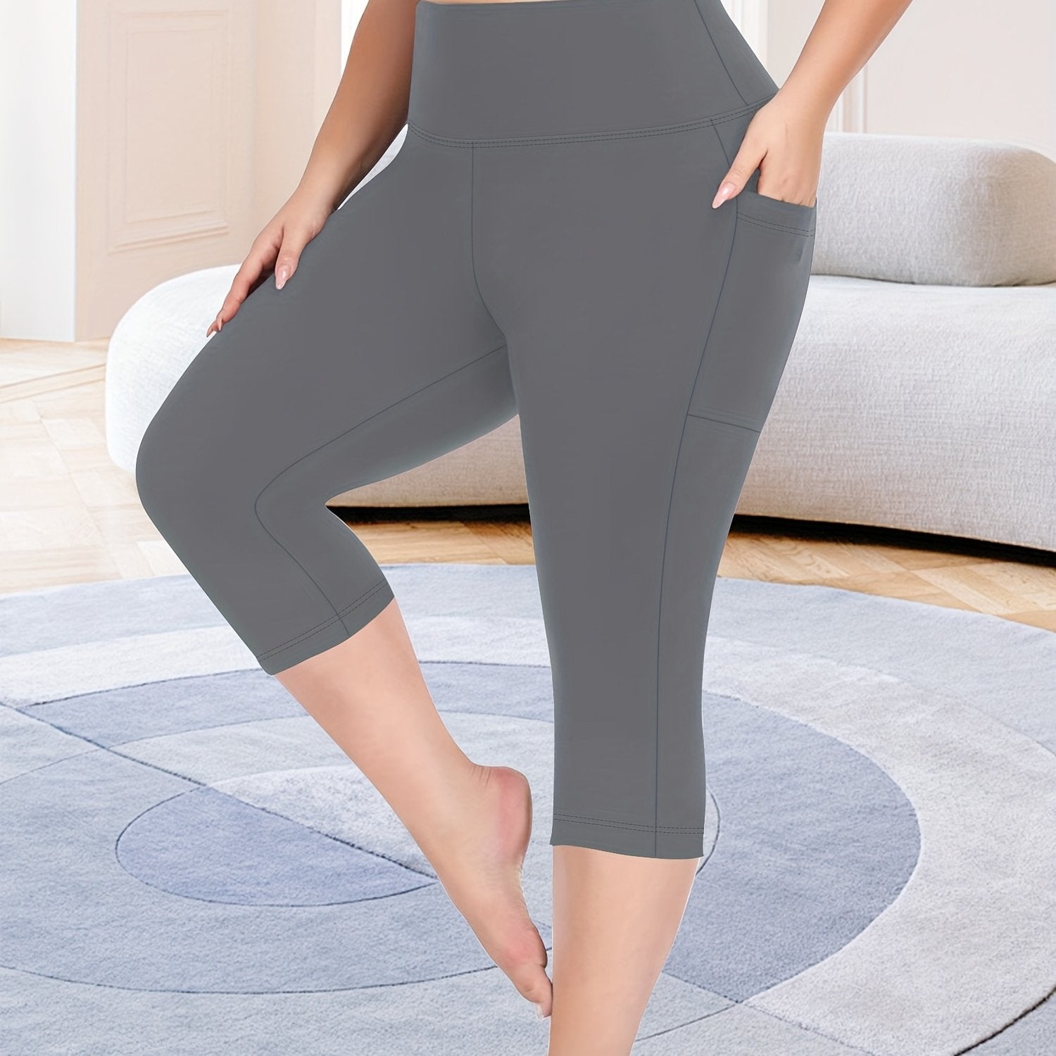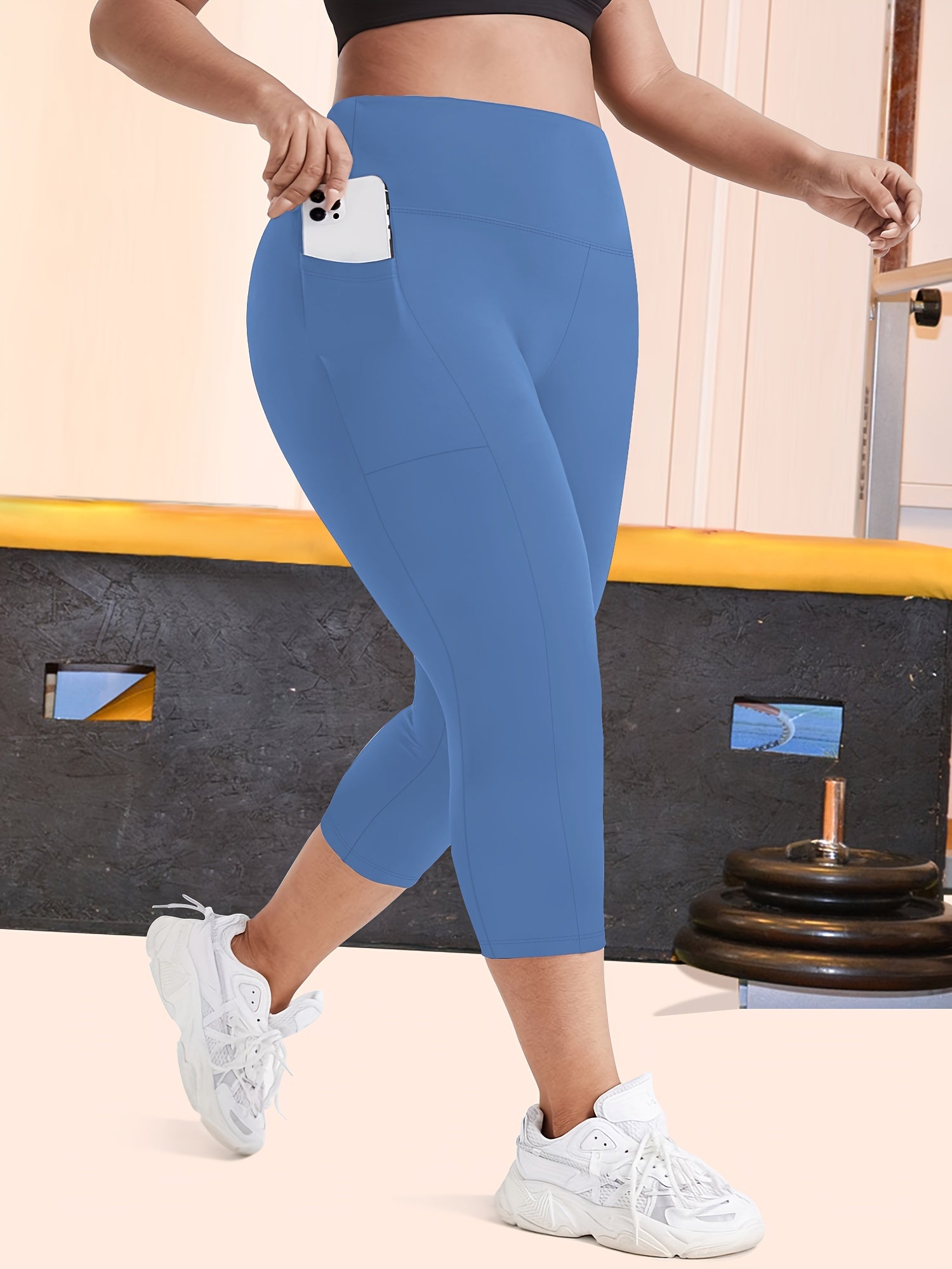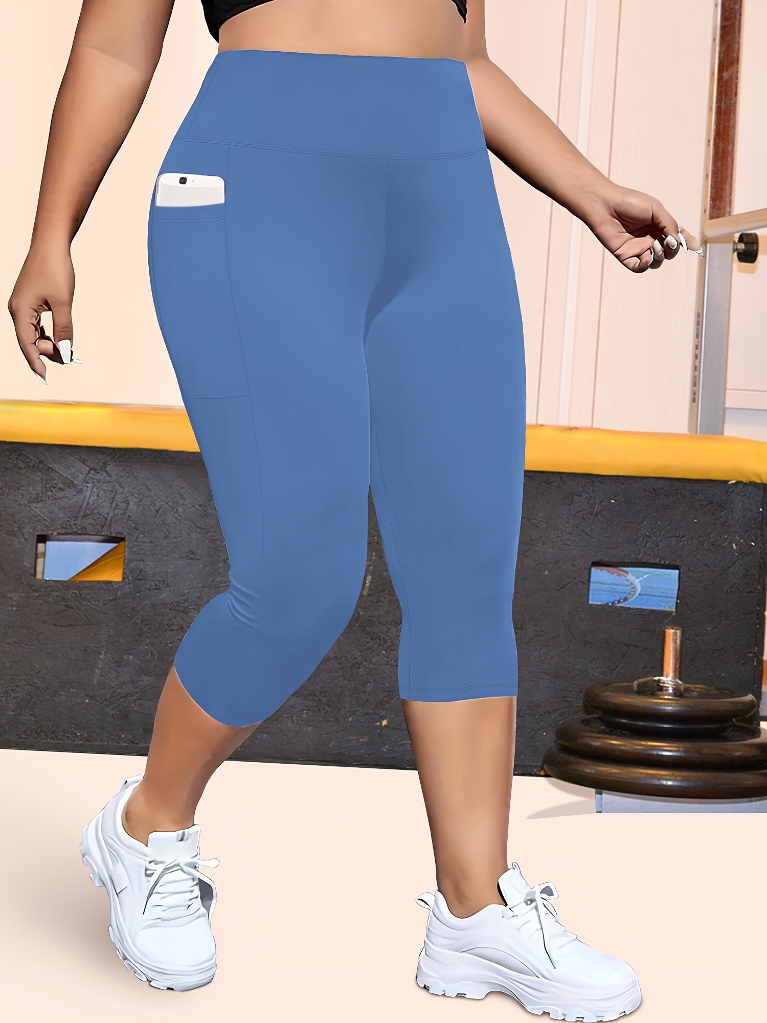 Леггинсы капри с высокой талией для полных с боковыми карманами для телефона для тренировок