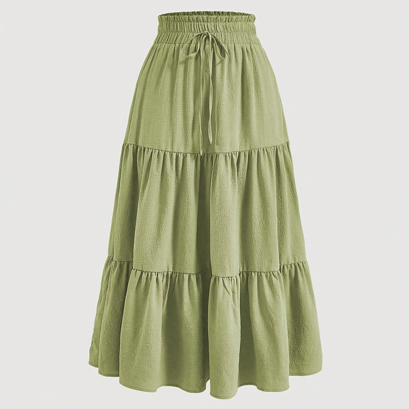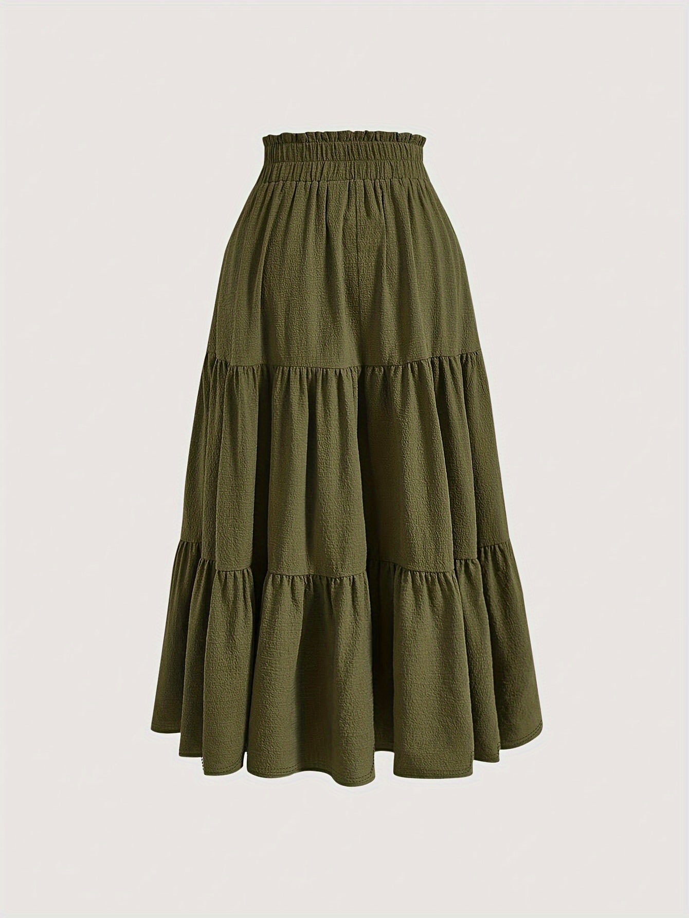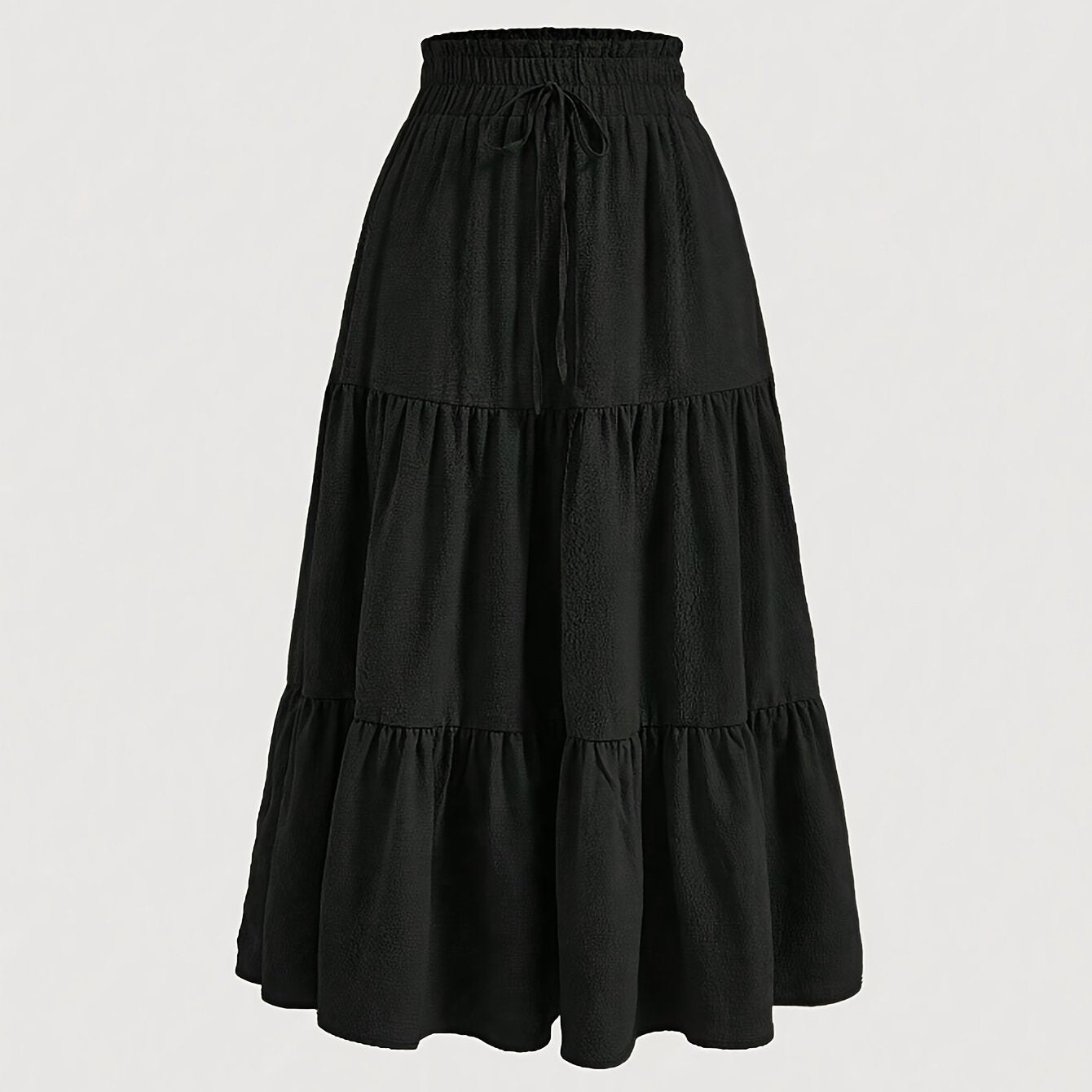 Макси-юбка с высокой талией и рюшей по краю, полиэстеровая смесь, повседневная, весна, лето, осень