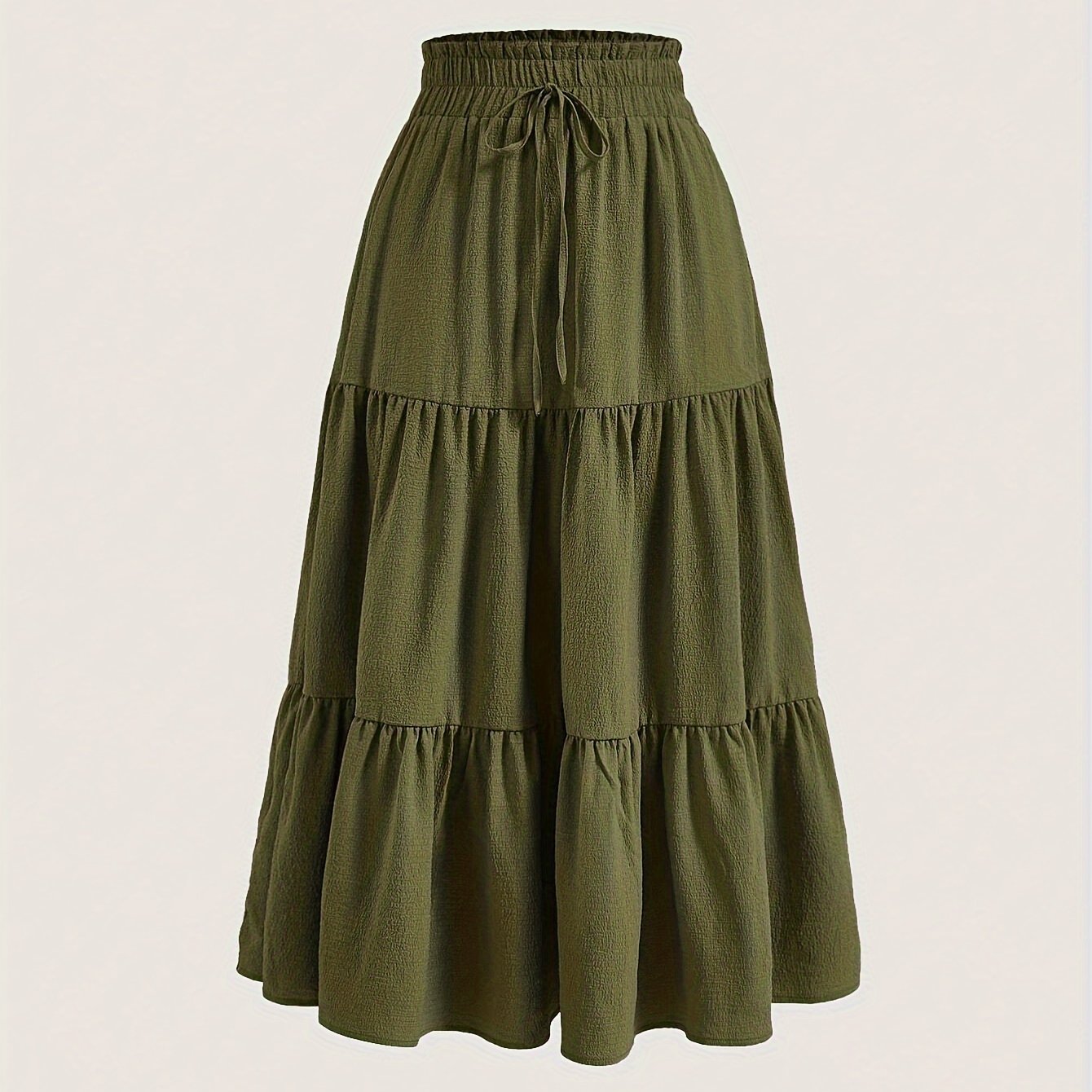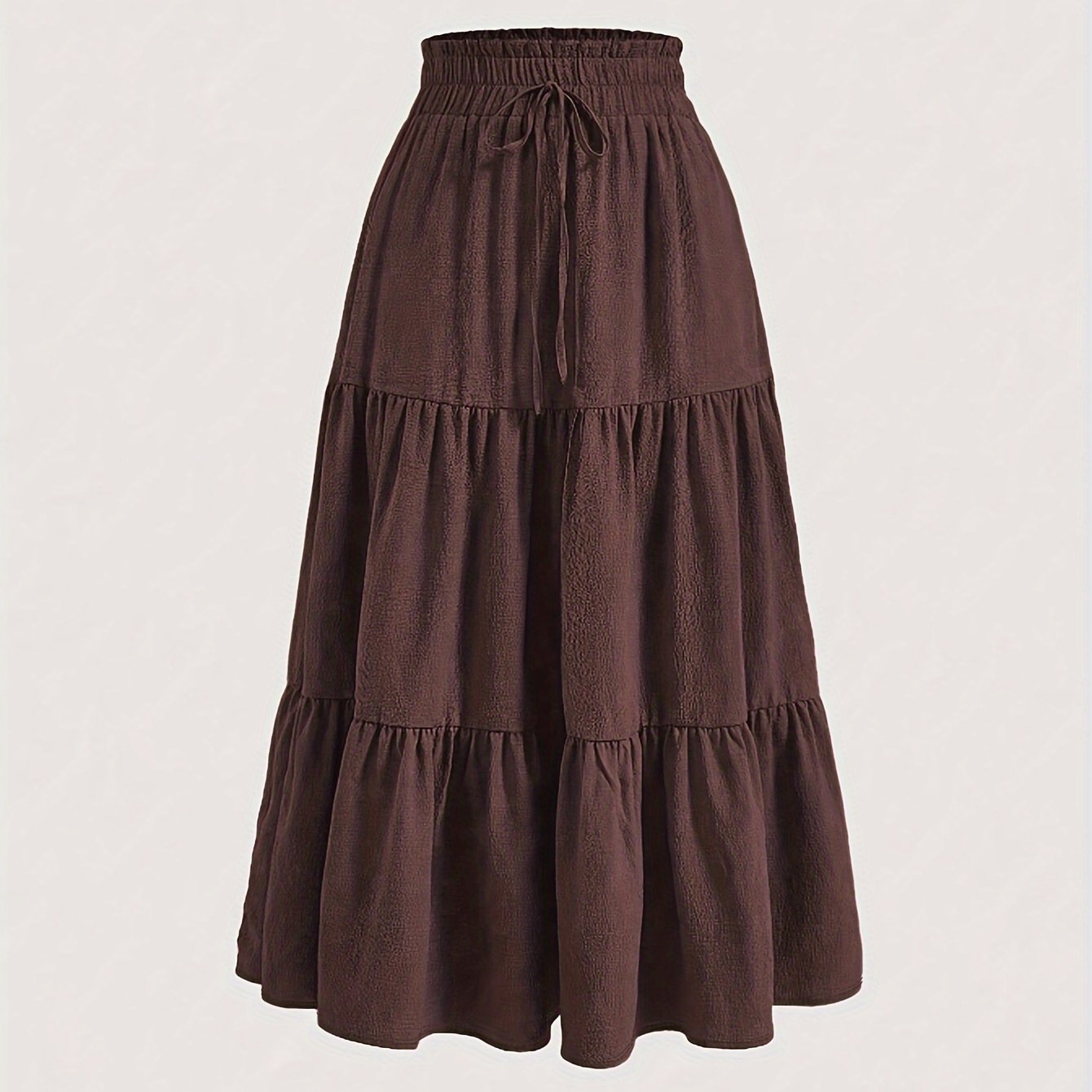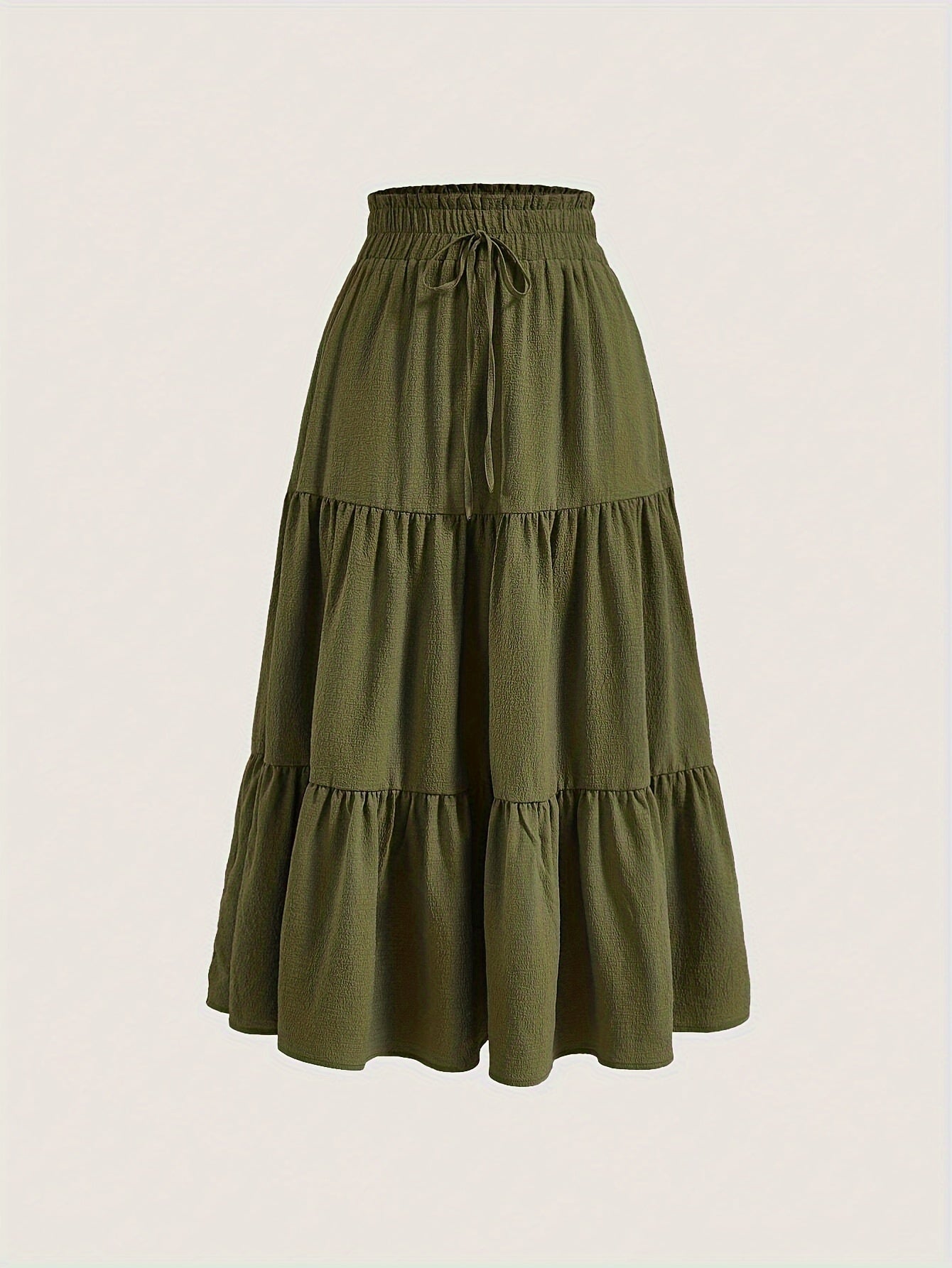 Макси-юбка с высокой талией и рюшей по краю, полиэстеровая смесь, повседневная, весна, лето, осень