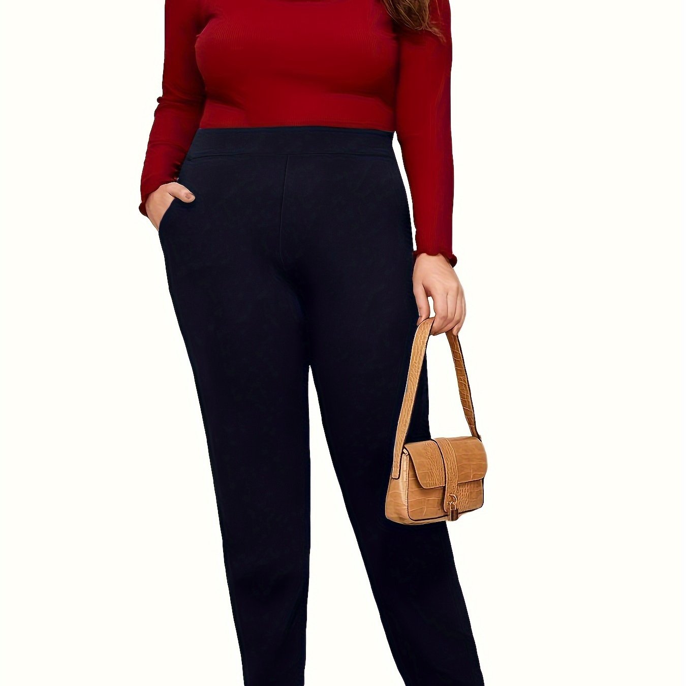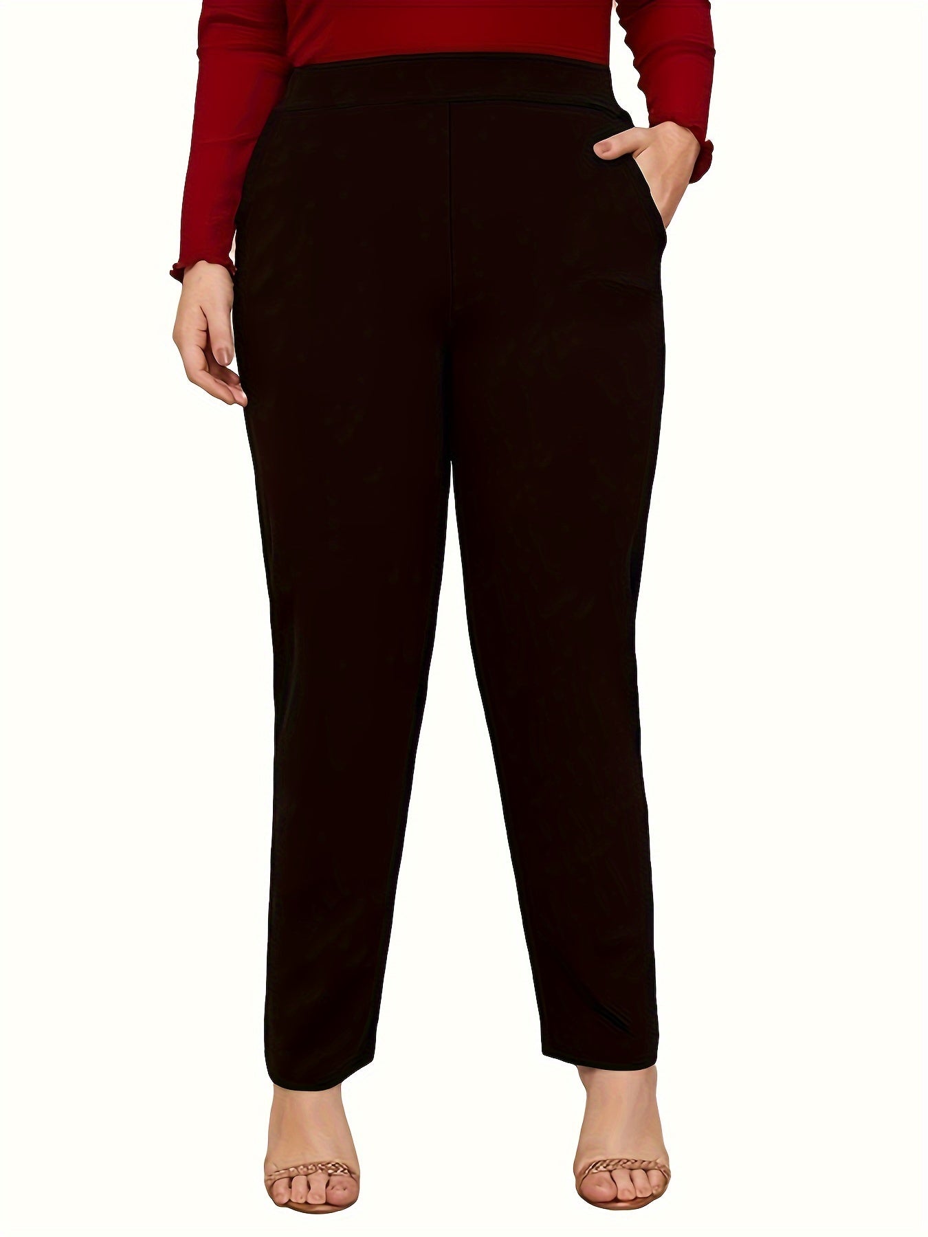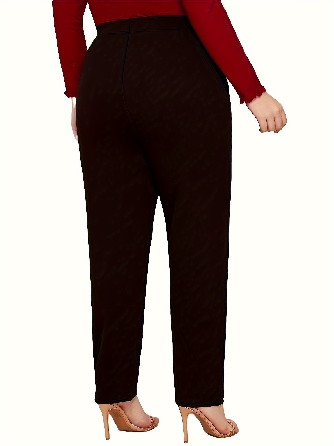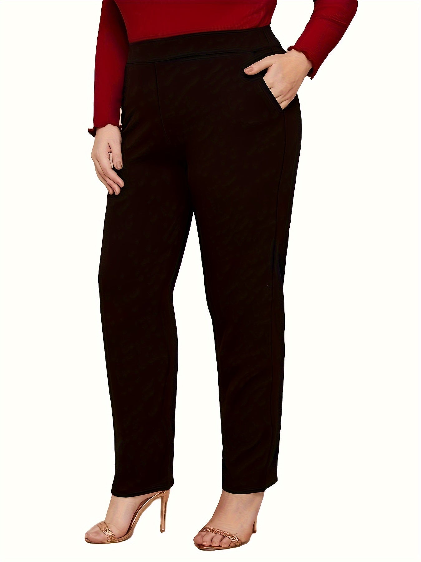 Брюки большого размера с высокой талией и прямыми штанинами из полиэстера с карманами, весна-осень