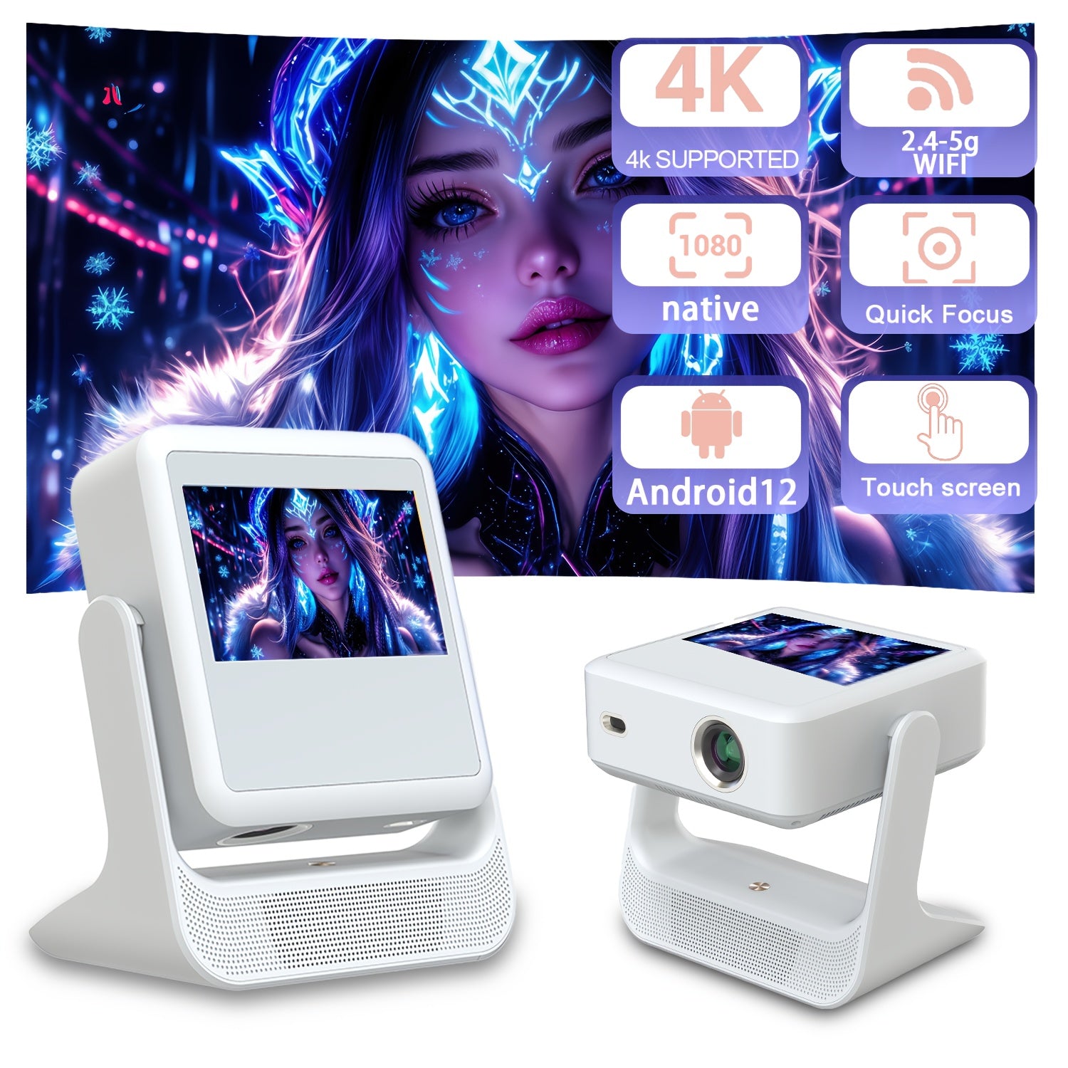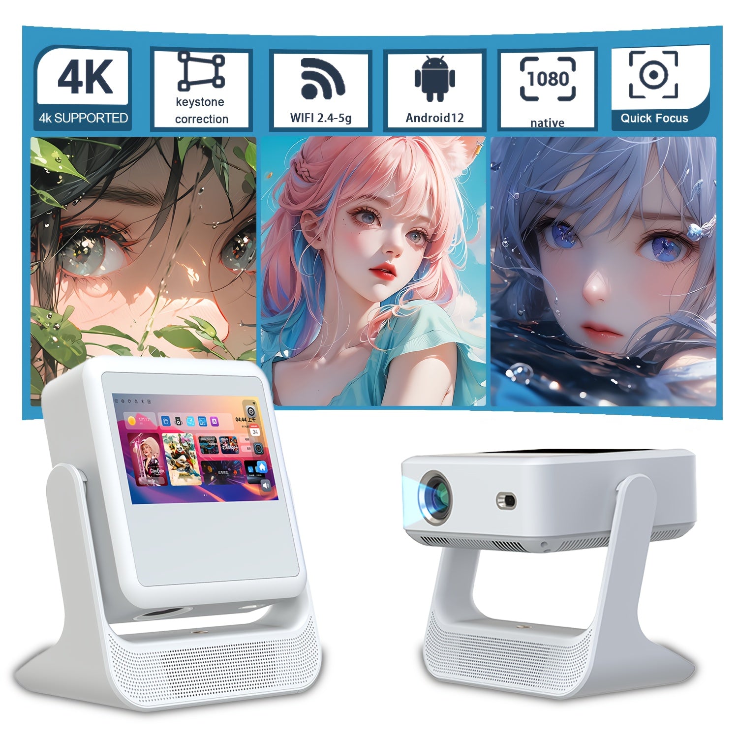 Проектор для домашнего кинотеатра 1080P 4K с поддержкой, сенсорный экран 8 дюймов, WiFi 6