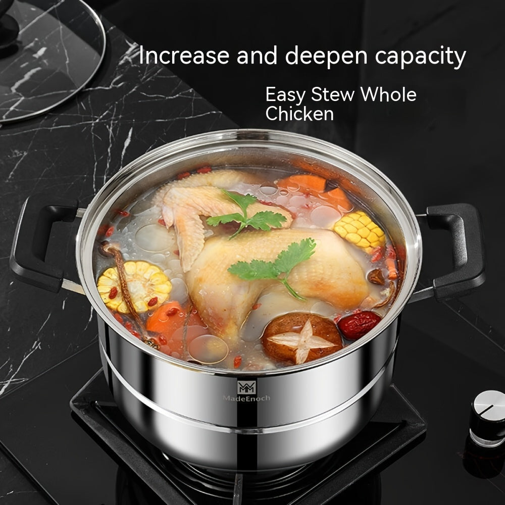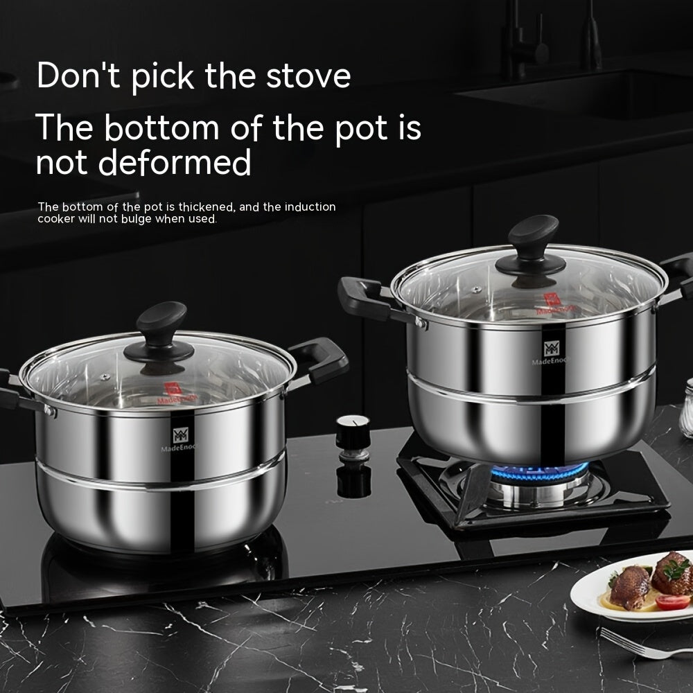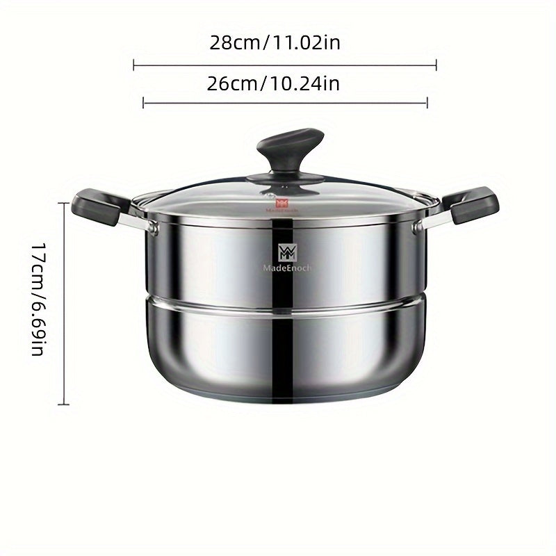 Кухонная кастрюля для супа, парящая булочки Мантоу, изготовленная из нержавеющей стали 201, с дизайном одного дна для пароварки. Диаметр кастрюли составляет 28 см, и она прозрачна для контроля за процессом приготовления. Код продукта: WMM-006.