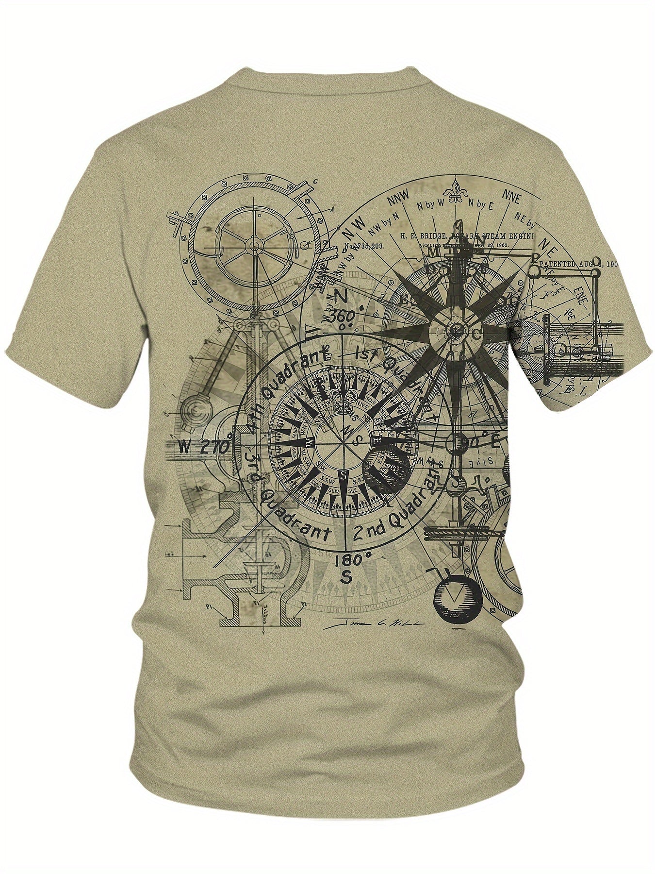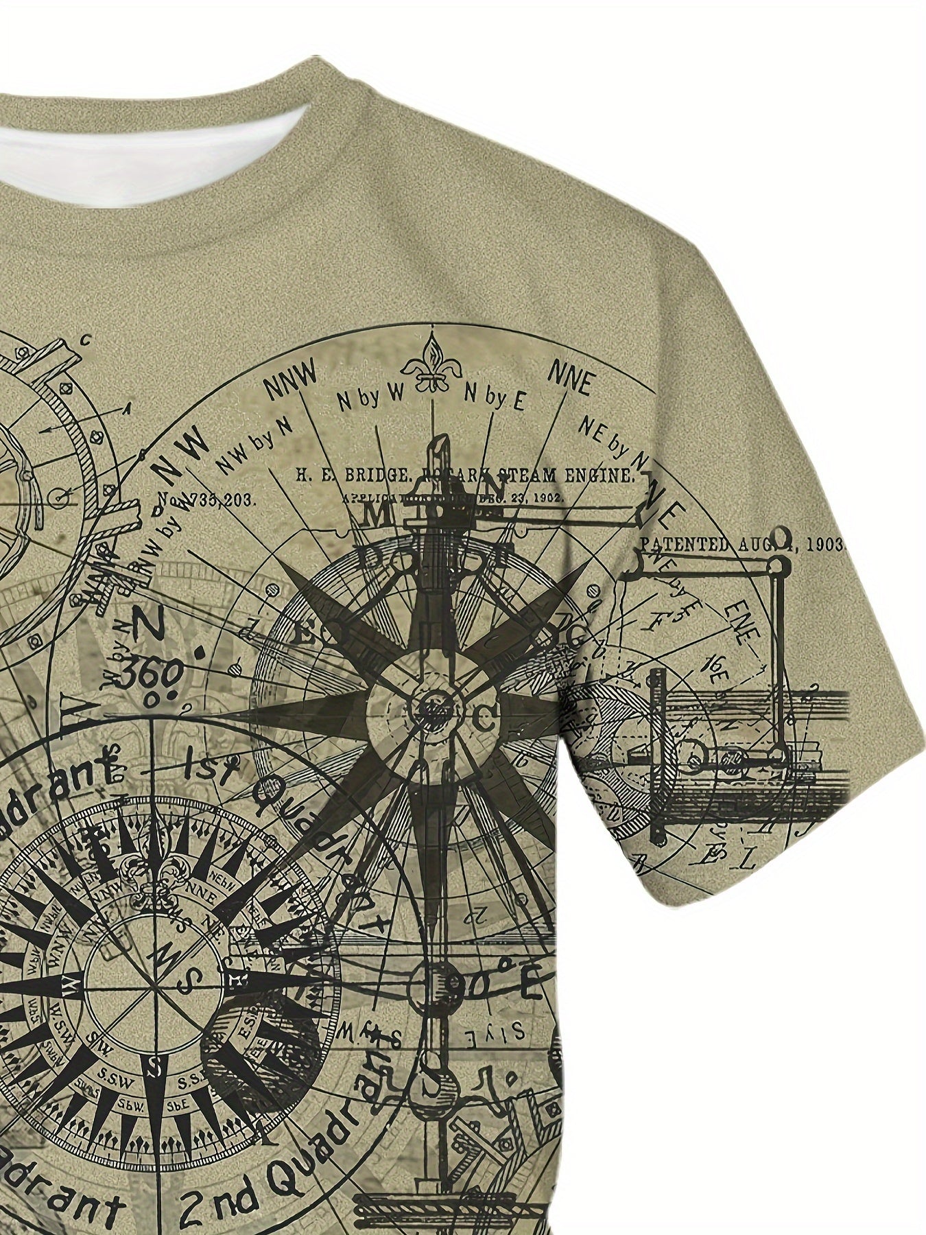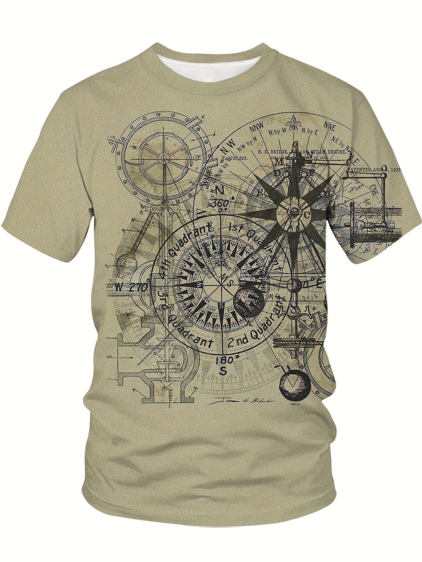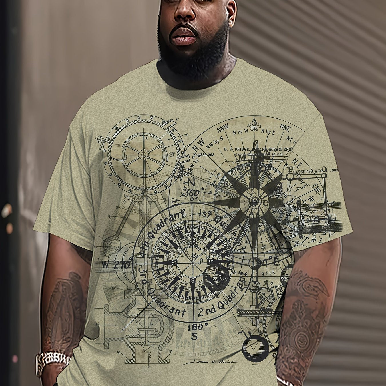Мужская футболка с увеличенным размером, принт компаса, 3D-графика, короткий рукав, полиэстер спандекс, повседневная