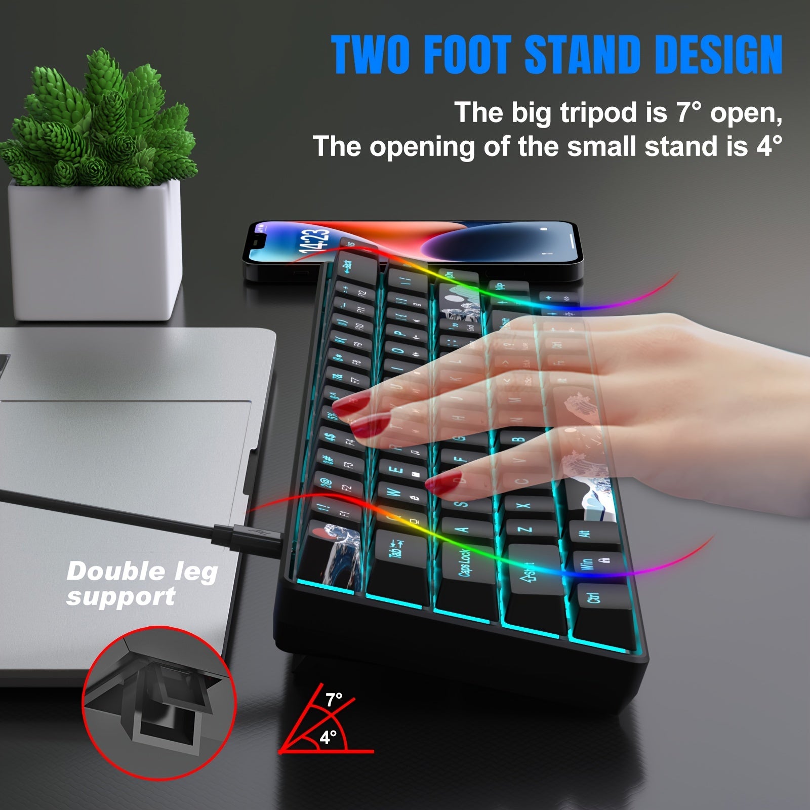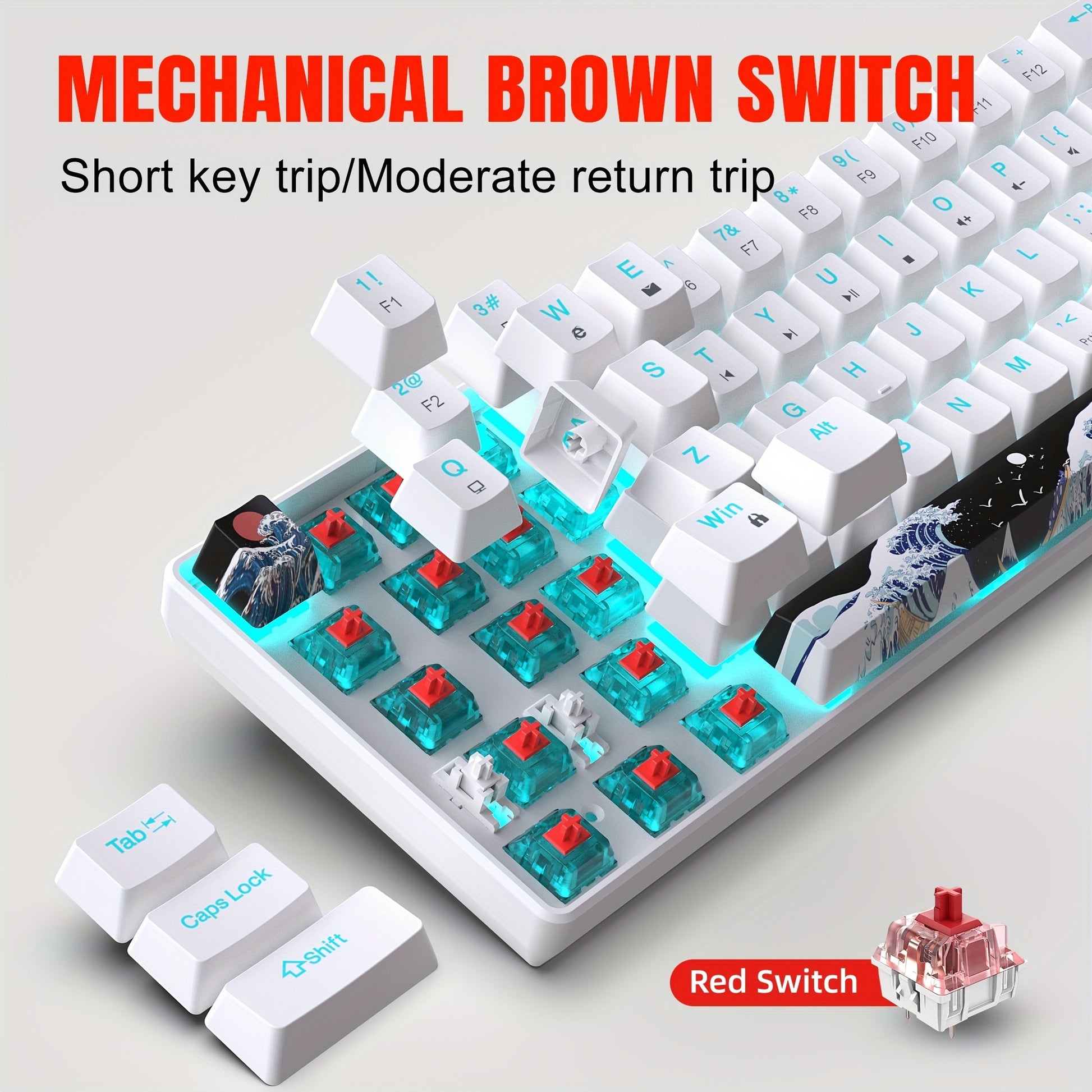 HXSJ эргономичная проводная механическая игровая клавиатура с 68 клавишами, PBT кастомные клавиши с сублимацией красителя, подсветка, USB питание, включает USB-кабель и съемник клавиш, для компьютеров/ноутбуков.