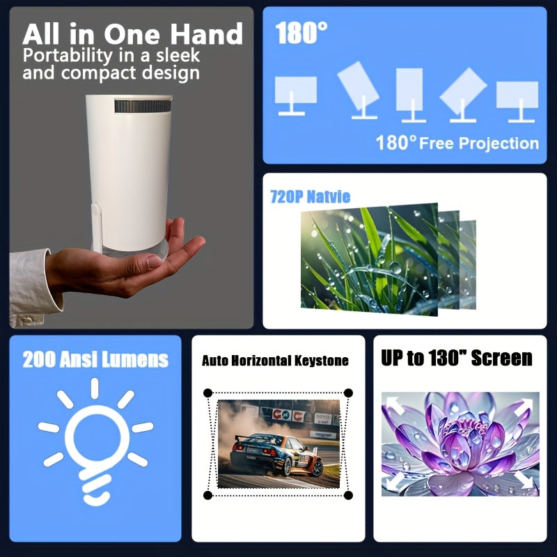 HY300 Pro Портативный проектор с Android 11, 200 ANSI, Беспроводной 5.0, Нативное разрешение 720P.