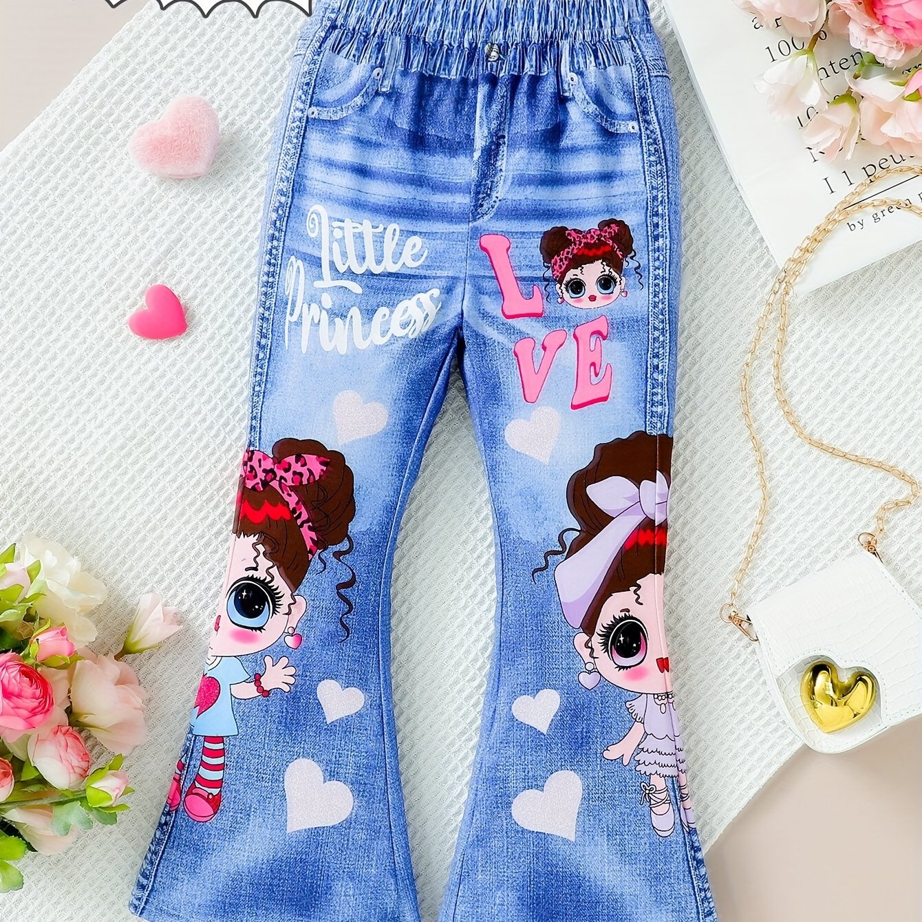 Девочки-капри с графикой мультяшной девочки, имитация джинсовой ткани, принт для вечеринки, подарок