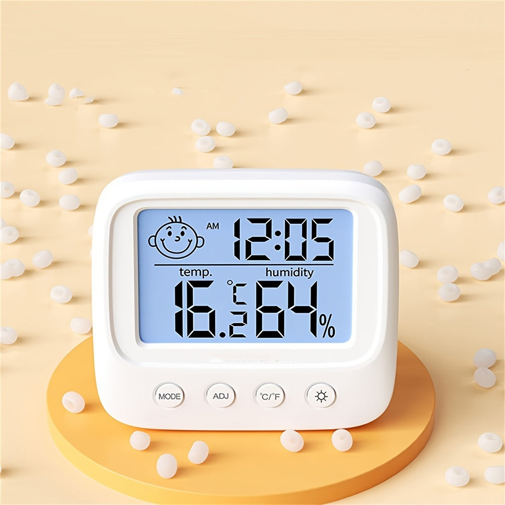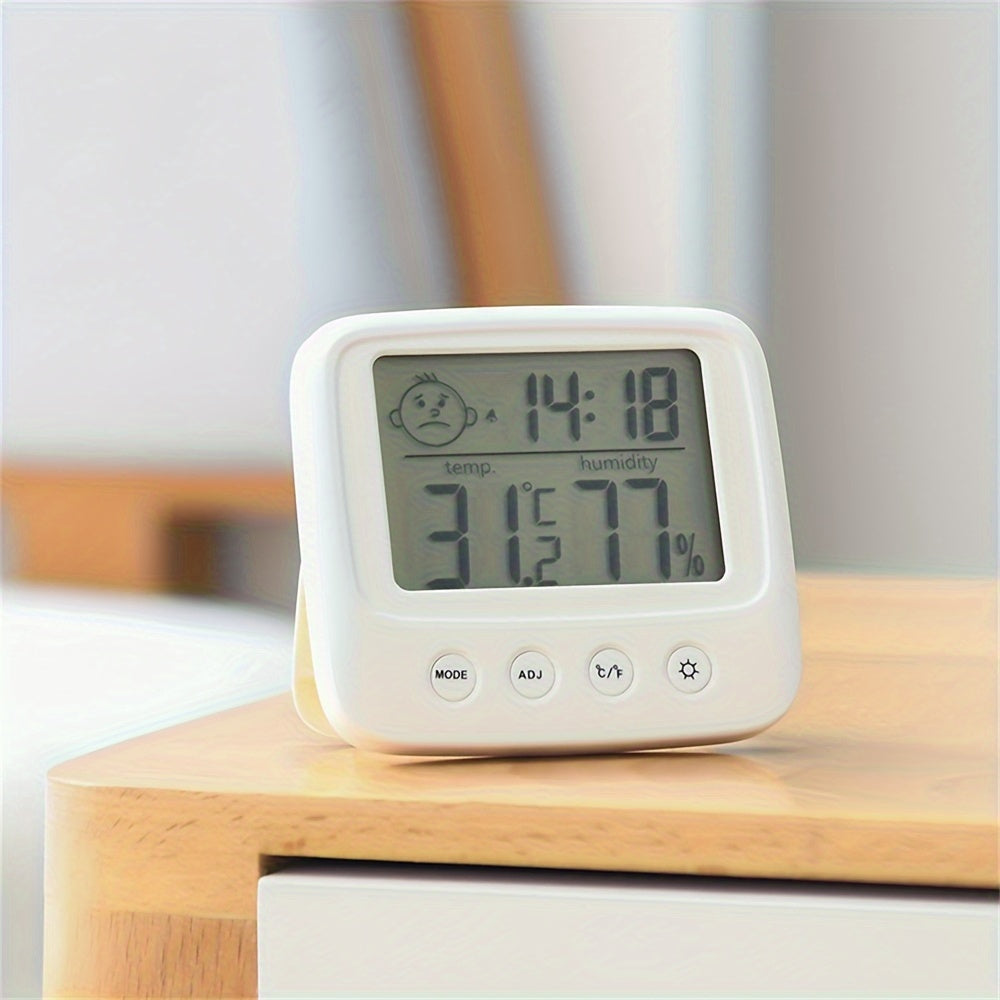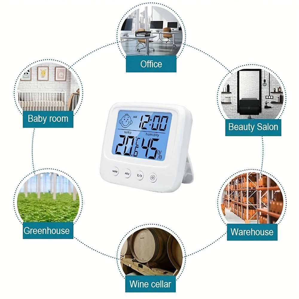Внутренние температура, часы, влажность с подсветкой и функцией часов, вы получите четкое отображение ночью или в темноте, а также удобно установить будильник для работы или учебы.
