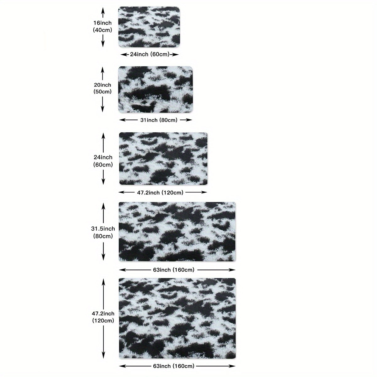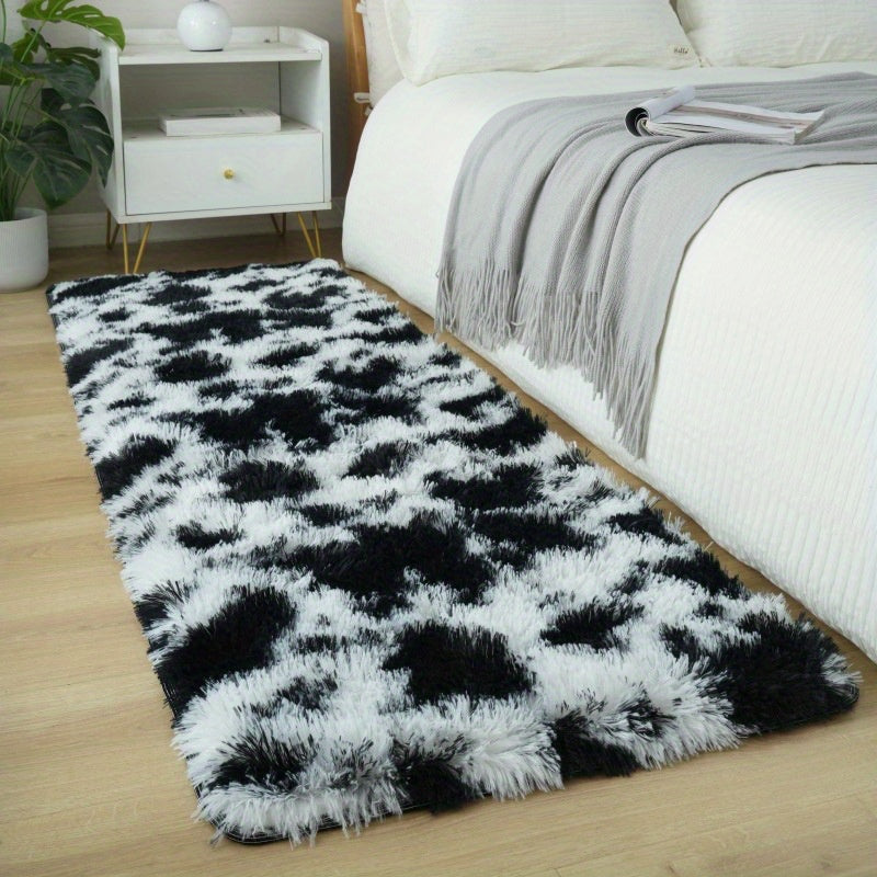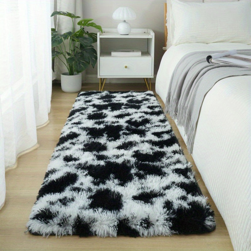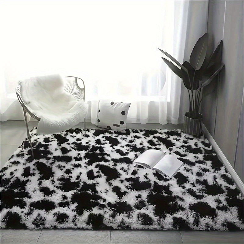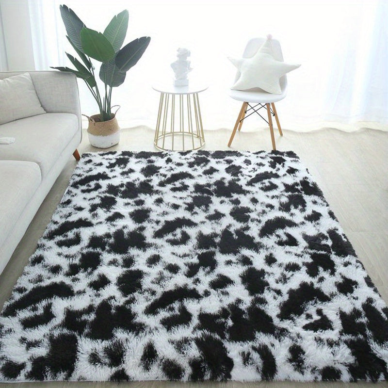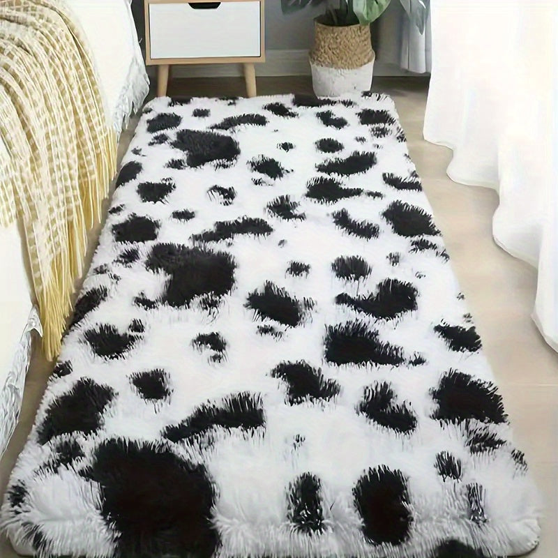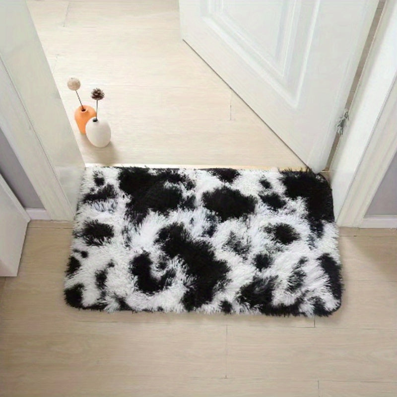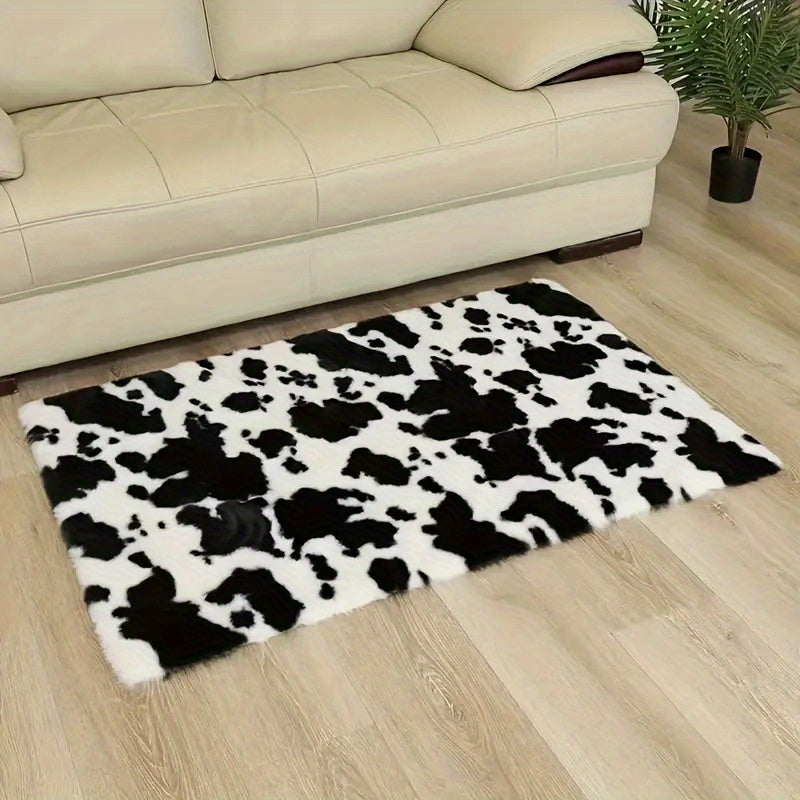 Коврик для помещения из плюша, черно-белая коровья геометрическая нескользящая большая для гостиной, спальни, прихожей, коридора