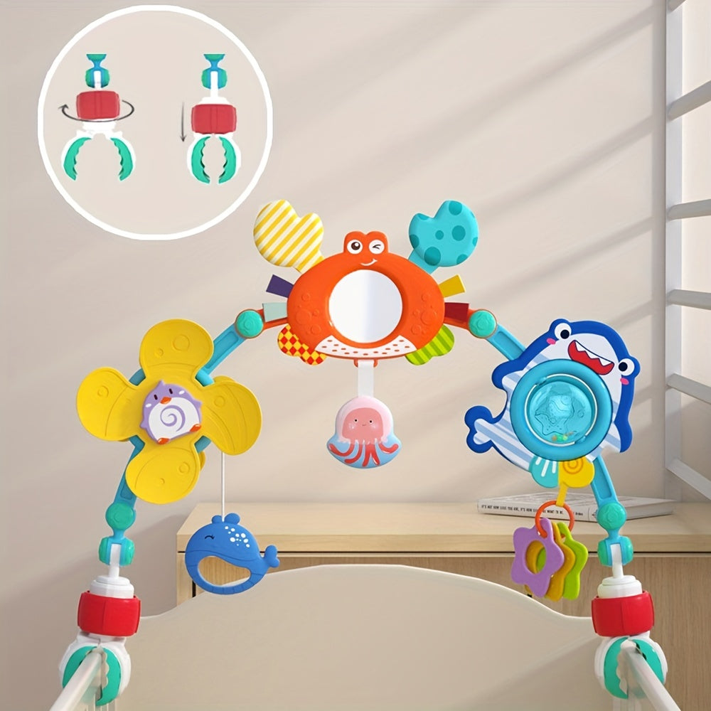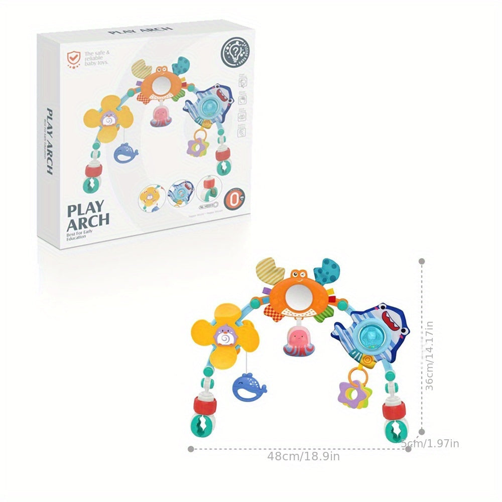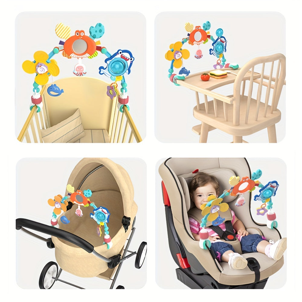 Игрушечная кроватка с колокольчиком для новорожденных, подходит для детей от 0 до 1 года, может быть подвешена на автомобильные кресла безопасности или детские коляски для комфорта и обучения.