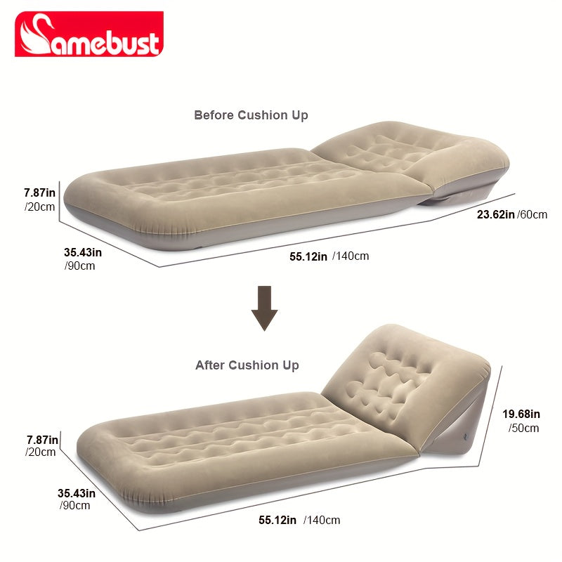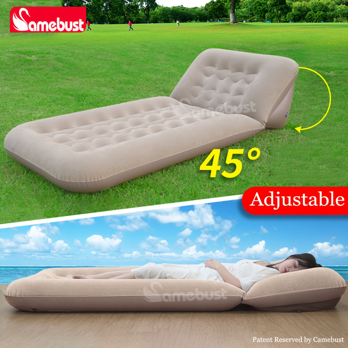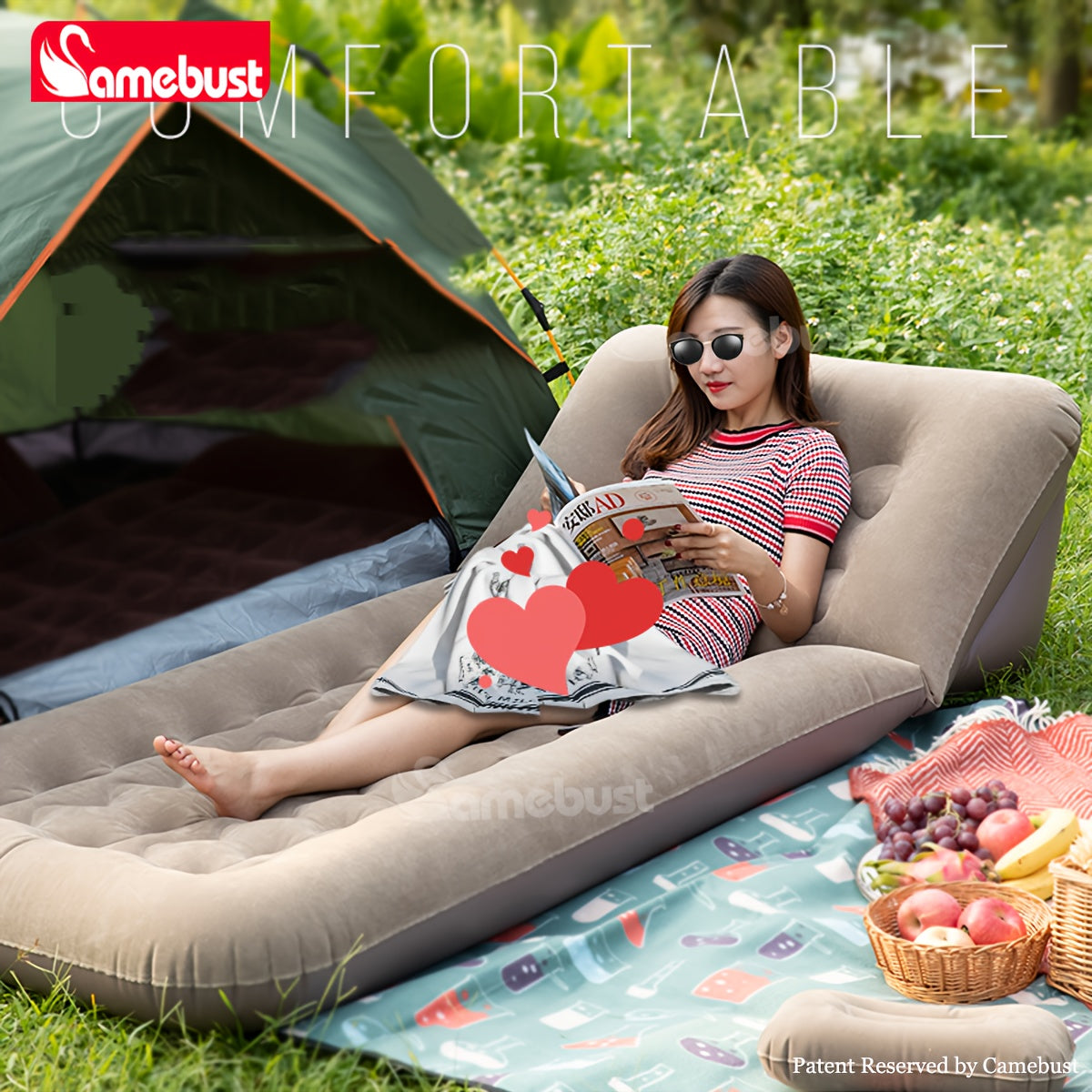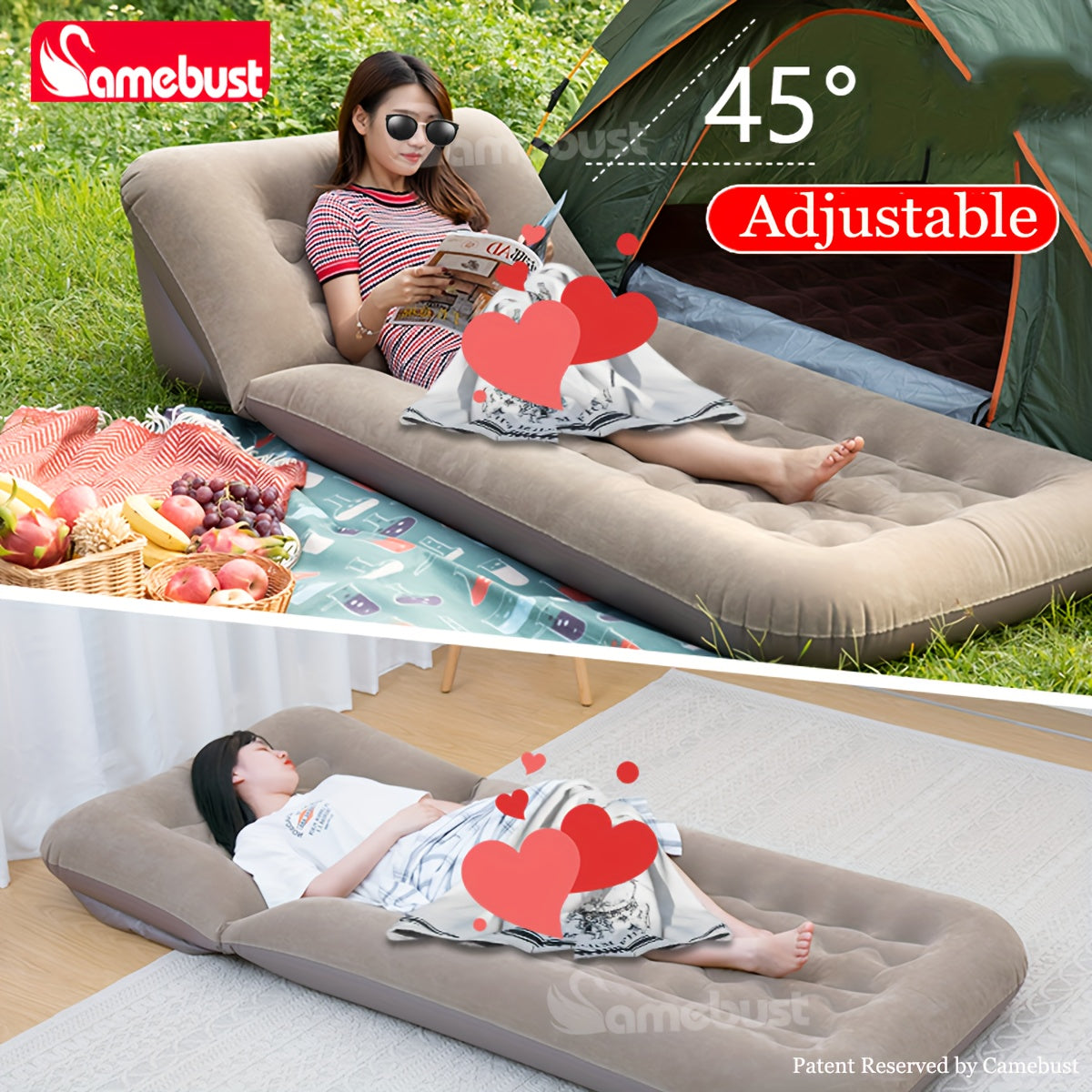 Надувной диван-кровать с флокированием, регулируемый надувной матрас, складной и портативный, легко чистится, не требует электричества, идеально подходит для отдыха дома и на открытом воздухе - 1 шт. CAMEBUST