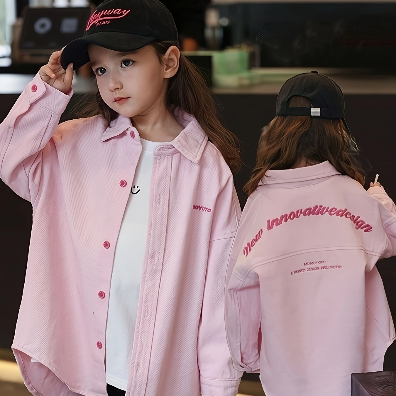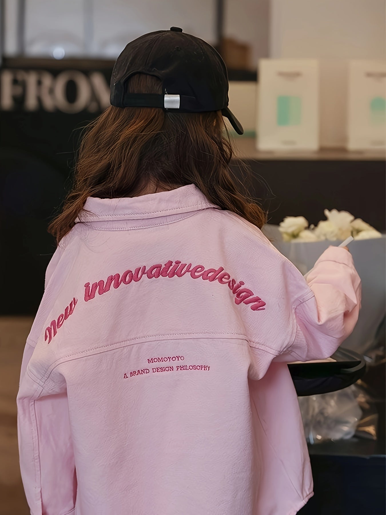 Девочки Розовая вышитая джинсовая рубашка с длинным рукавом, весна-осень, повседневная
