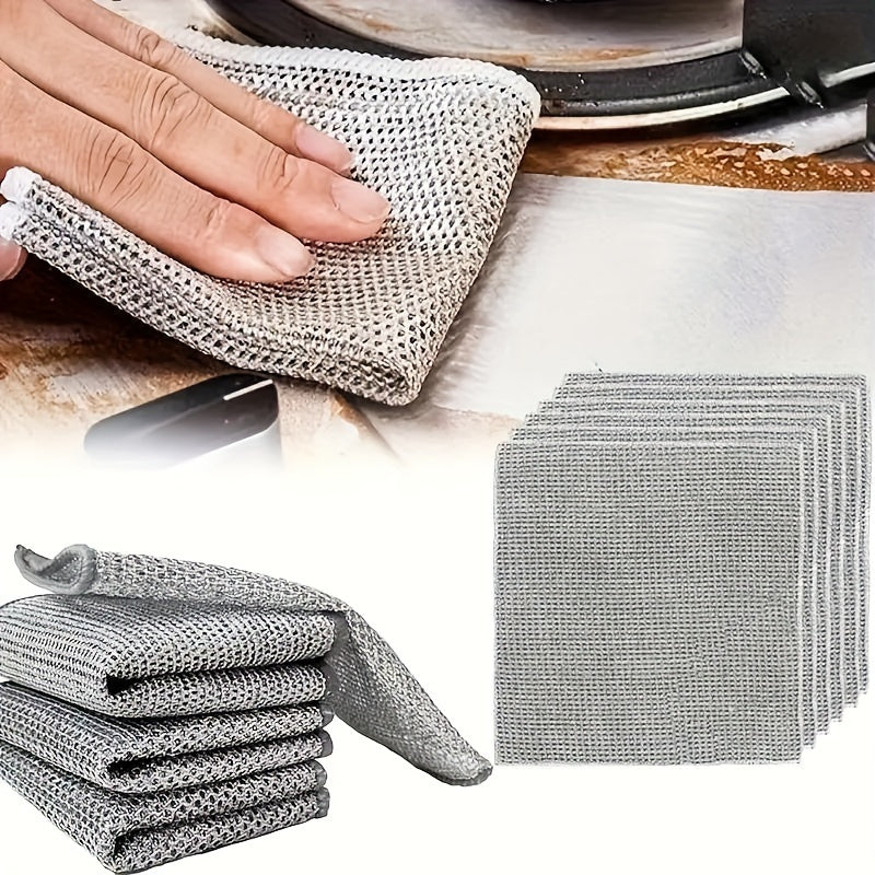 Комплект из 6/10/12 чистящих тряпок из стальной проволоки, без царапин, 20 см, безопасны для посудомоечной машины