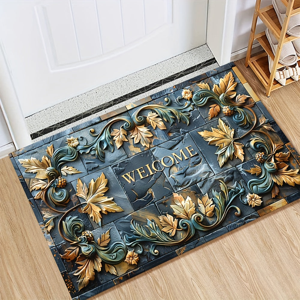 3D Реалистичный каменный узорный коврик с рельефом растений, нескользящий, полиэстер, 70x120 см