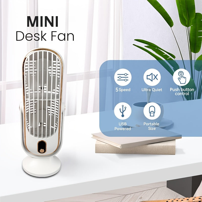 5-скоростной портативный настольный вентилятор USB-заряжаемый тихий мини-вентилятор для дома и офиса