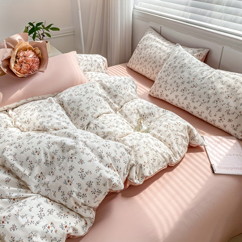 Комплект постельного белья с цветочным узором и дизайном незабудки, включает один односпальный и две наволочки