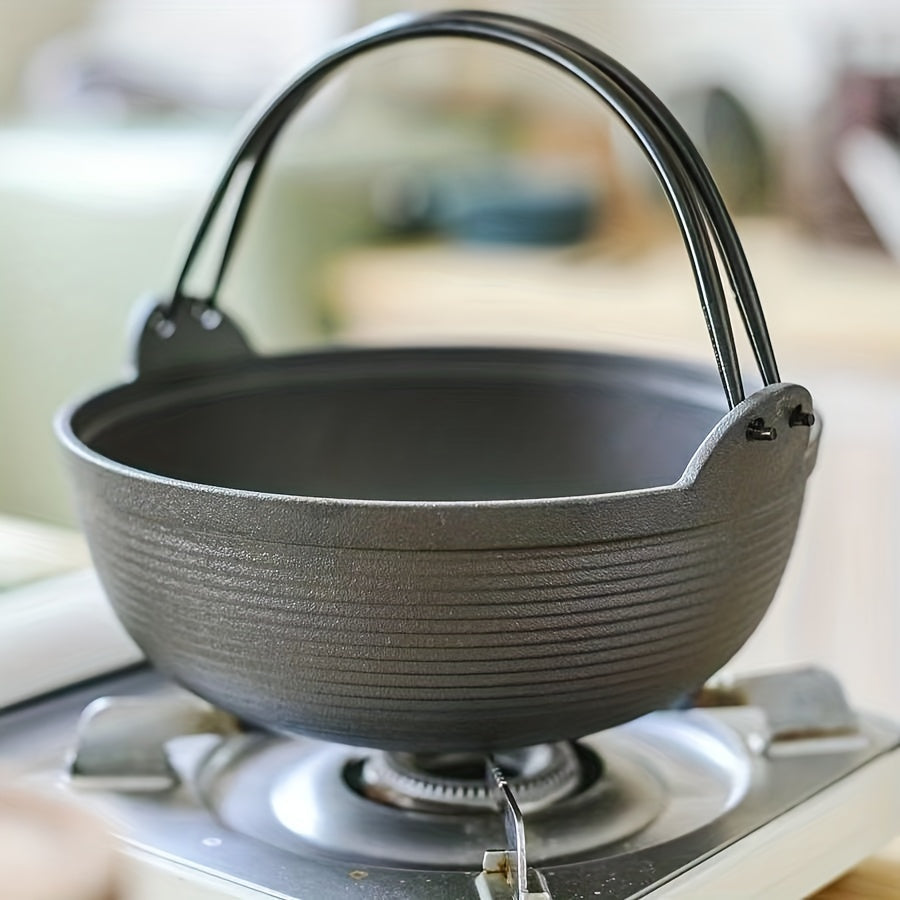 Японский горшок для тушения, выполненный из чугуна и сделанный вручную без покрытия. Этот горшок утолщён и устойчив к высоким температурам, что делает его идеальным для традиционных японских блюд, таких как сукияки и сытные супы. Наслаждайтесь старомодным